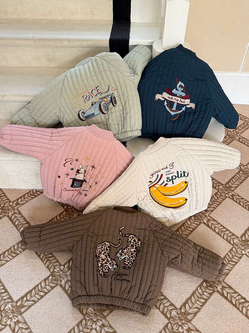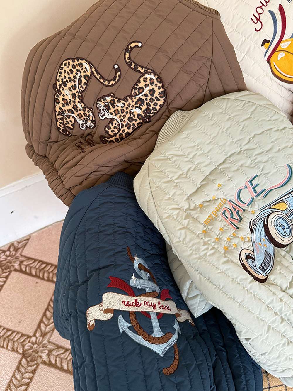Long-sleeved quilted jacket | Padded and fully embroidered | Character print outerwear [mh0011467]