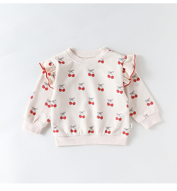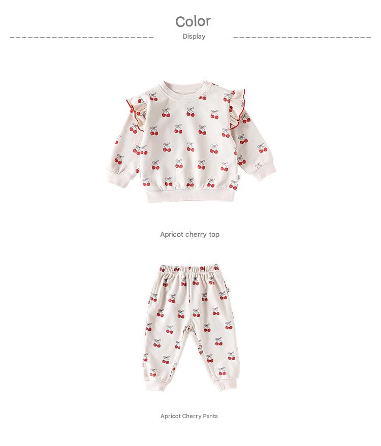 長袖セットアップ チェリープリントフリルスウェットシャツ/スウェットパンツ【mh0011723】