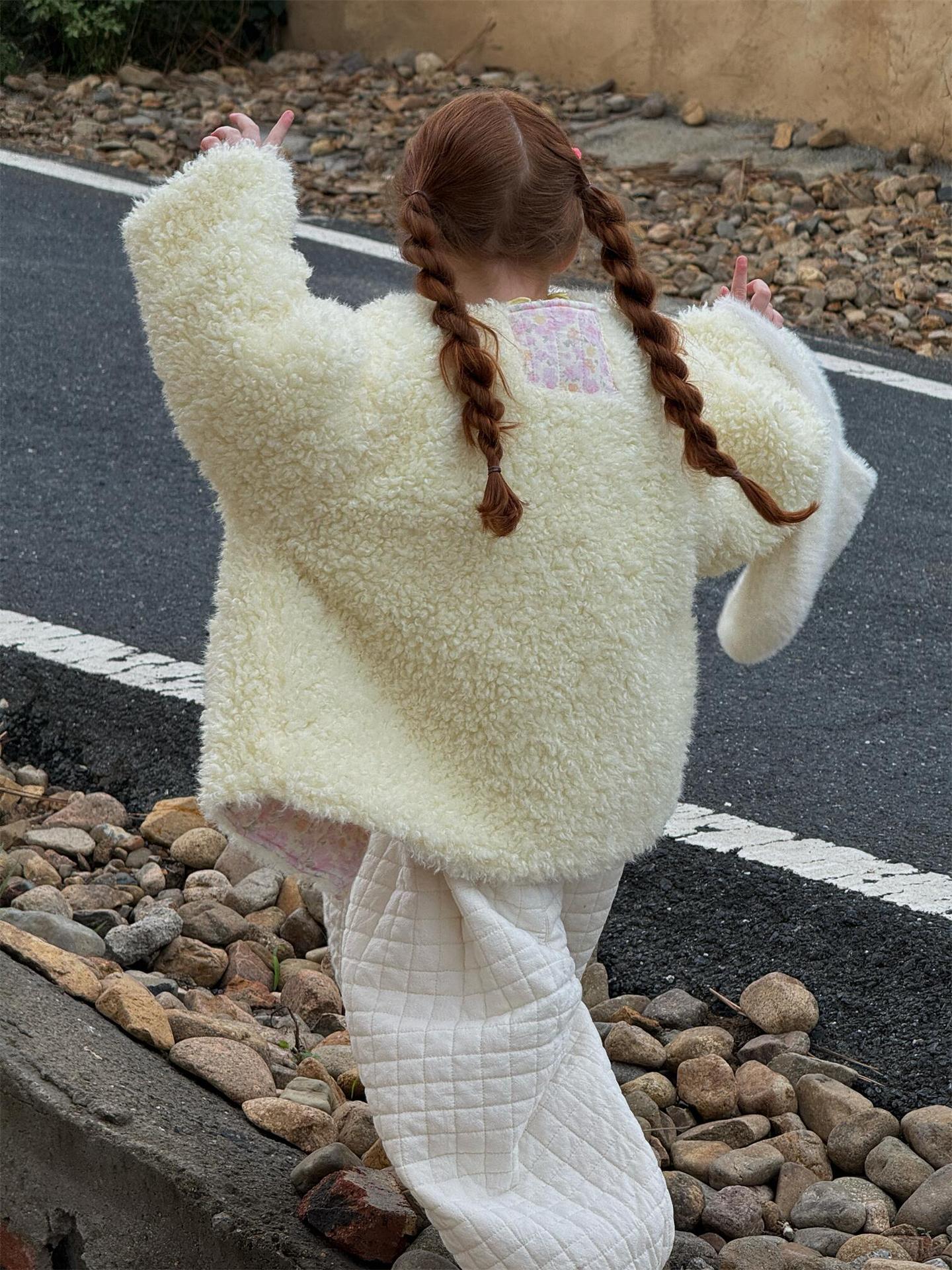 This warm and comfortable outerwear combines fluffy boa and fluffy padding. It's reversible, with one side serving as a simple blouson and the other featuring an adorable, delicate floral pattern, allowing you to enjoy two different looks with just one jacket. This versatile children's clothing is versatile enough to be worn with anything from casual to more sophisticated styles, expanding the range of stylish outfits you can create during the cold season.