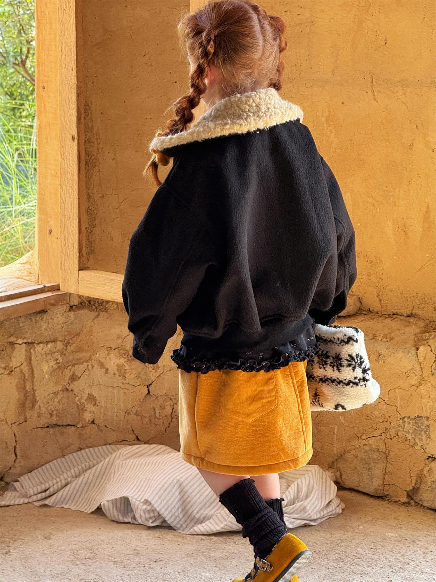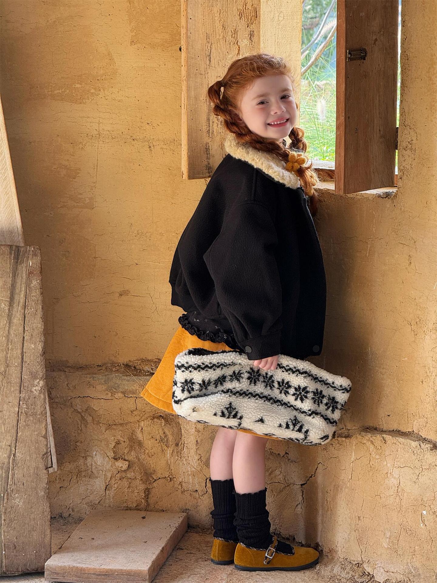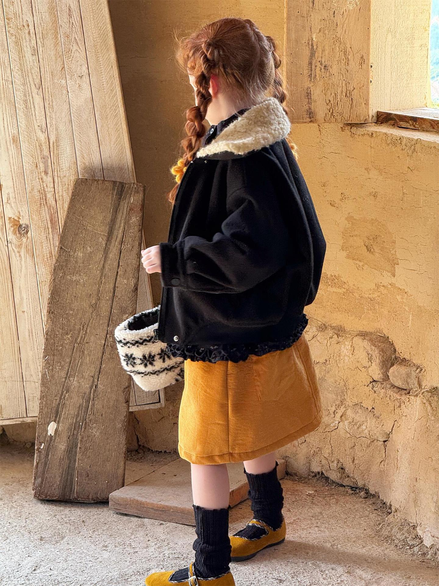 This short-length blouson jacket is made from warm tweed material. The collar is decorated with soft fur, keeping your neck warm. The inside is lined with fleece, making it a thick outer coat that boasts excellent heat retention. The black color gives it a chic and sophisticated look, making it suitable for both casual and dressy looks.