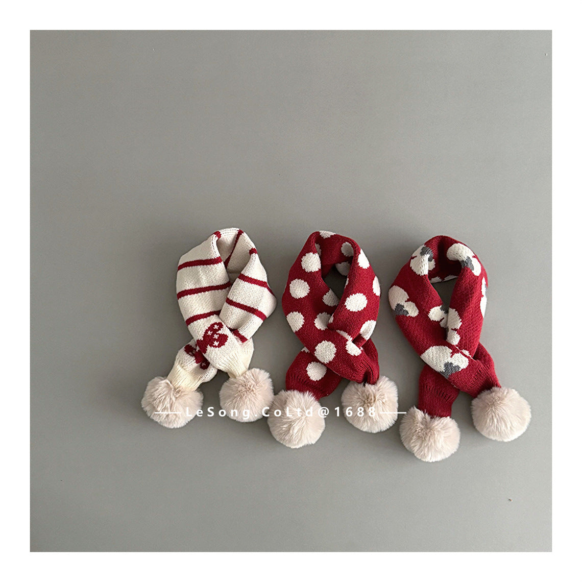 キッズマフラー ニット リボン/いちご ぽんぽん ネックウォーマー【mh0011808】
