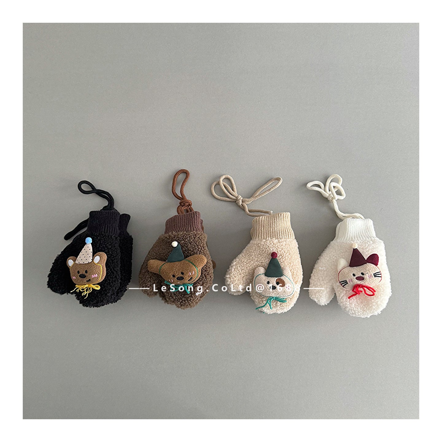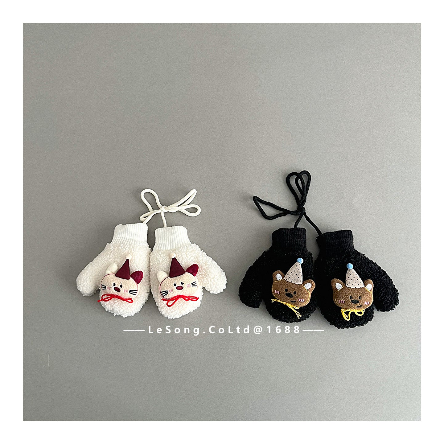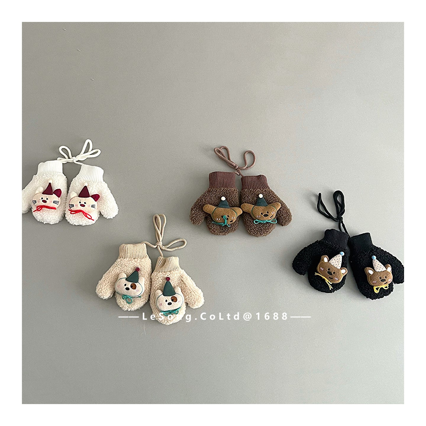 ベビーキッズ手袋 ミトン 指なし フリース アニマルアップリケ【mh0011827】
