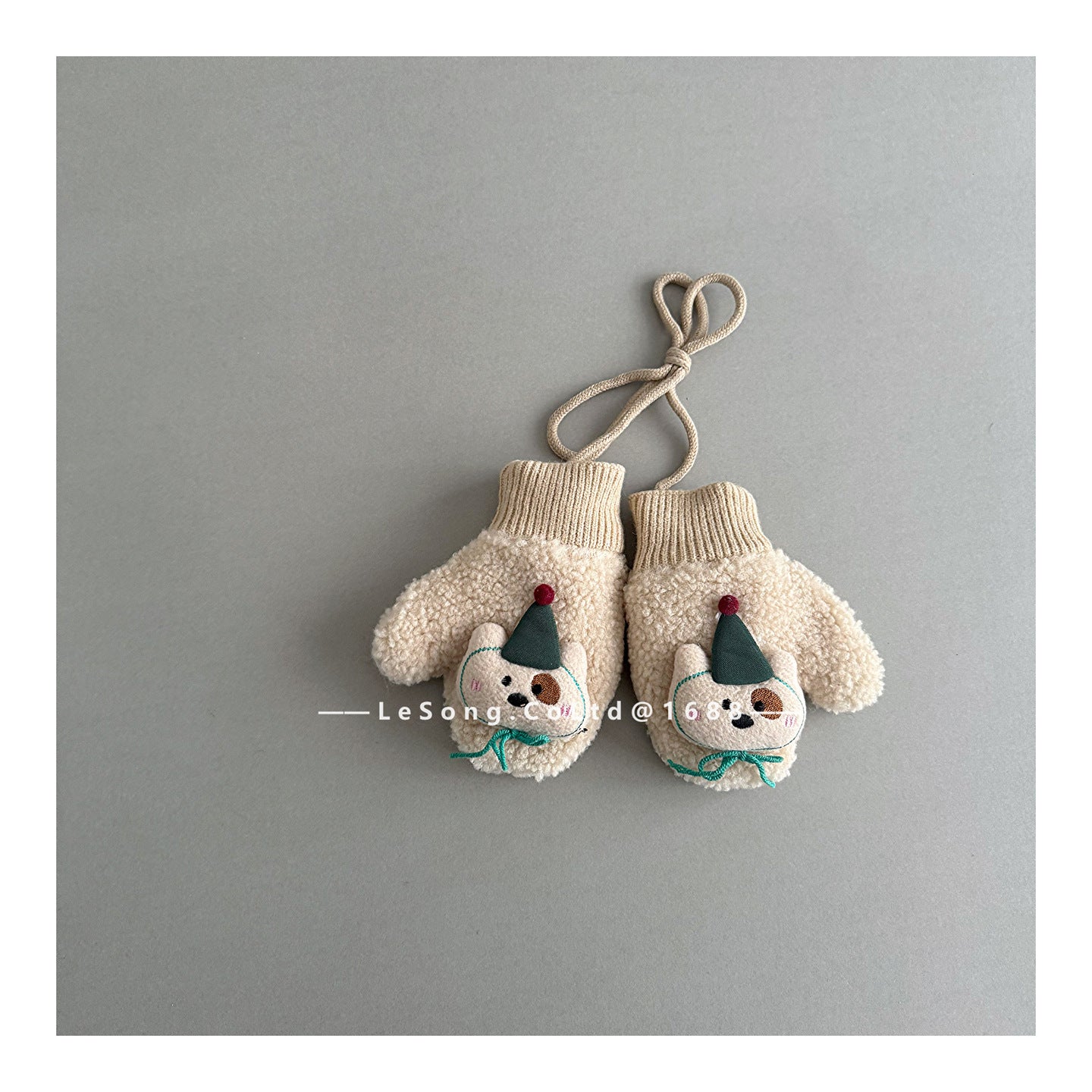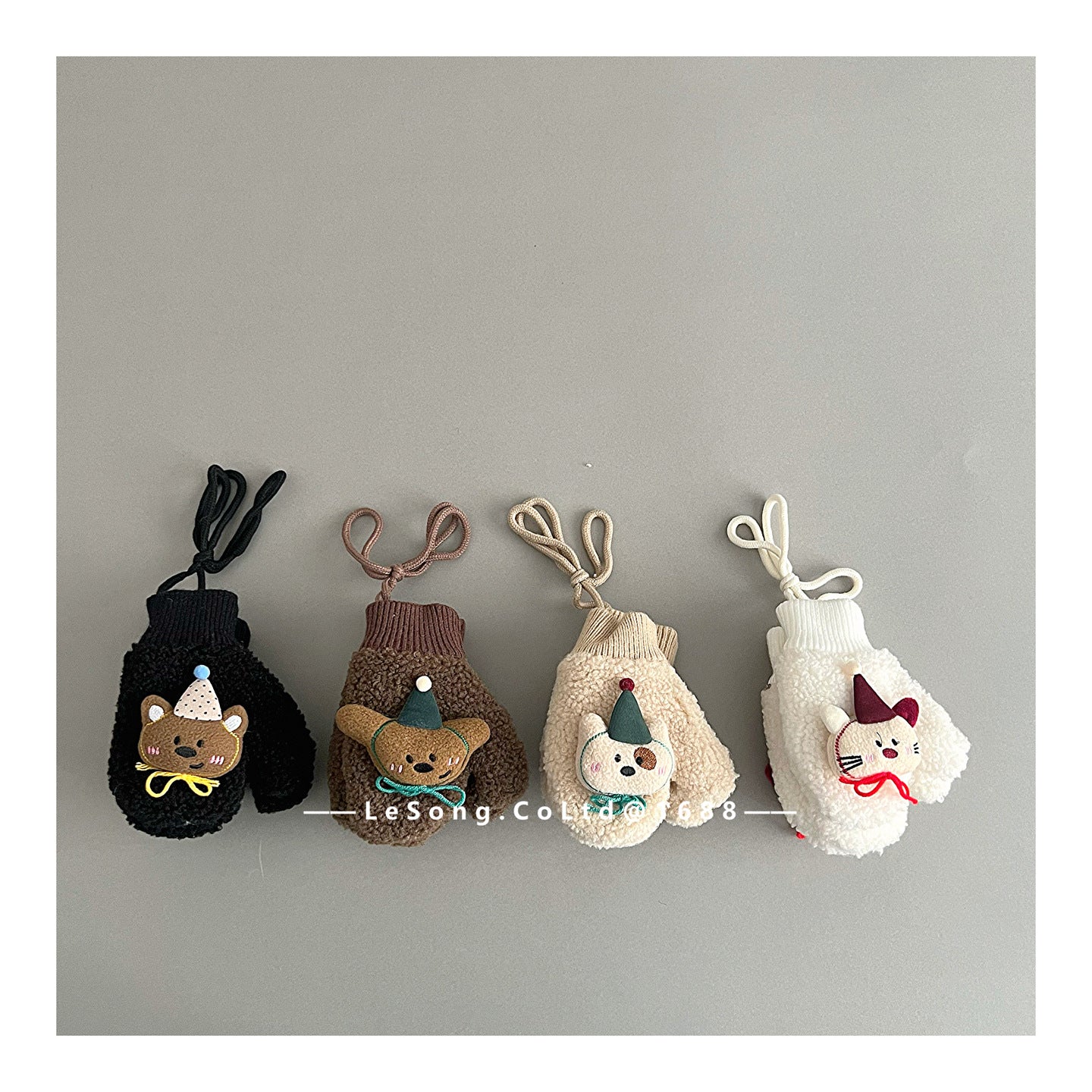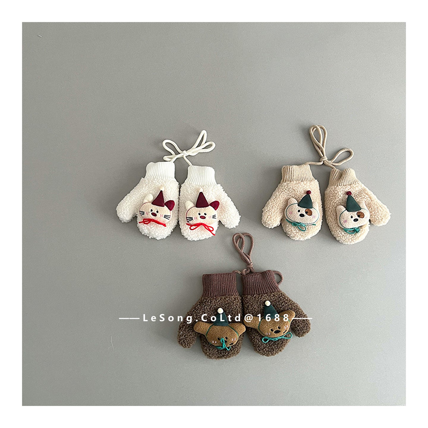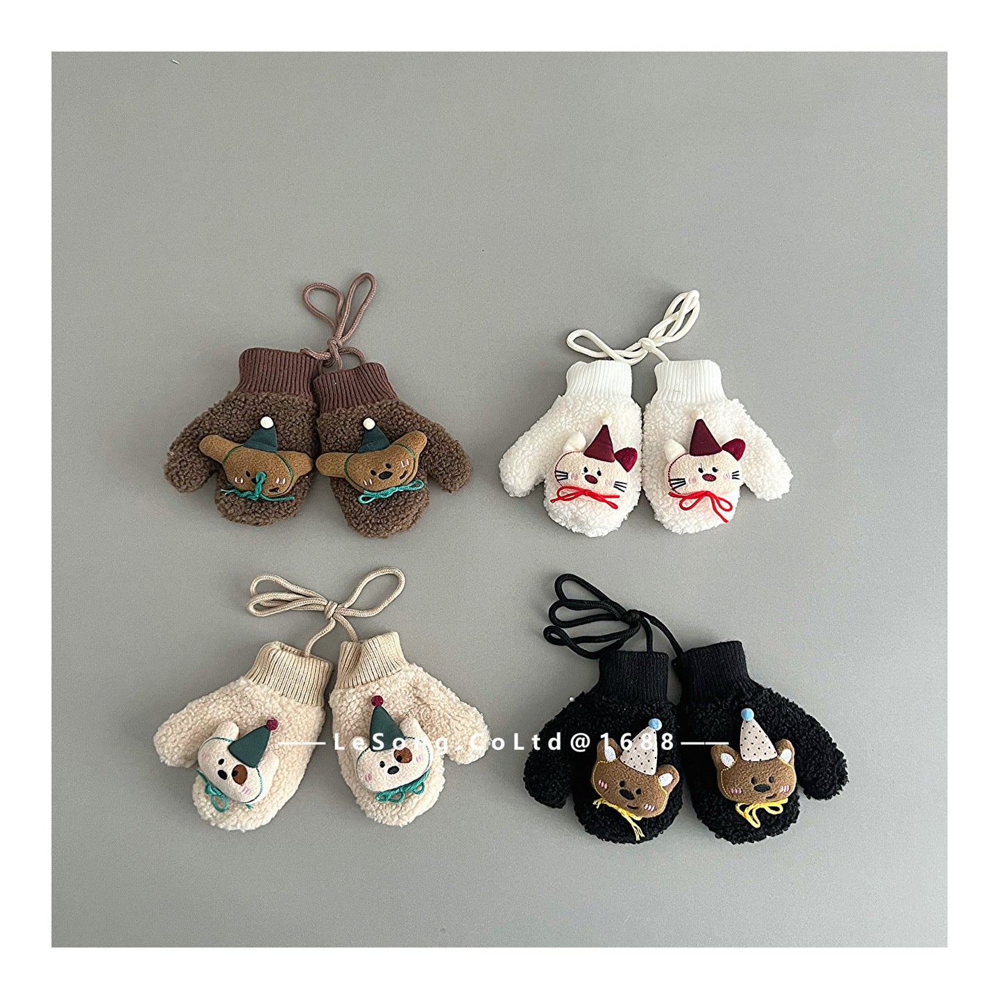 ベビーキッズ手袋 ミトン 指なし フリース アニマルアップリケ【mh0011827】