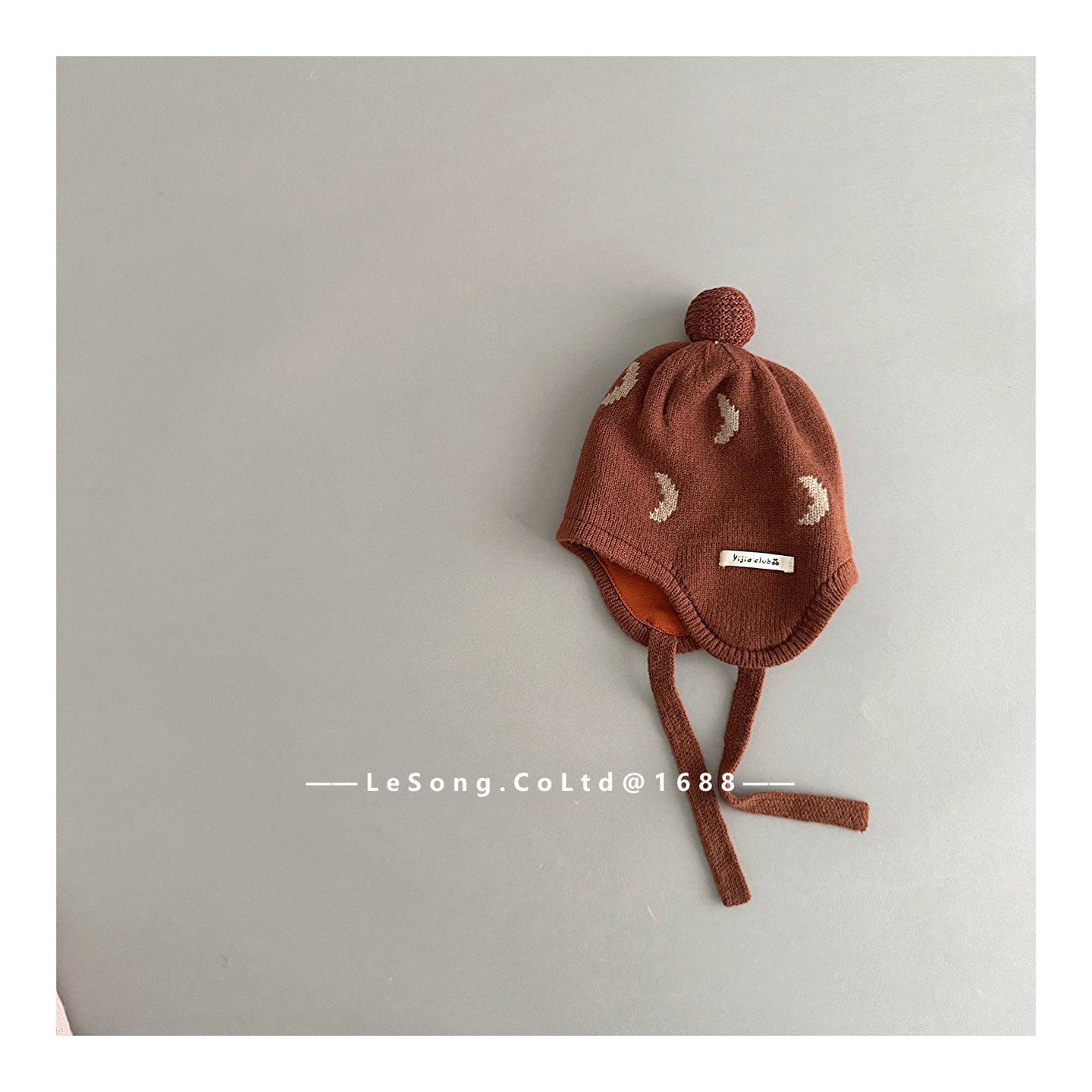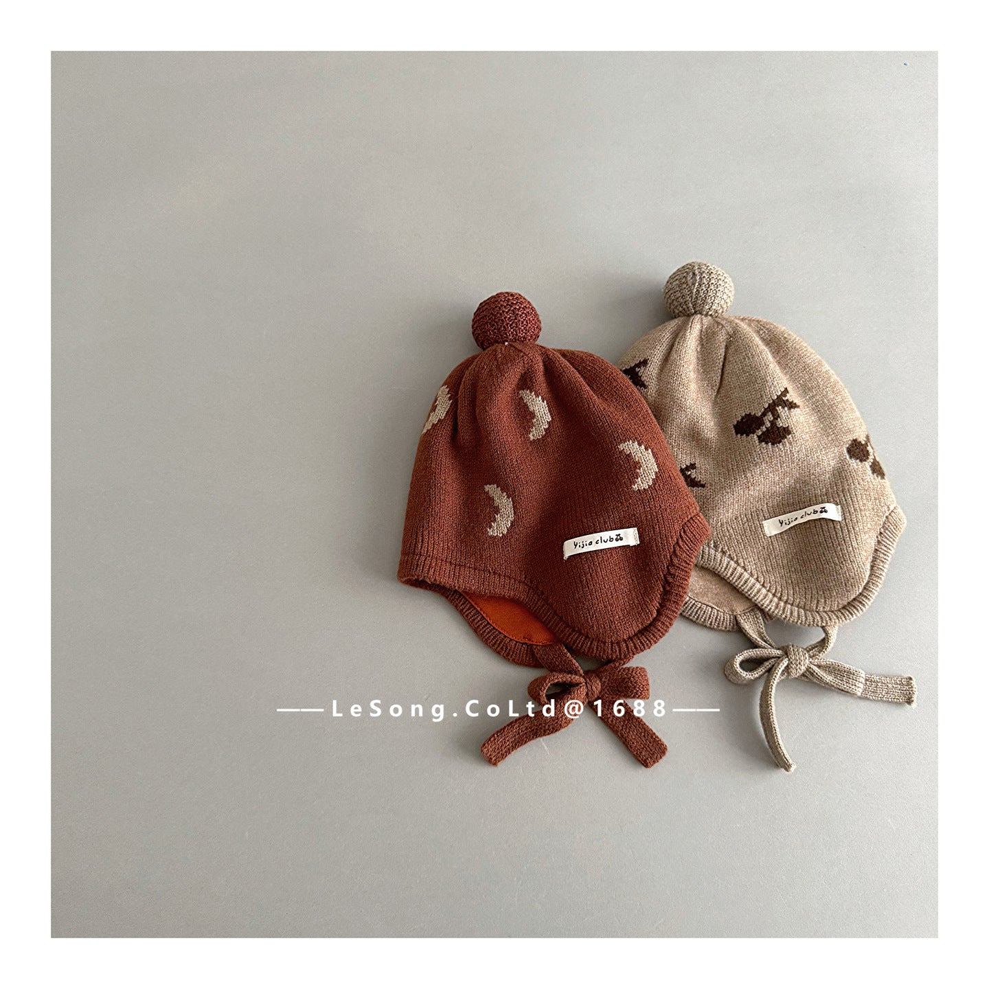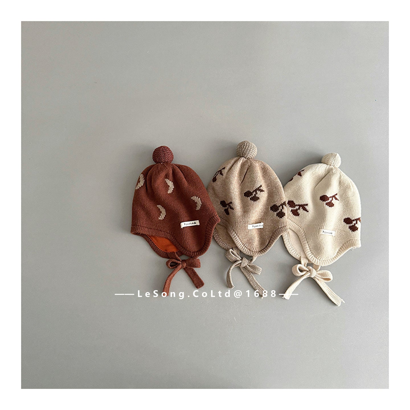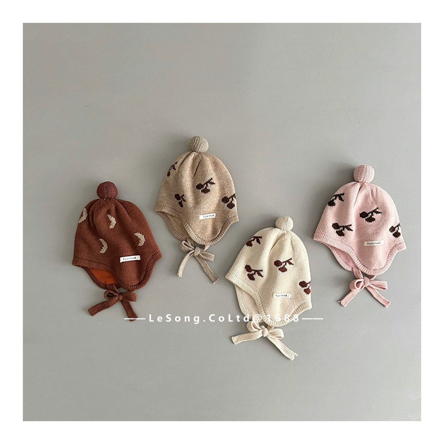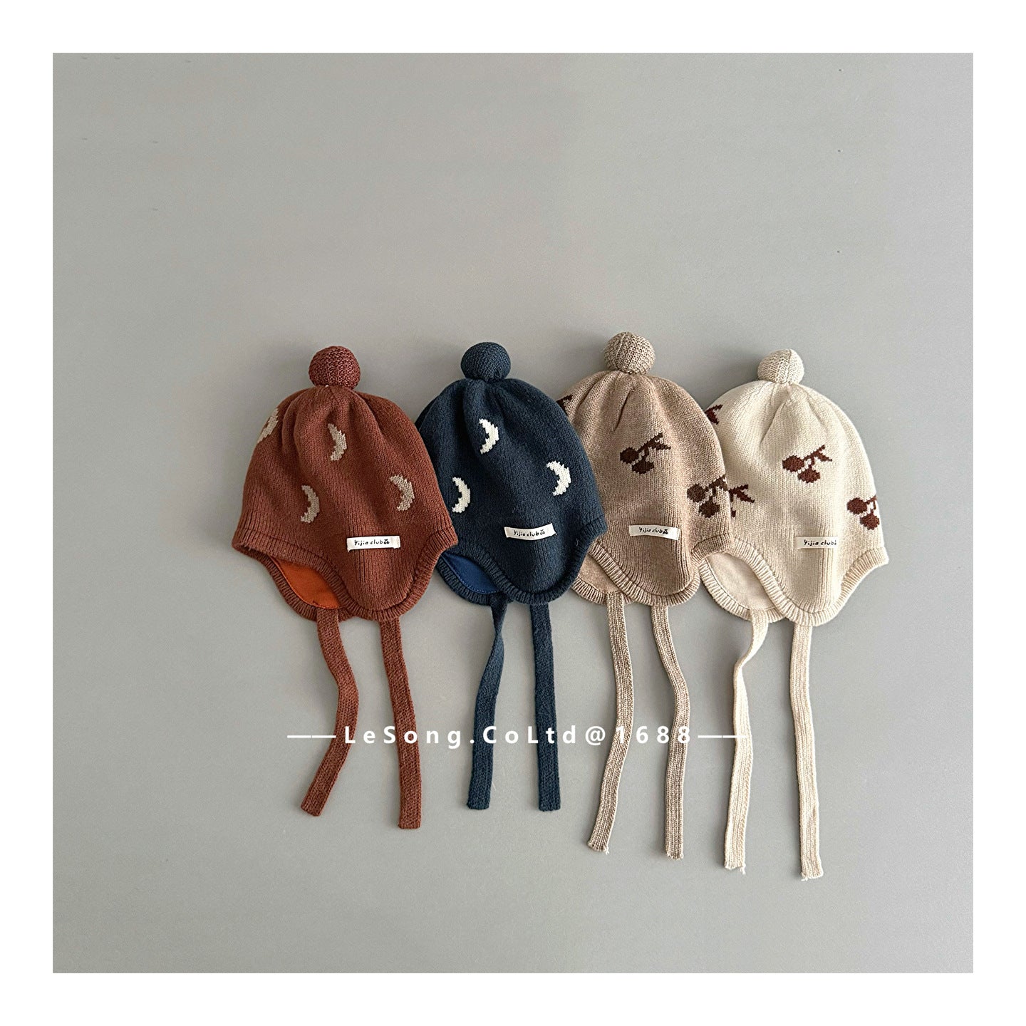 ベビー帽子 チェリー/ムーン月 ニット 耳当て付き ニットキャップ【mh0011829】