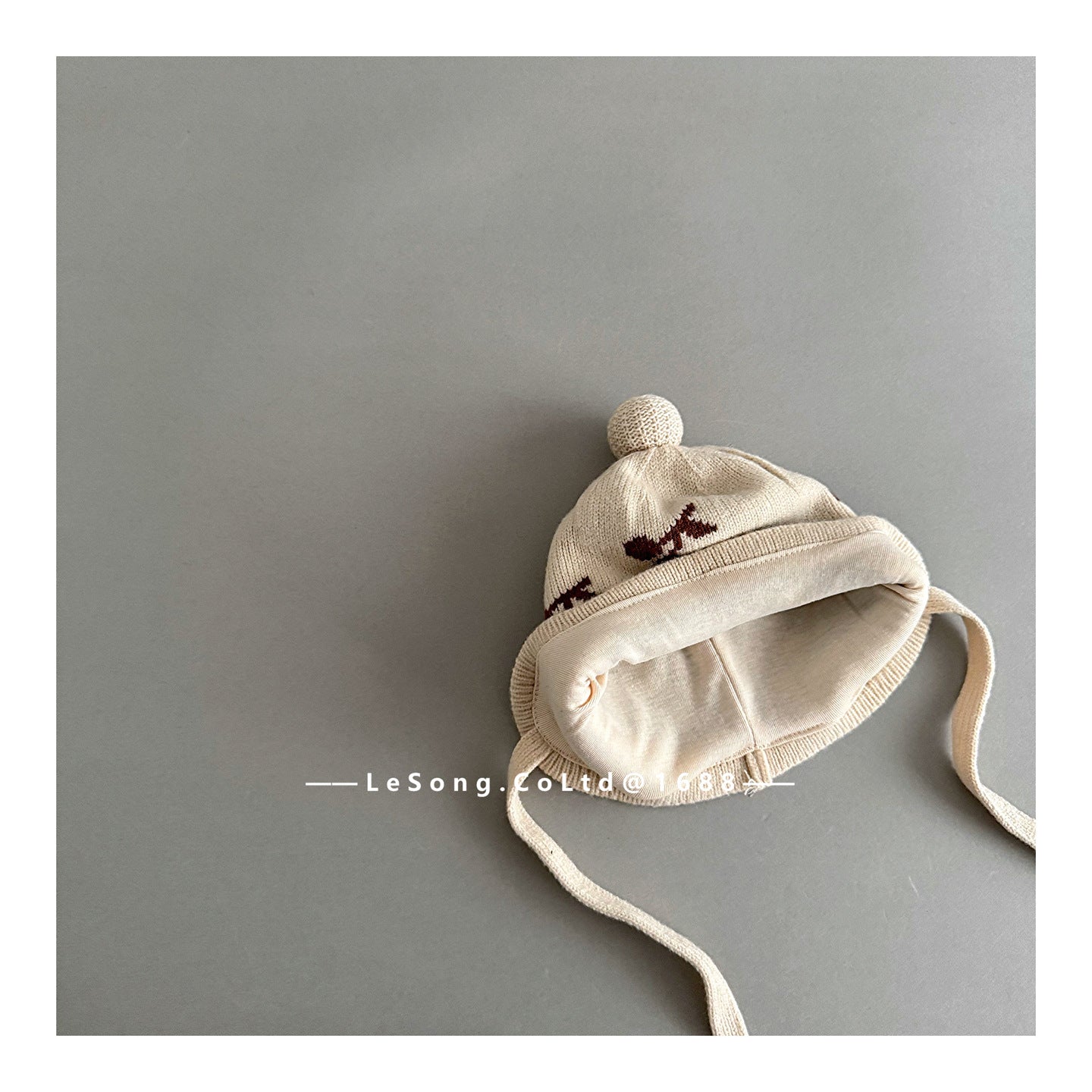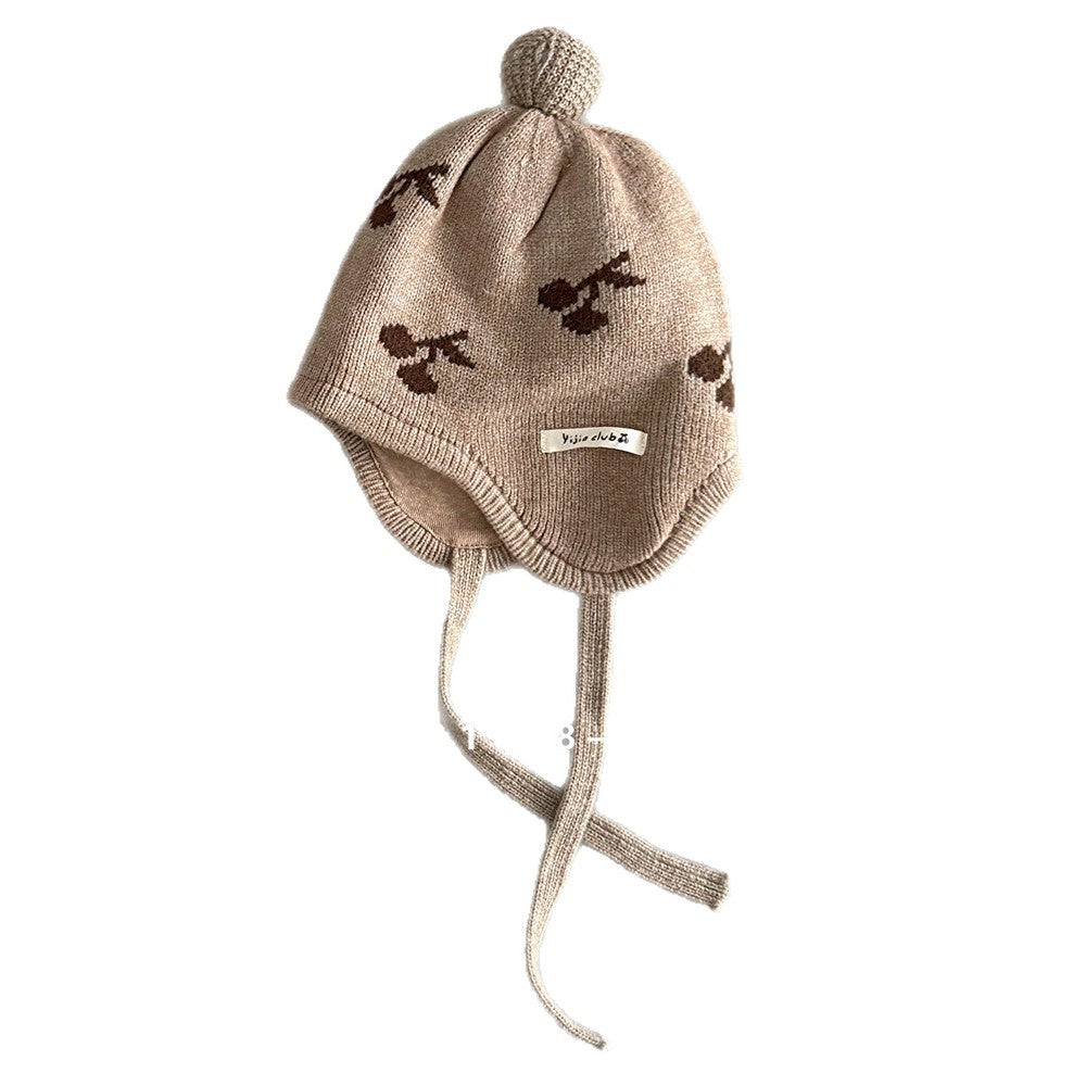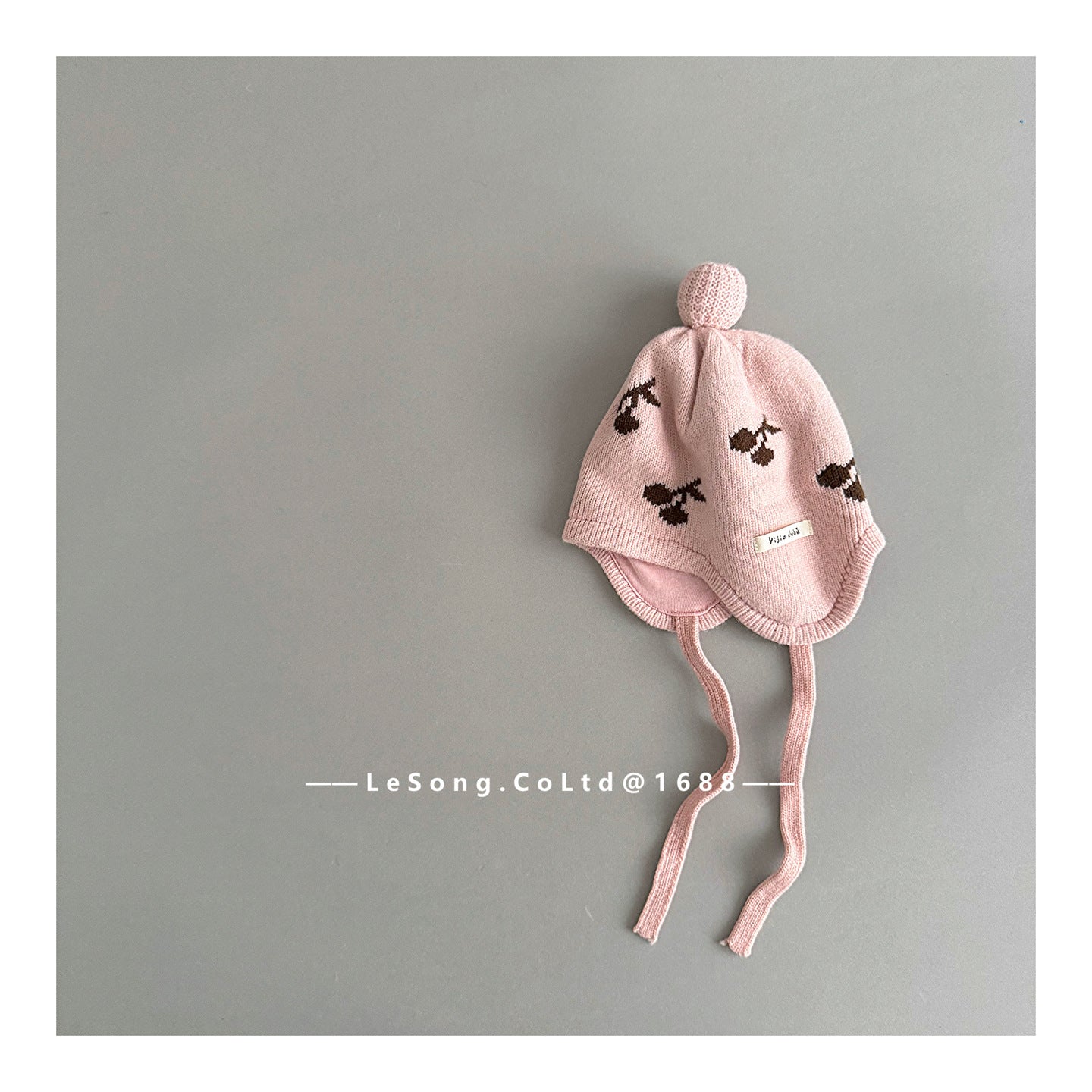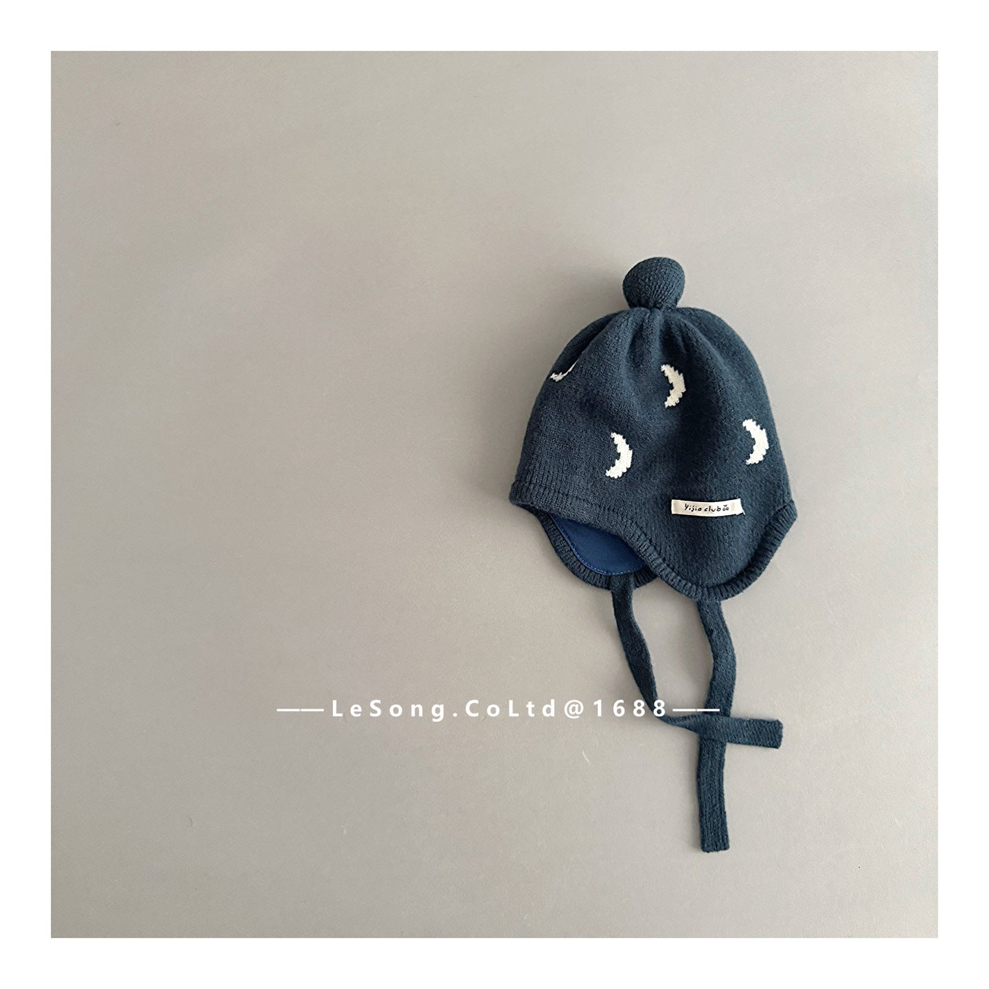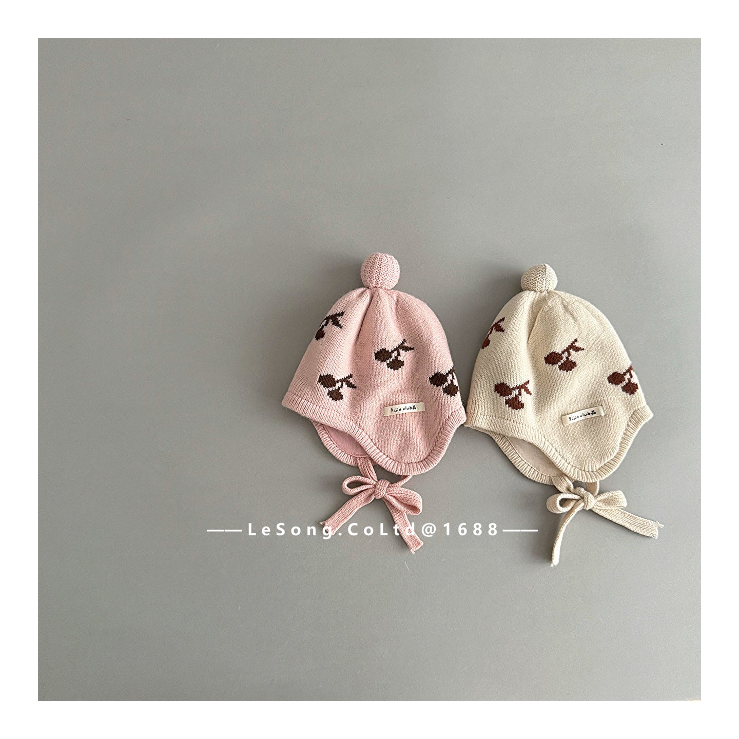 ベビー帽子 チェリー/ムーン月 ニット 耳当て付き ニットキャップ【mh0011829】