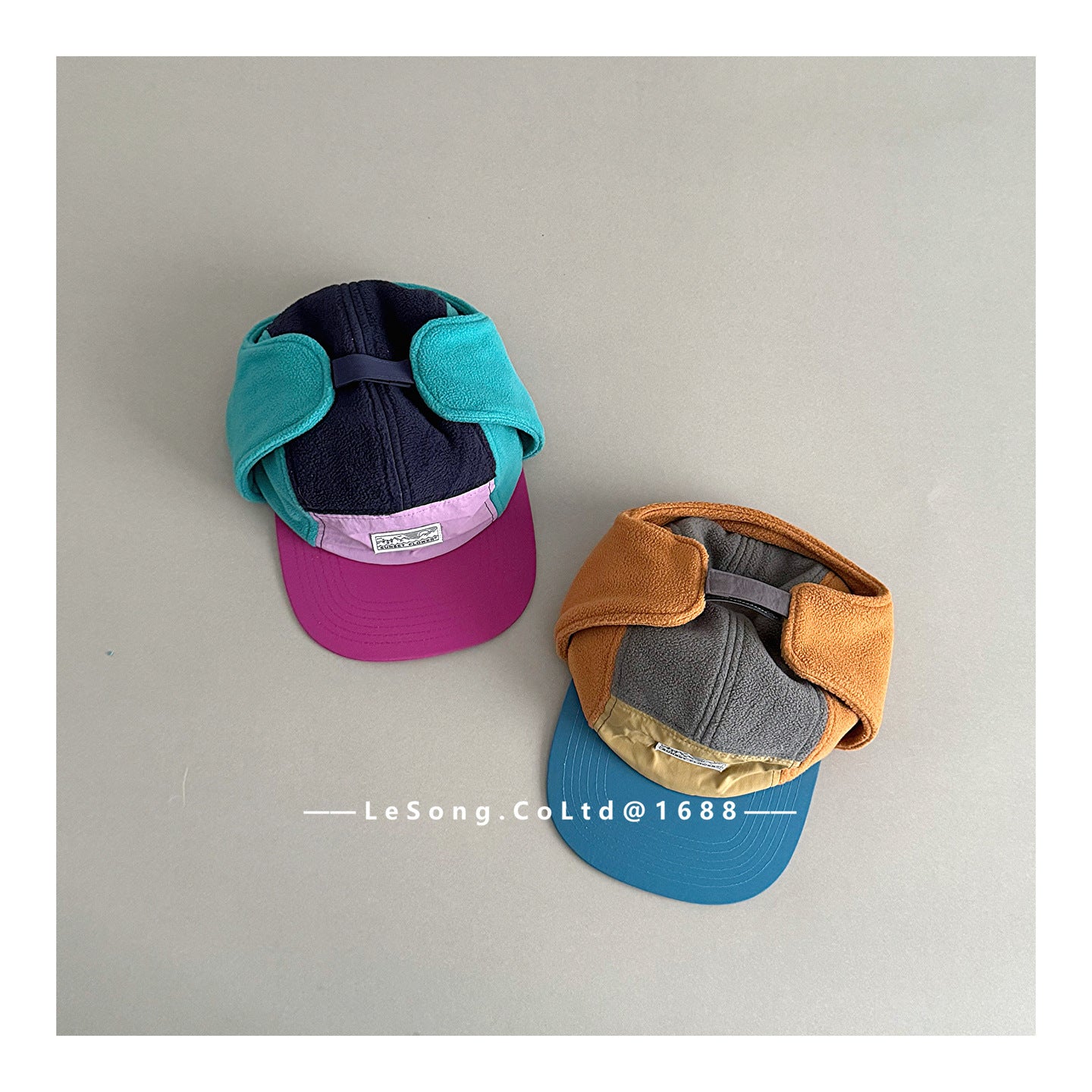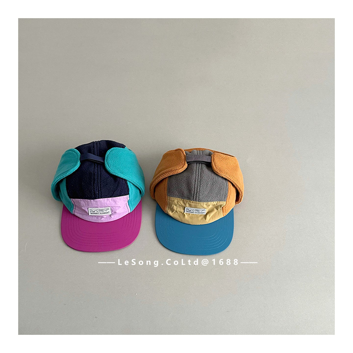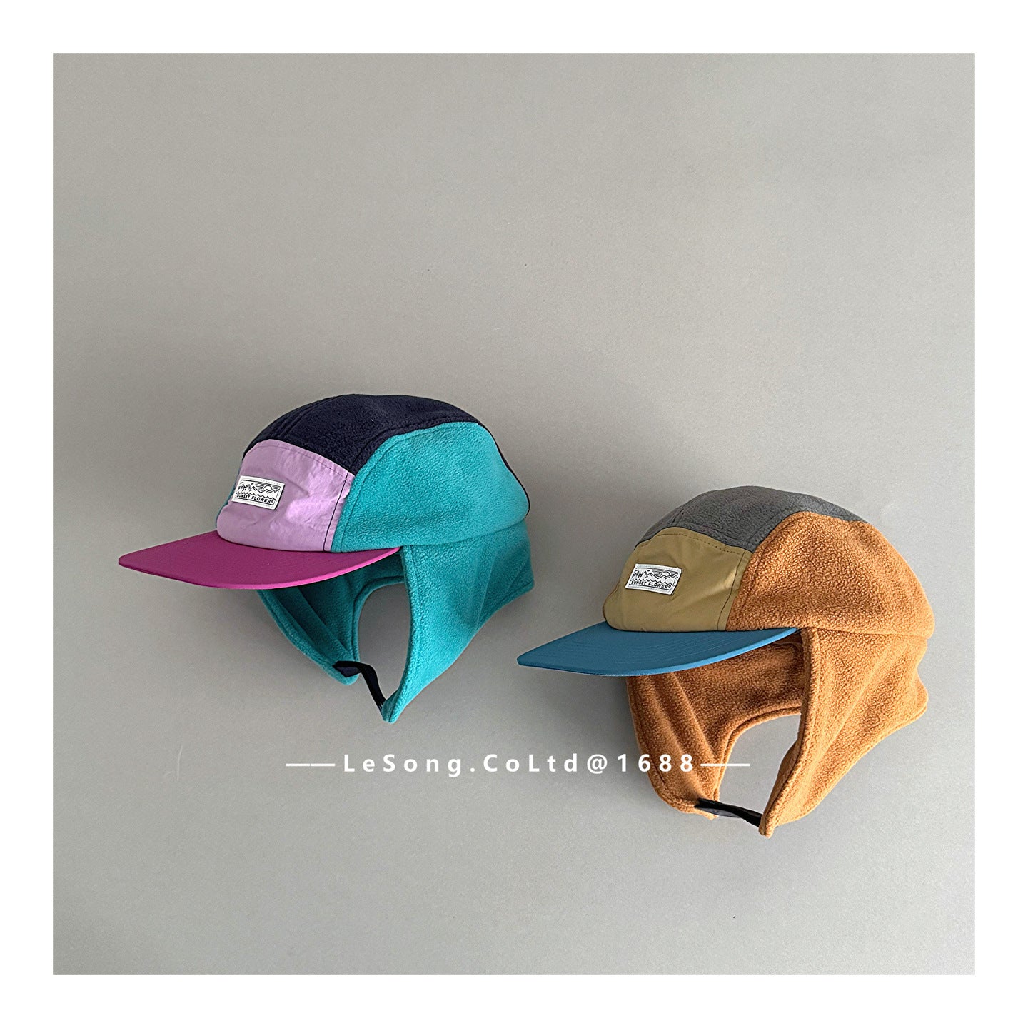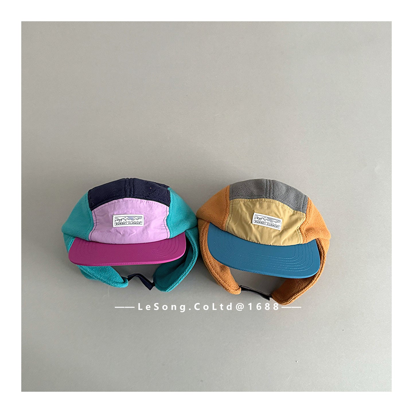 キッズ帽子 フリース カラーブロック 耳当て付き 野球帽【mh0011833】
