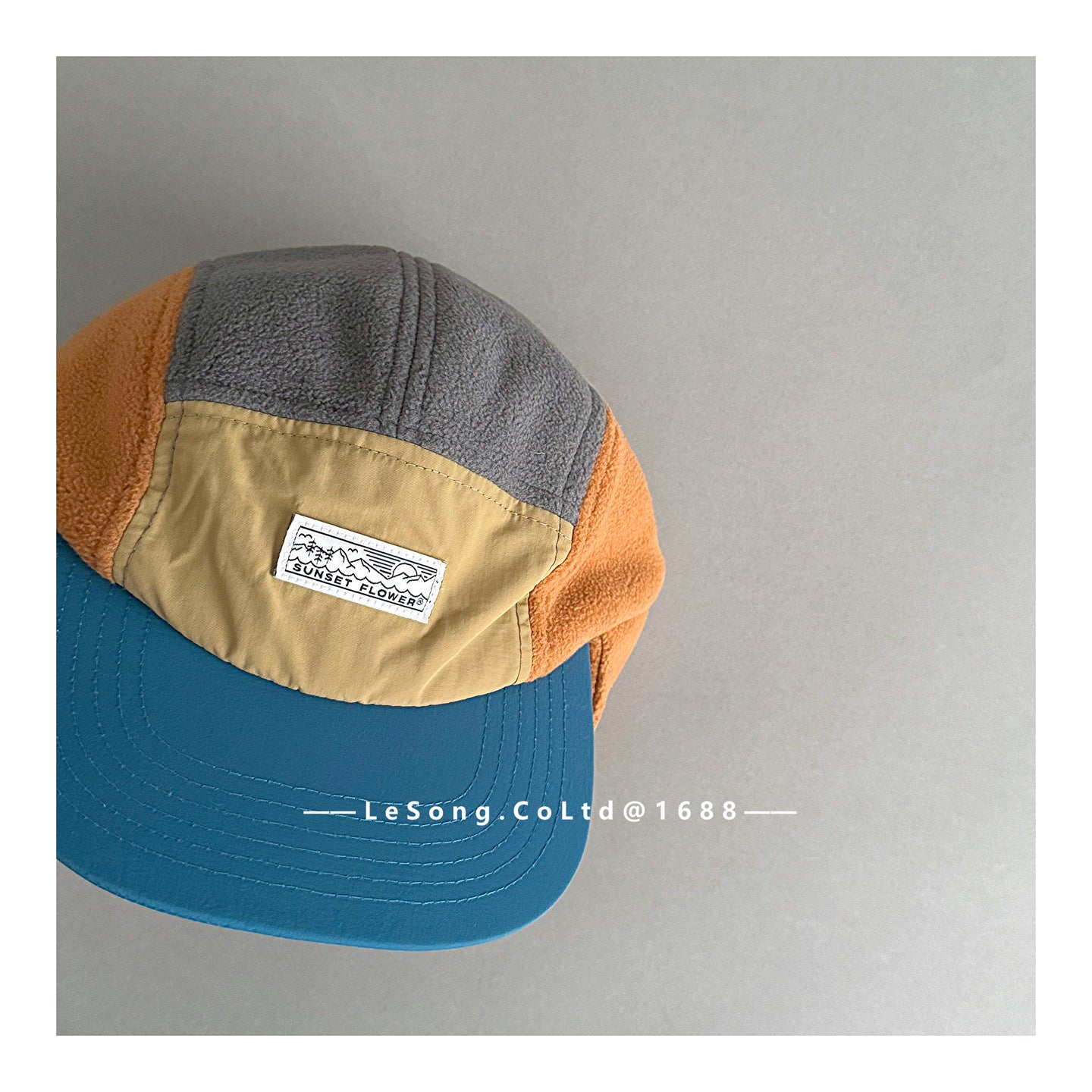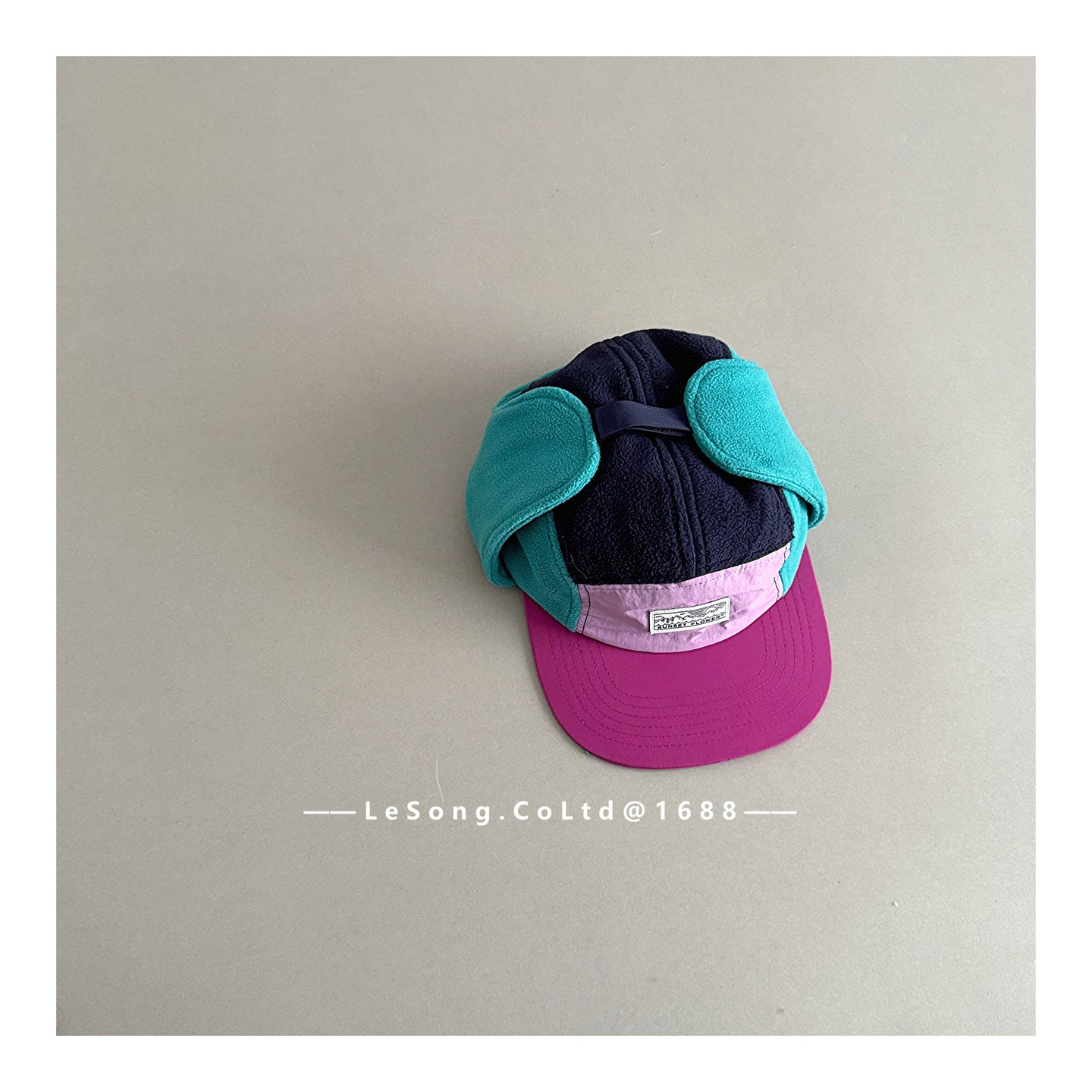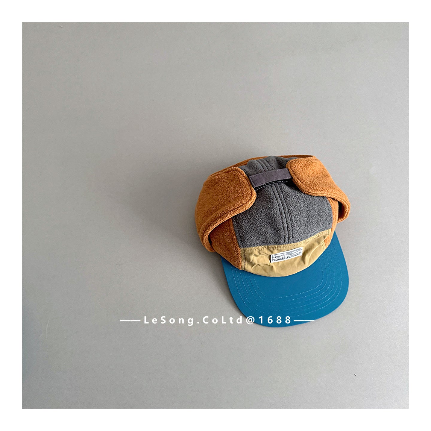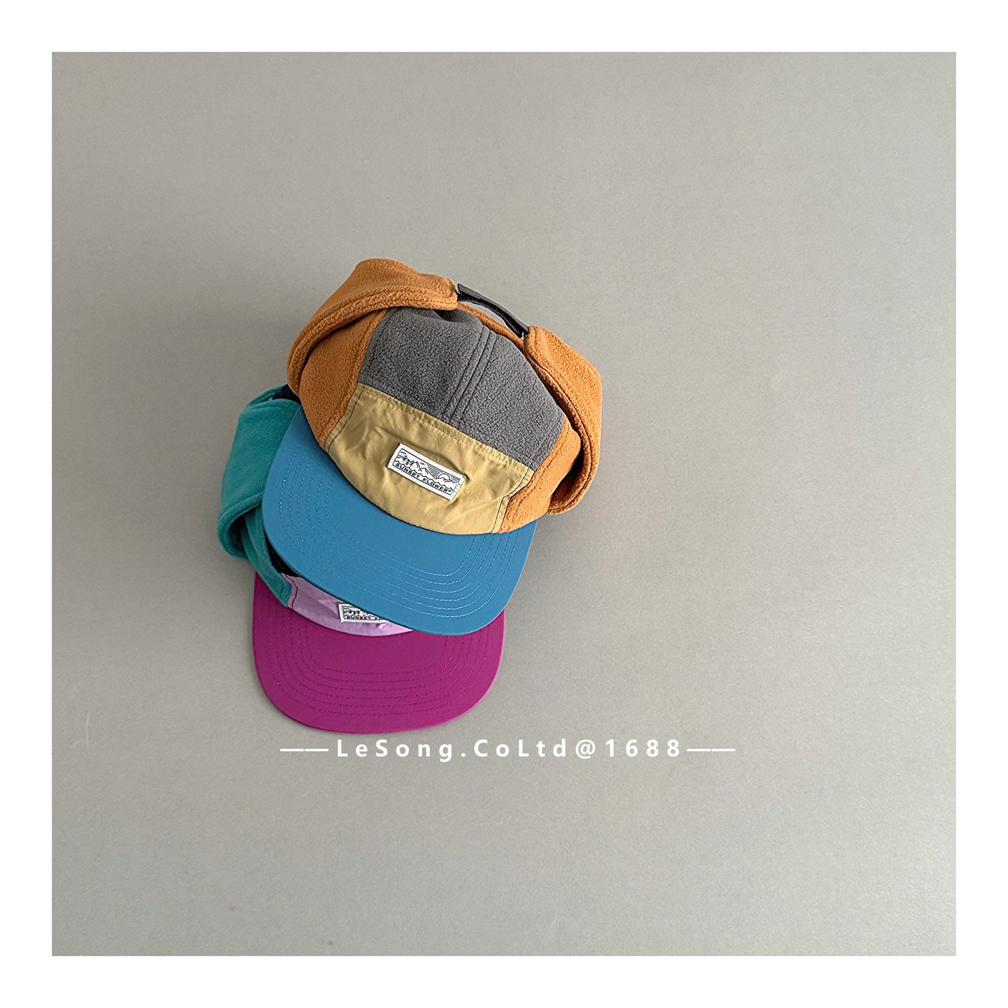 キッズ帽子 フリース カラーブロック 耳当て付き 野球帽【mh0011833】