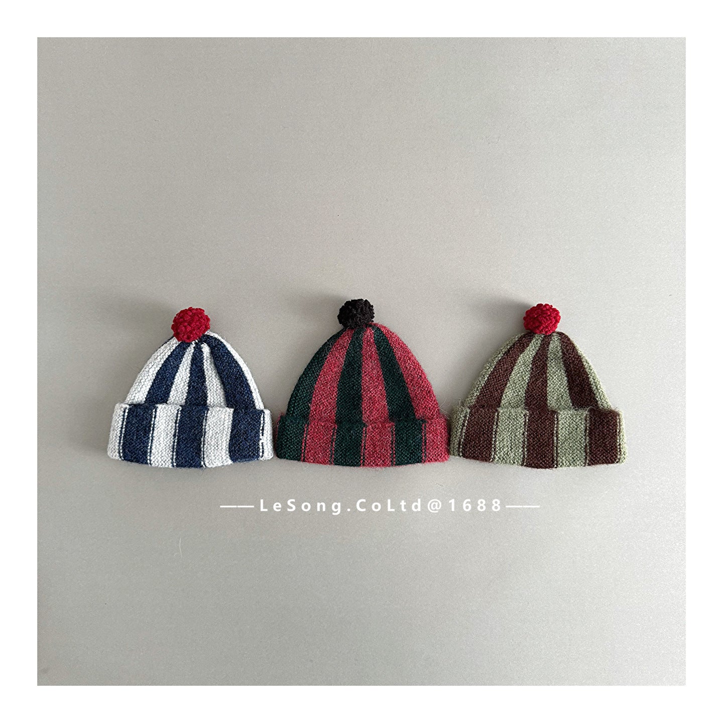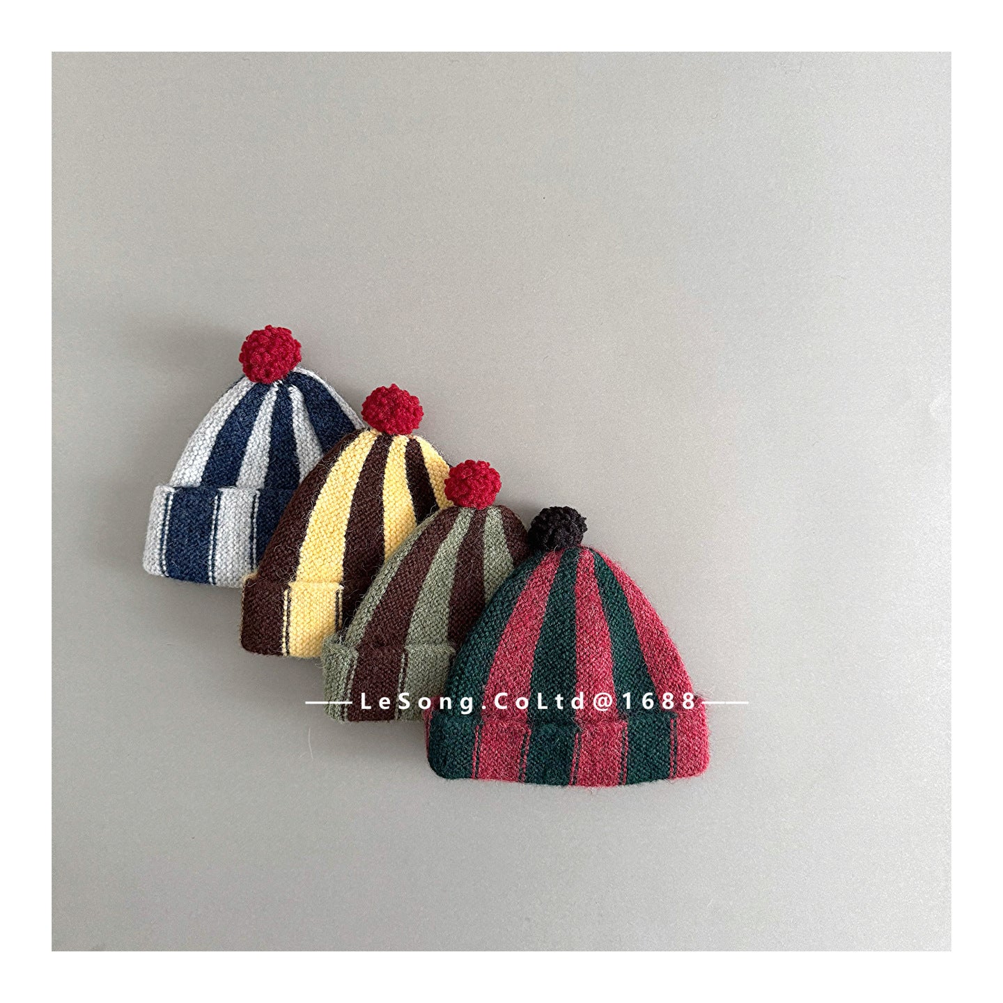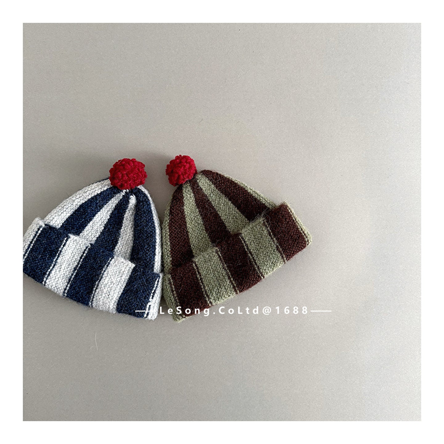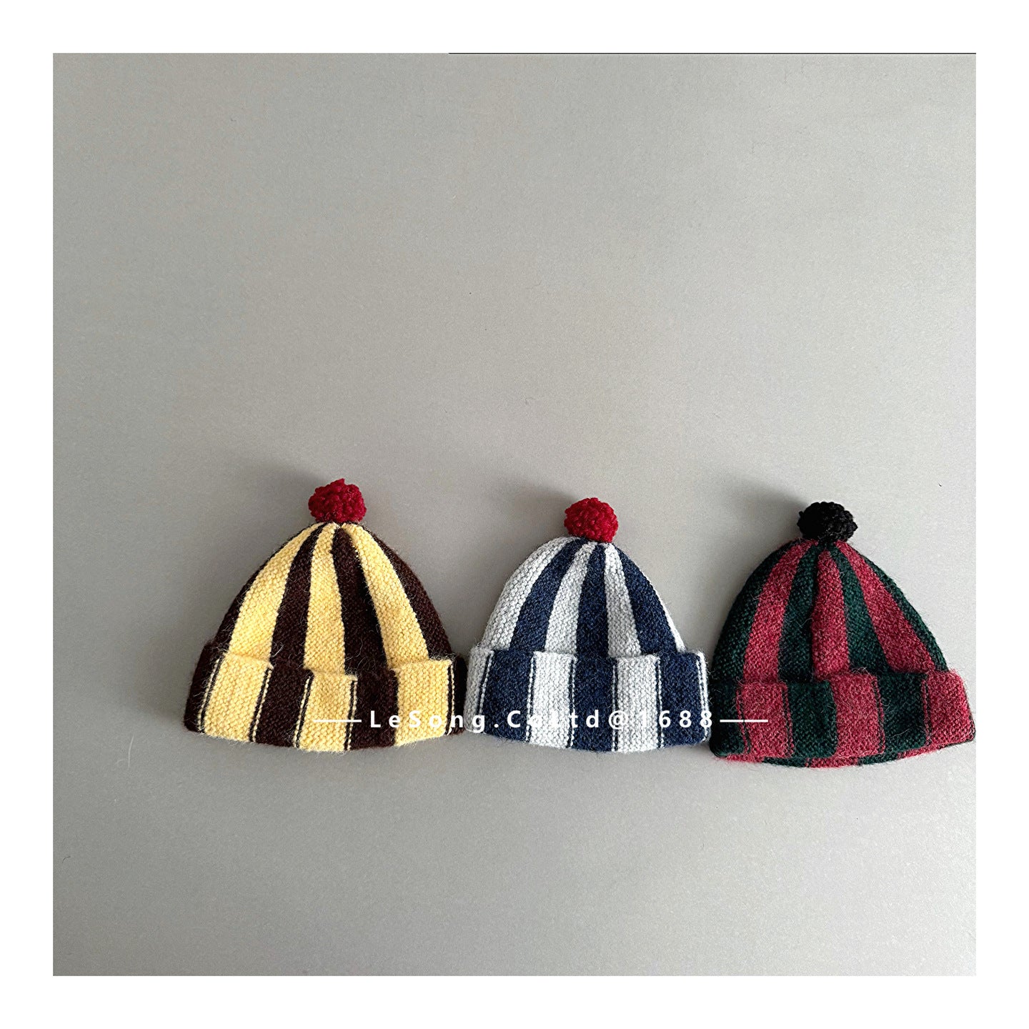ベビー帽子 ストライプ ぽんぽん ピエロ ニットキャップ【mh0011835】