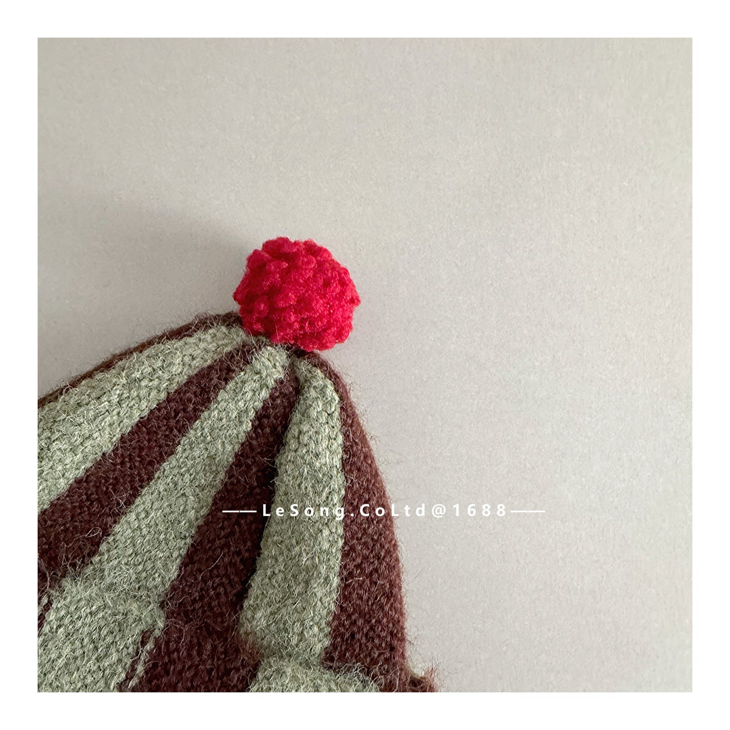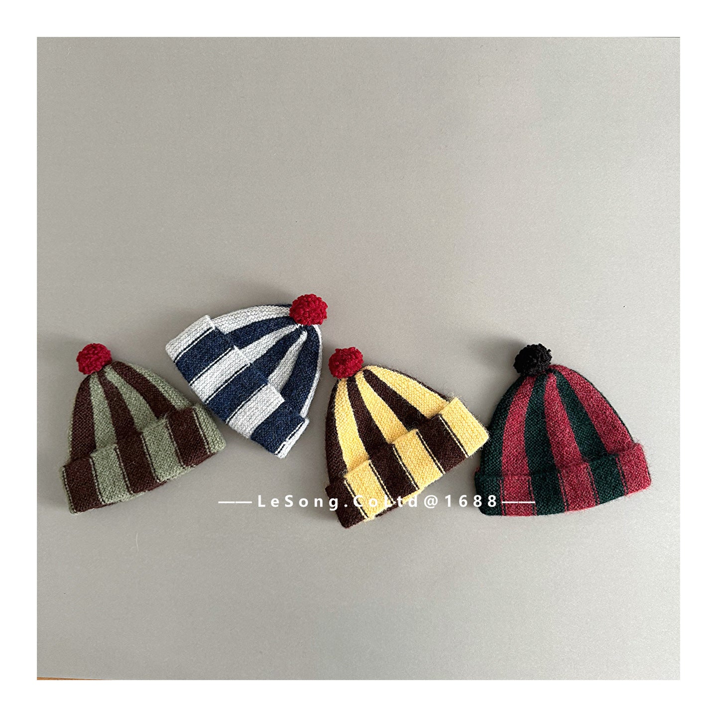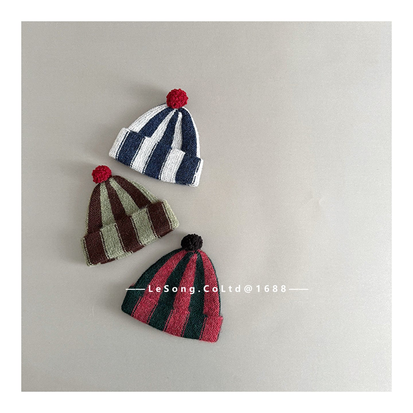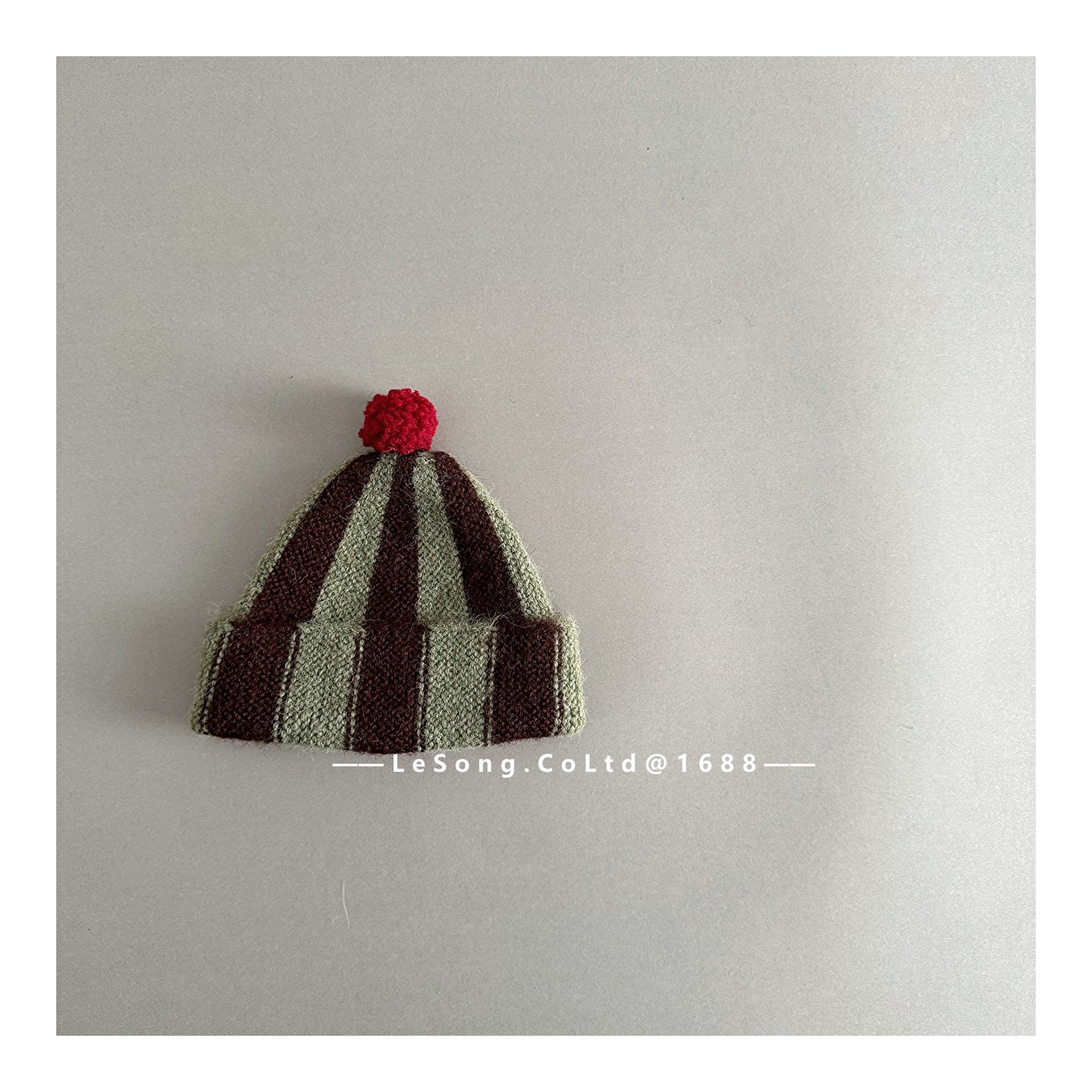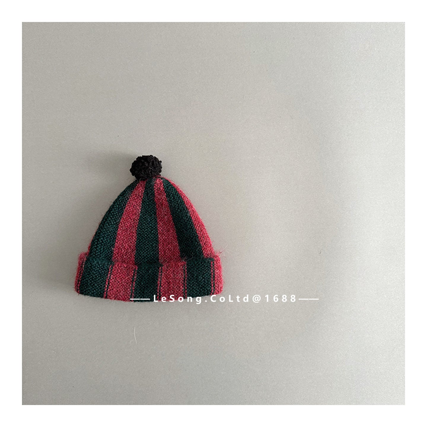 ベビー帽子 ストライプ ぽんぽん ピエロ ニットキャップ【mh0011835】