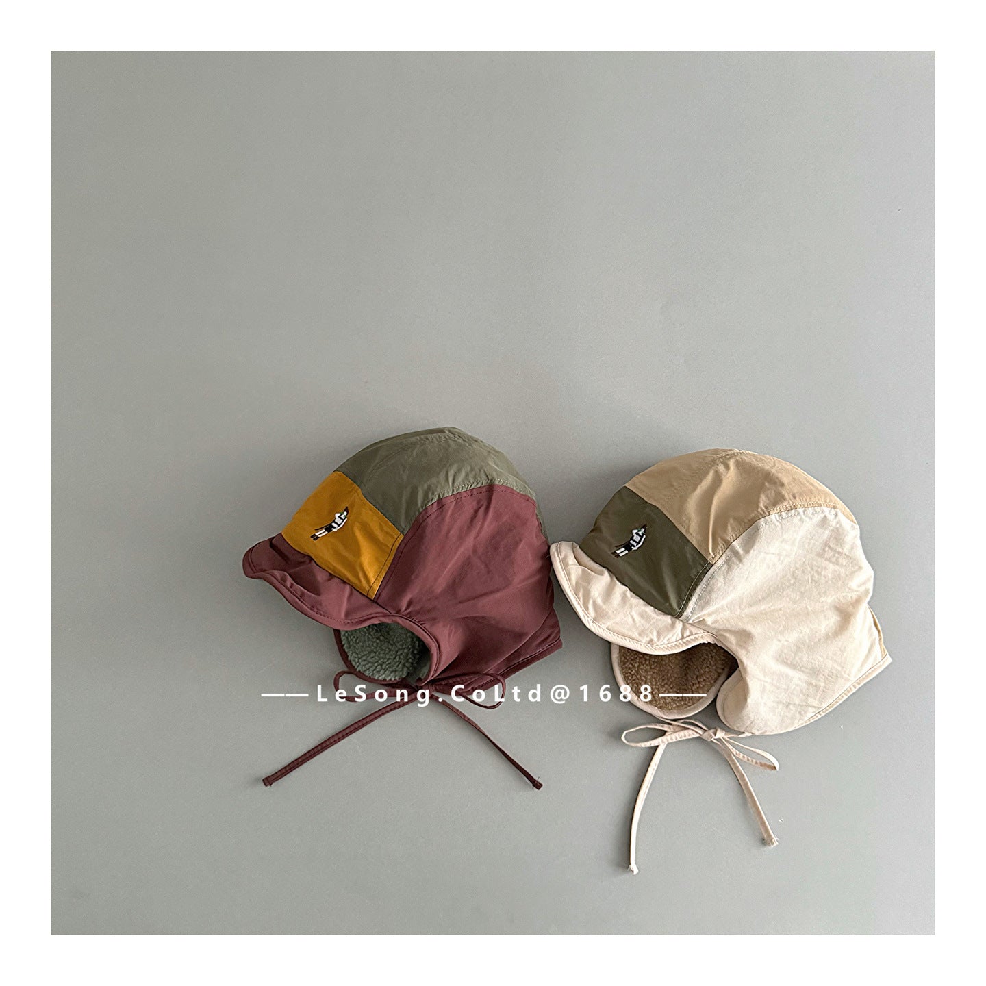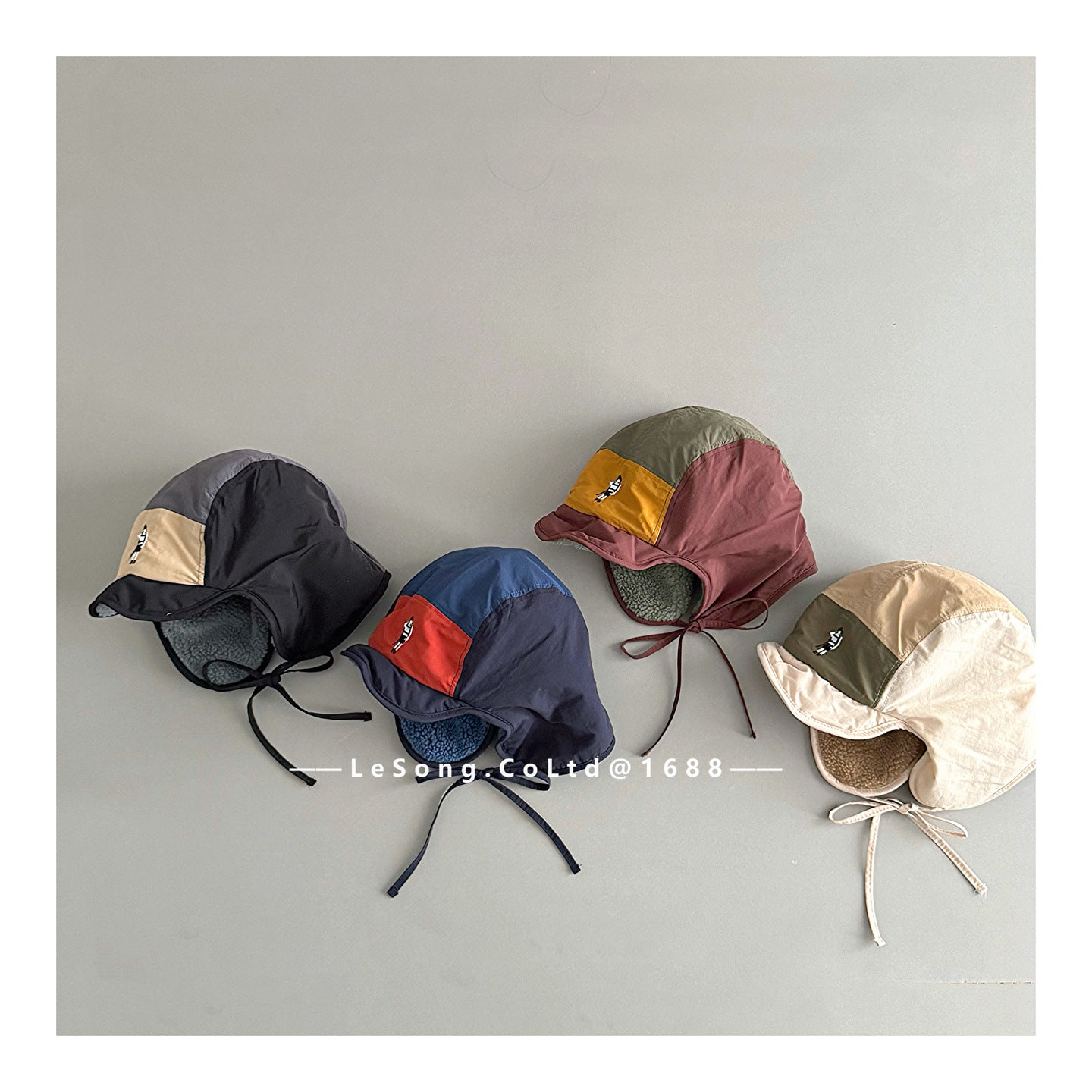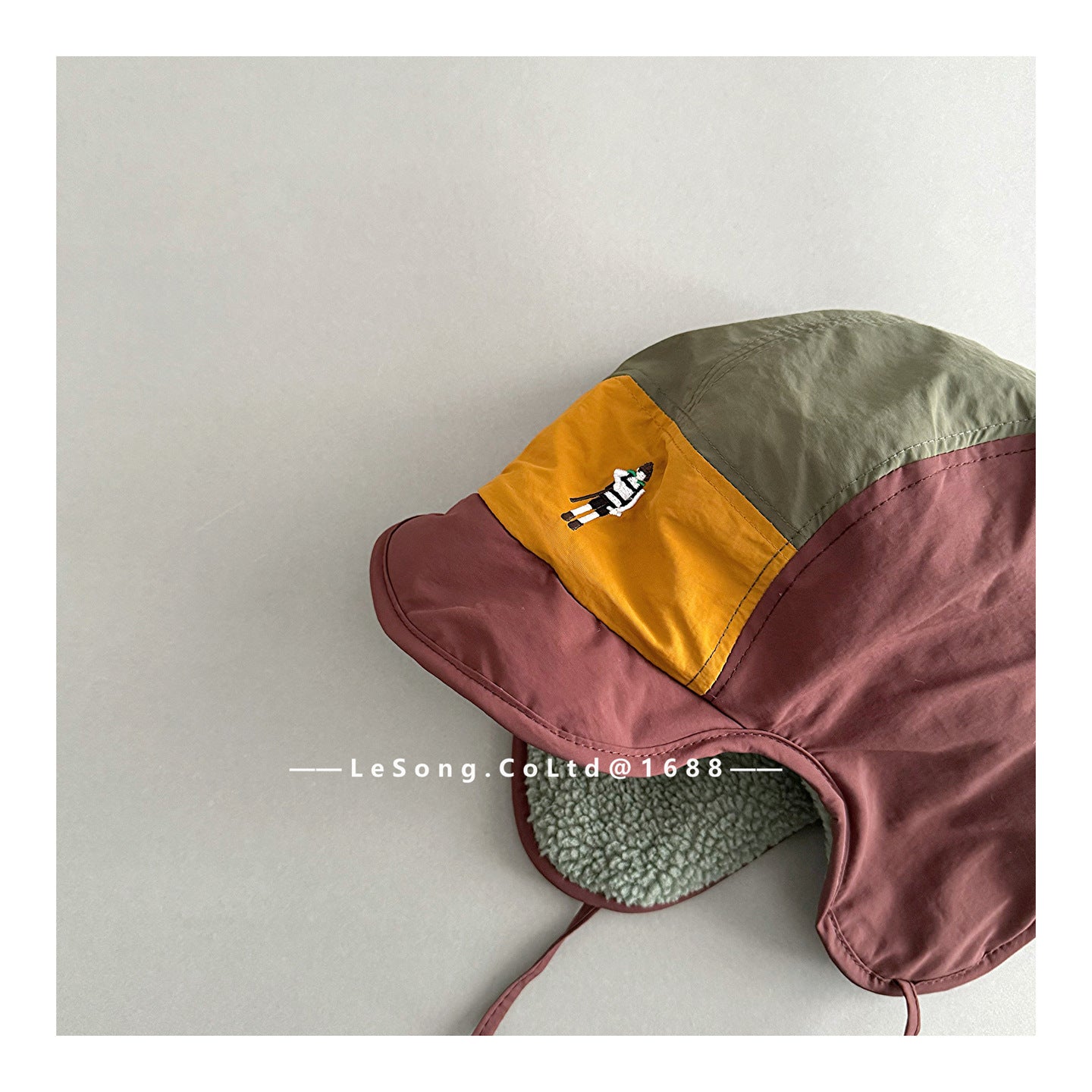 キッズ帽子 裏フリース 耳当て付き カラーブロック フライトキャップ【mh0011837】
