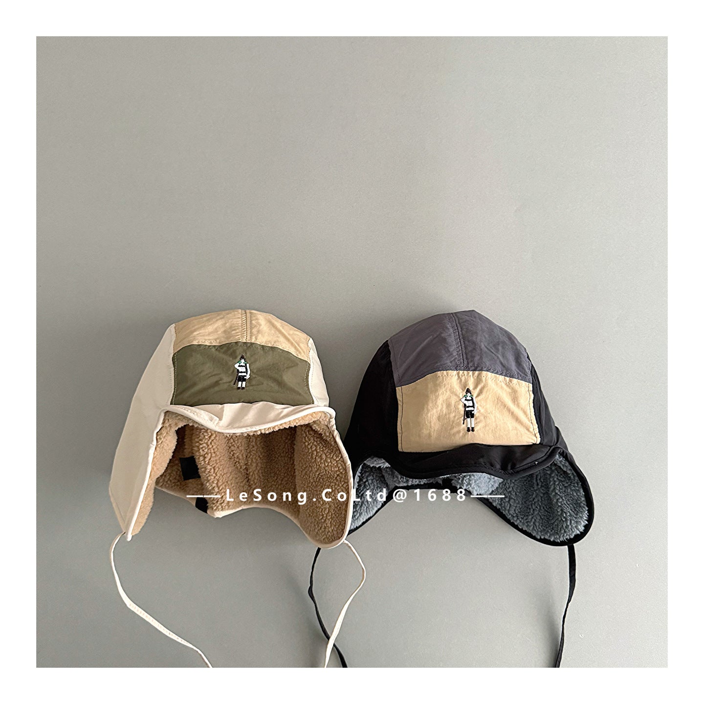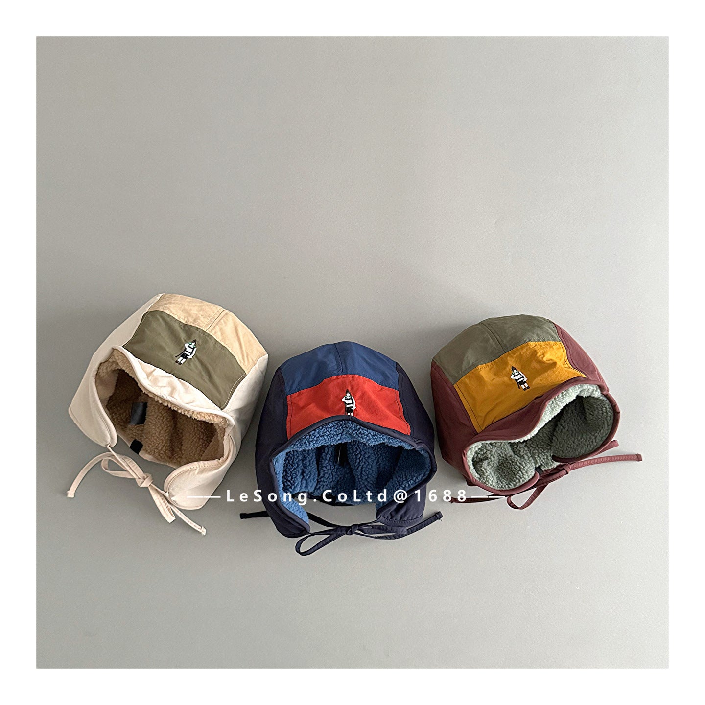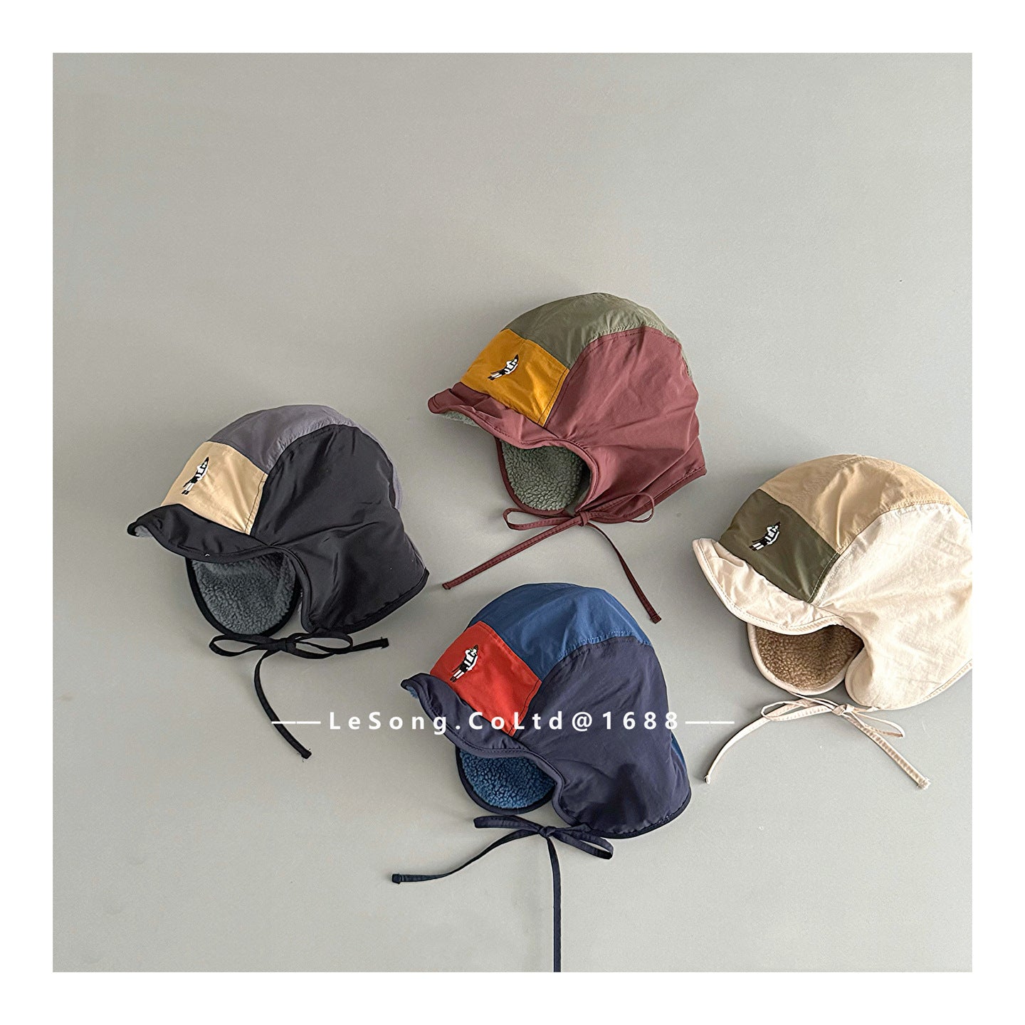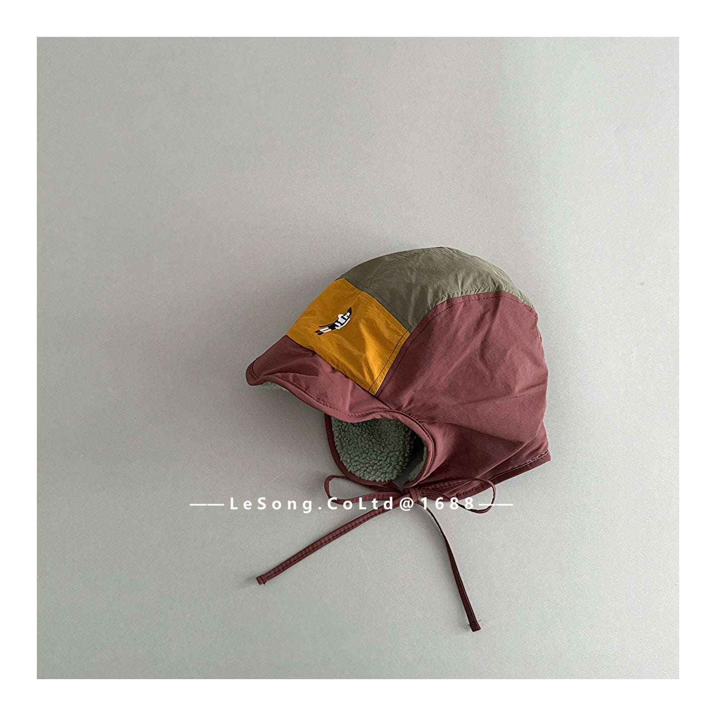 キッズ帽子 裏フリース 耳当て付き カラーブロック フライトキャップ【mh0011837】