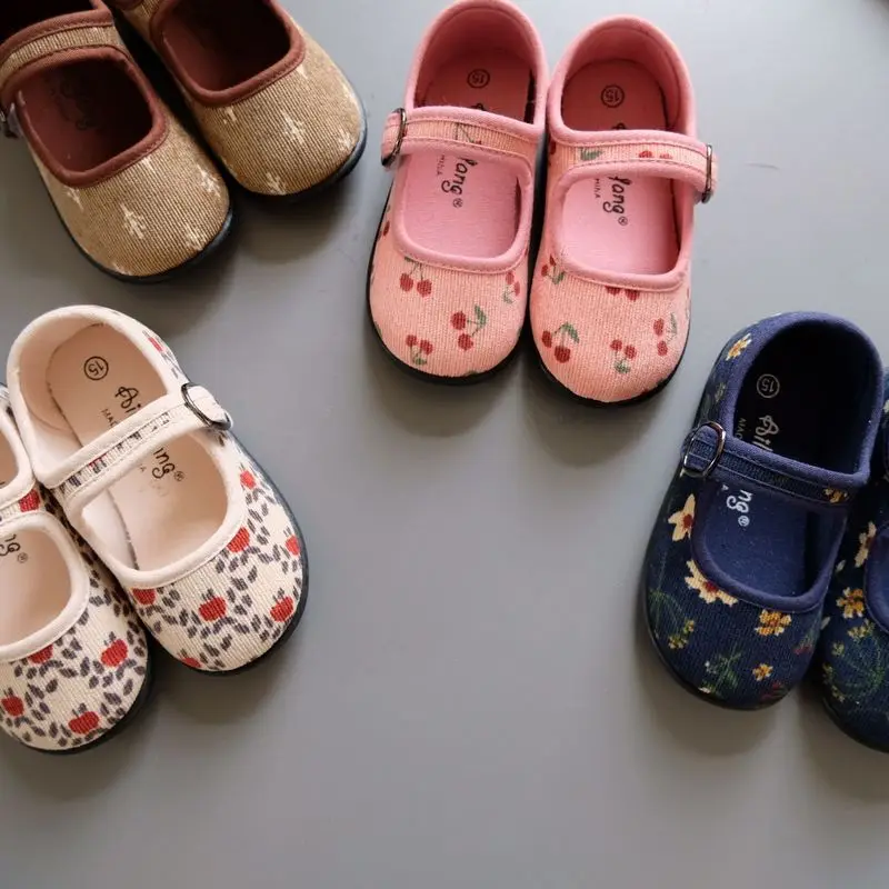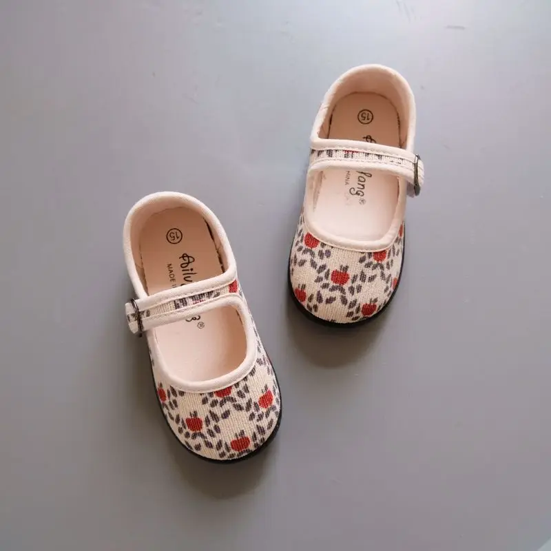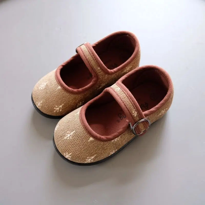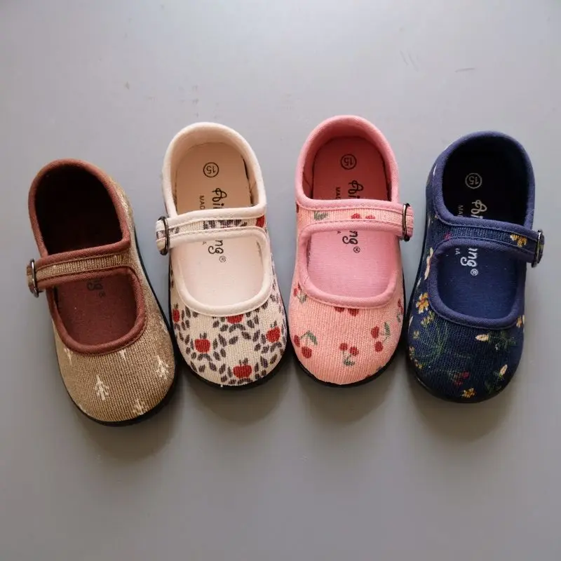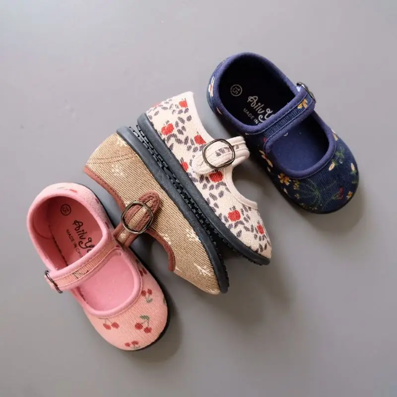 Zapatos de pana con tiras para bebés y niños, zapatos de ballet