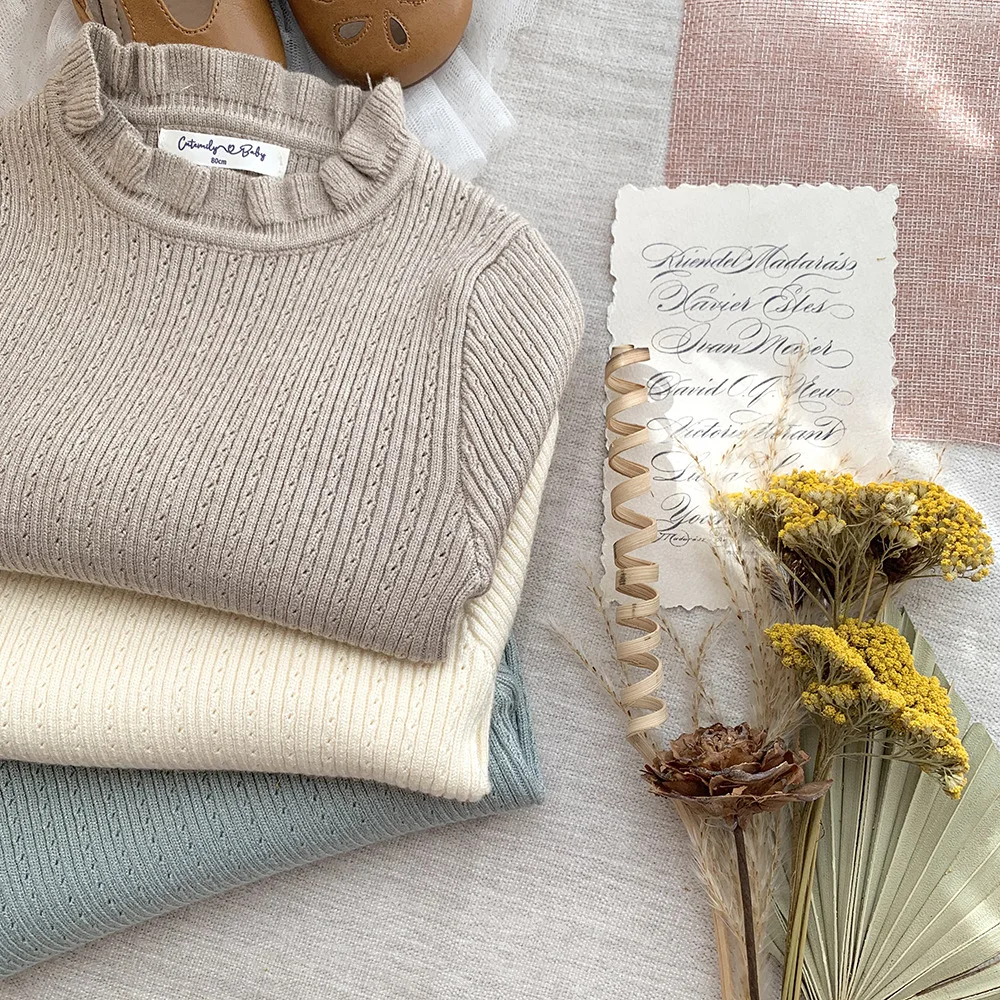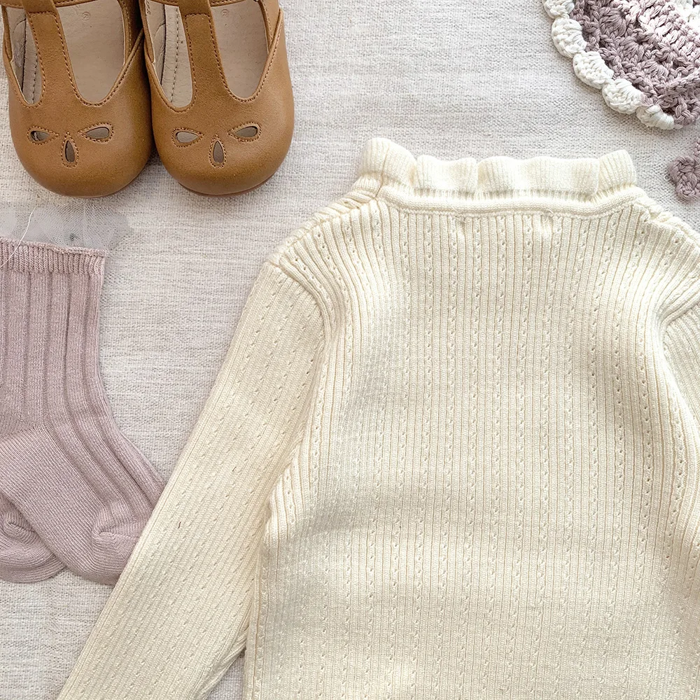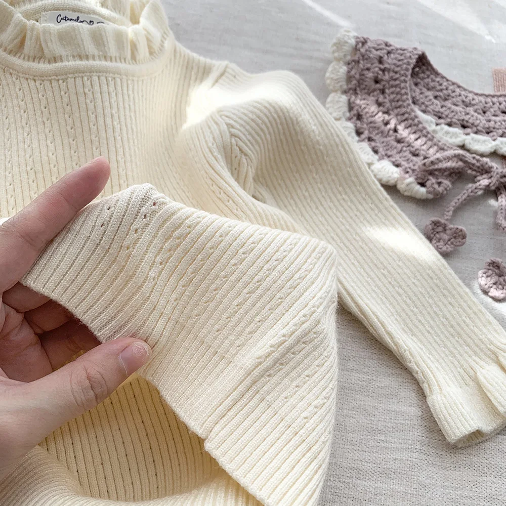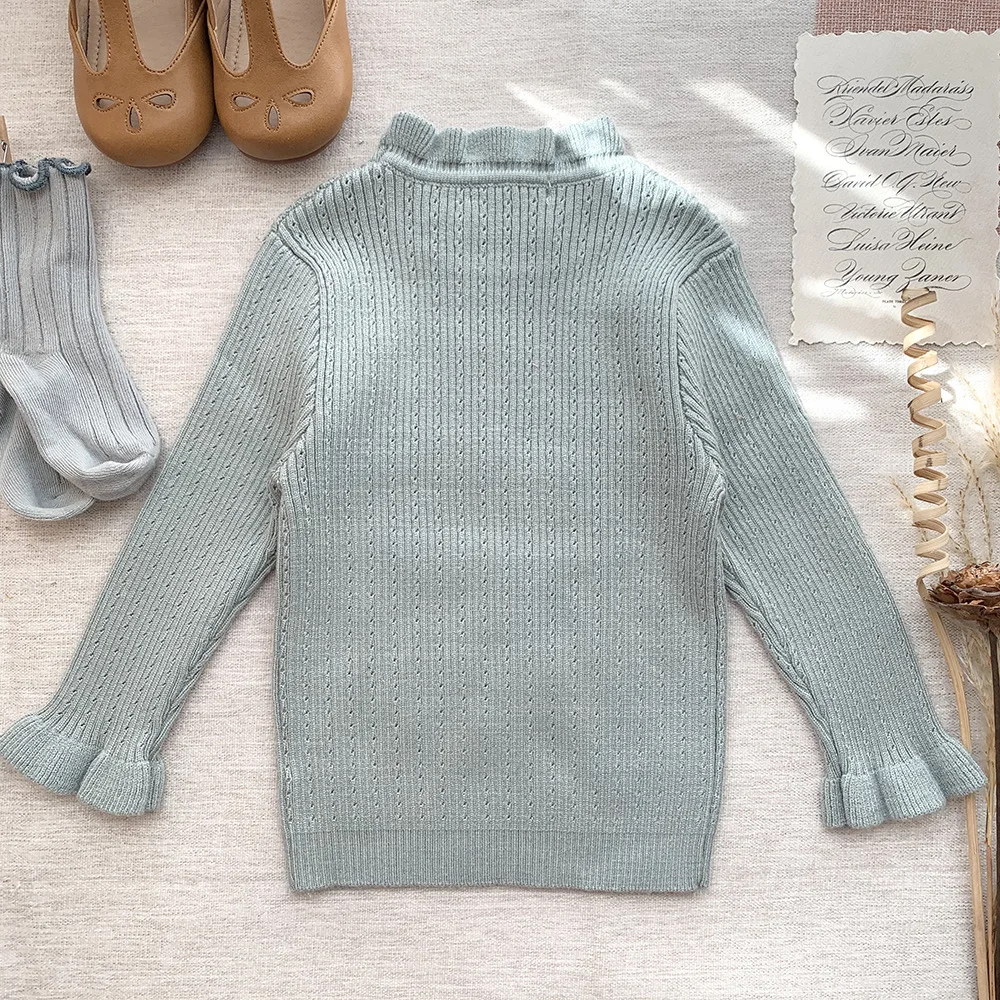 Suéteres de manga larga con volantes tejidos para niños cortados y cosidos
