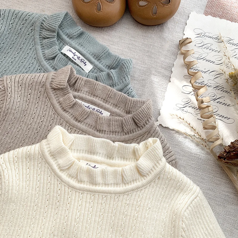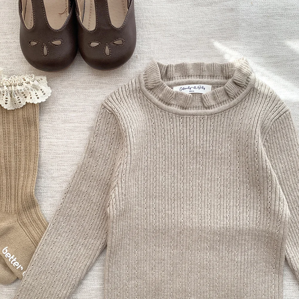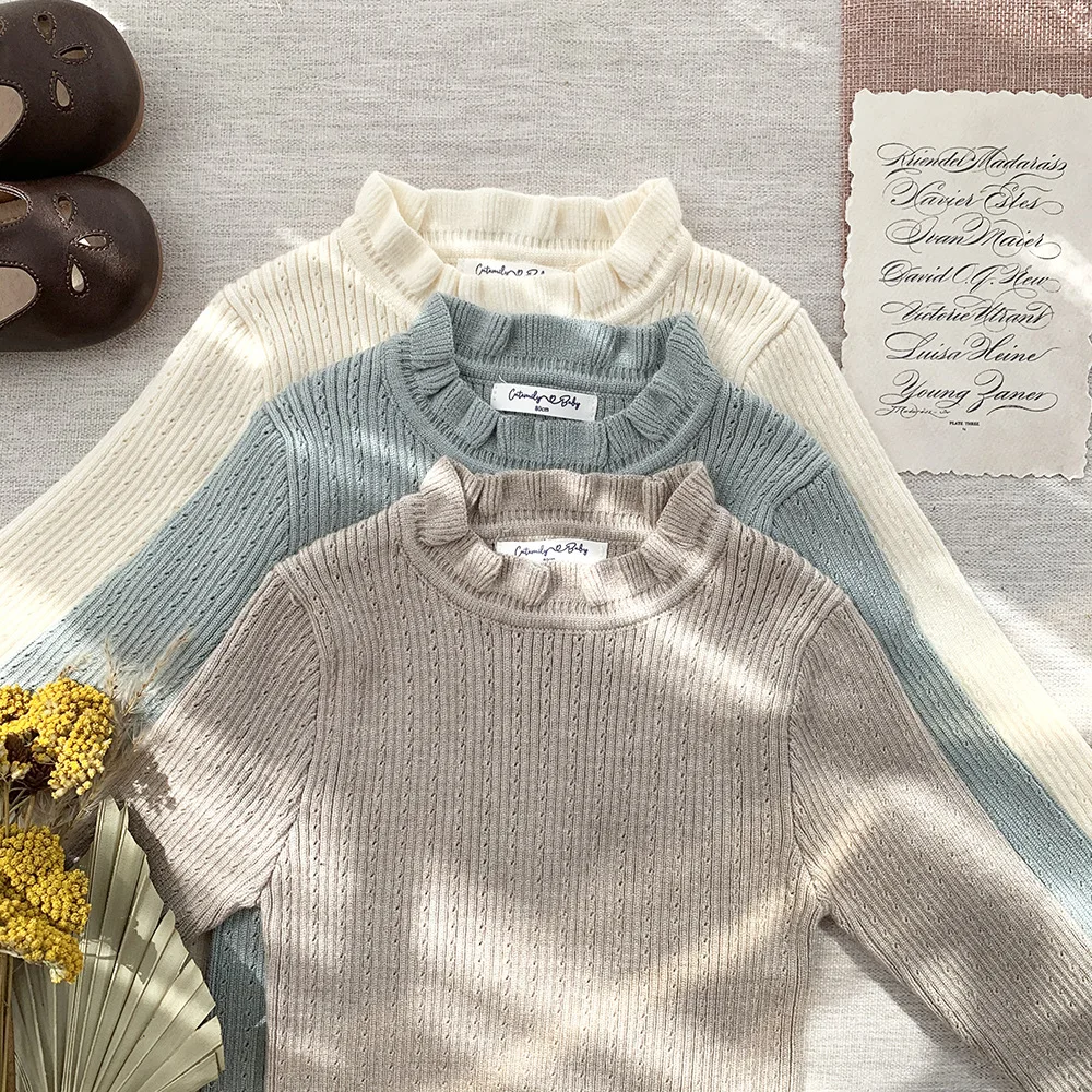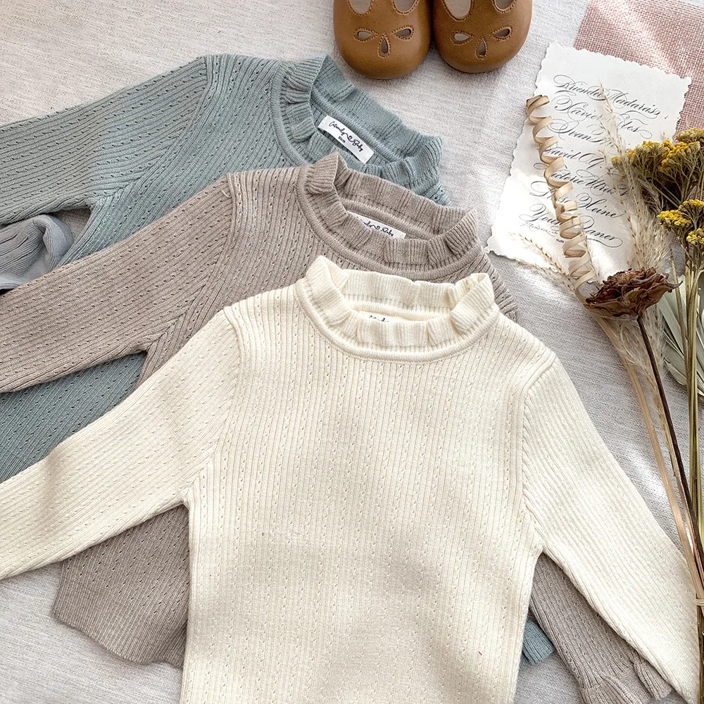 Suéteres de manga larga con volantes tejidos para niños cortados y cosidos