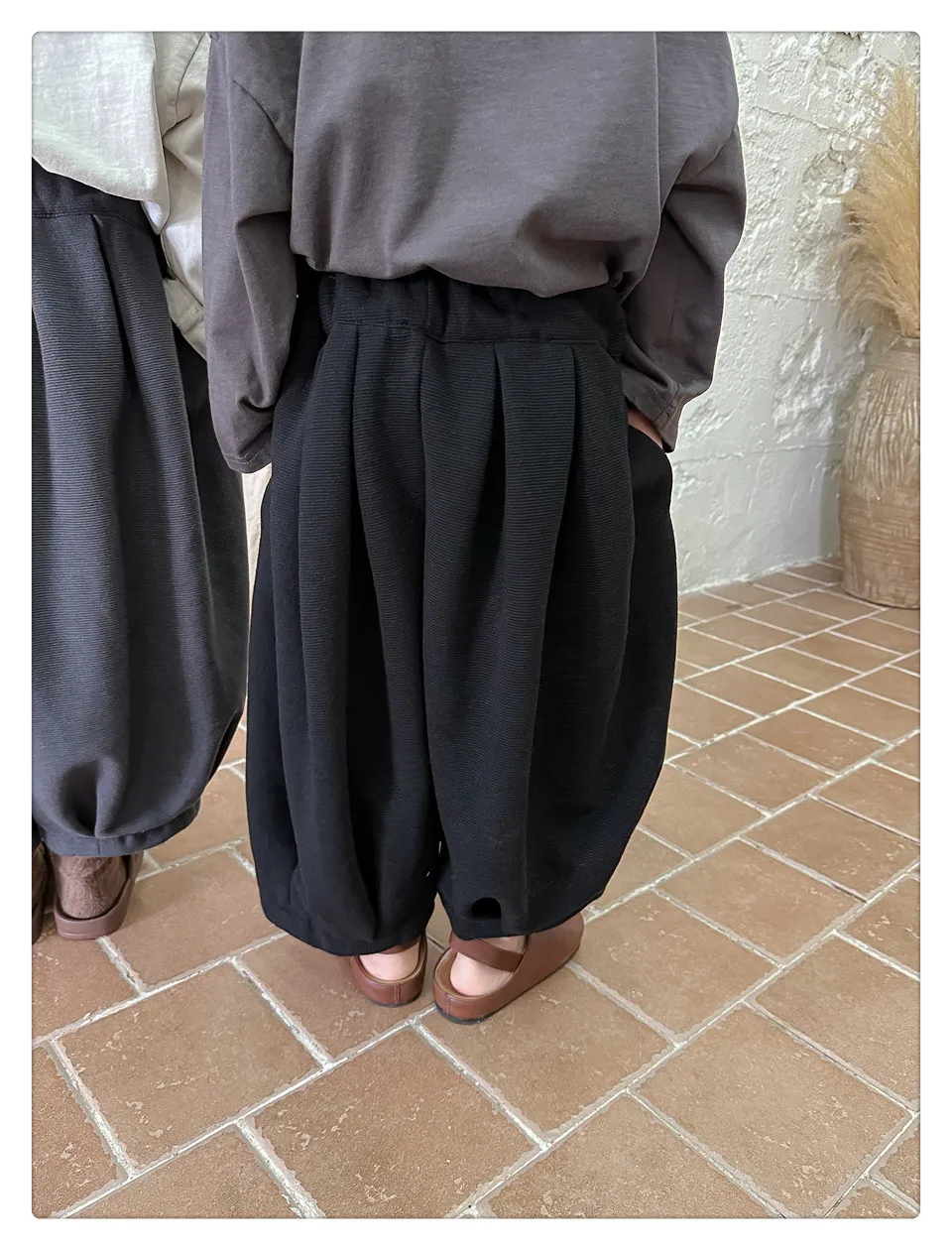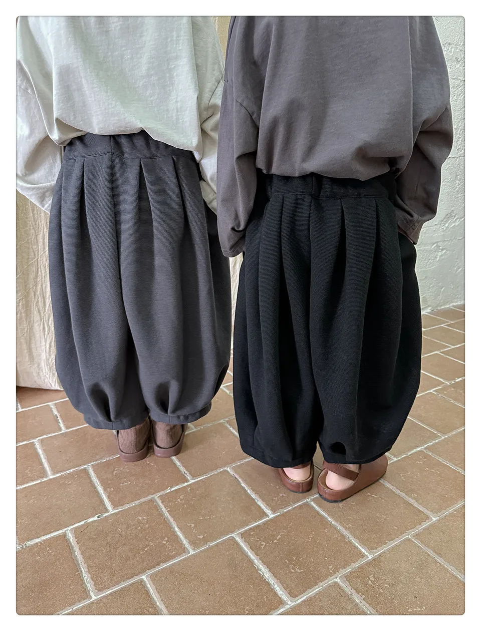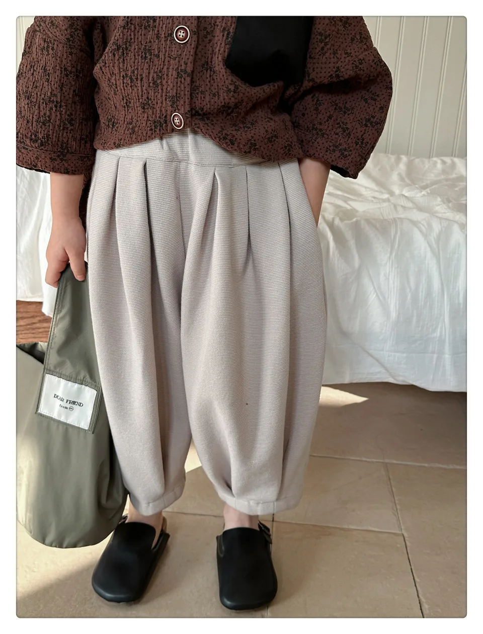 ¡Presentamos estos elegantes pantalones holgados con pliegues! Su diseño de farol es adorable y permite que los niños se muevan con libertad. Disponibles en tres colores, perfectos para el día a día. Ideales para salidas de verano y para jugar.