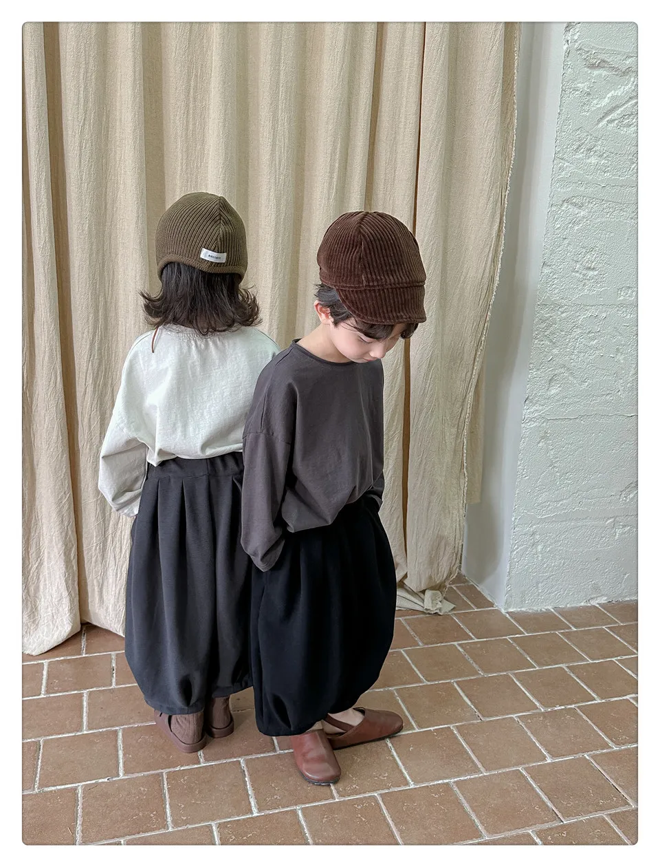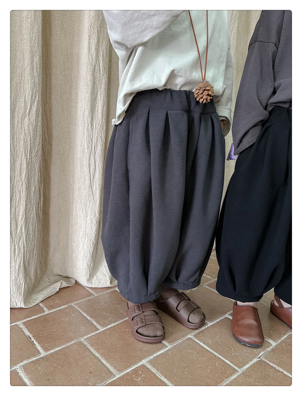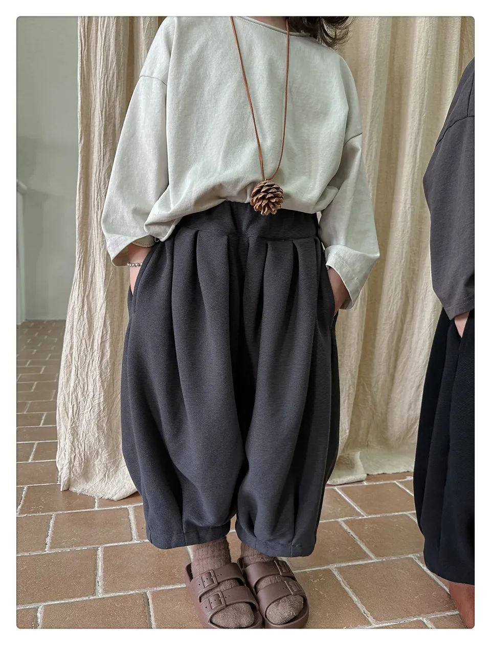 ¡Presentamos estos elegantes pantalones holgados con pliegues! Su diseño de farol es adorable y permite que los niños se muevan con libertad. Disponibles en tres colores, perfectos para el día a día. Ideales para salidas de verano y para jugar.