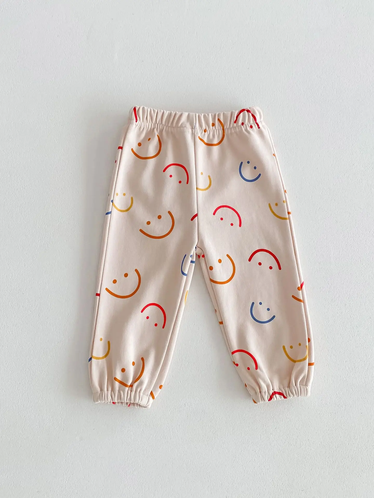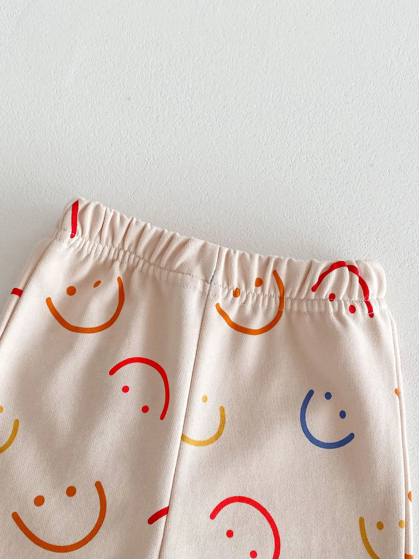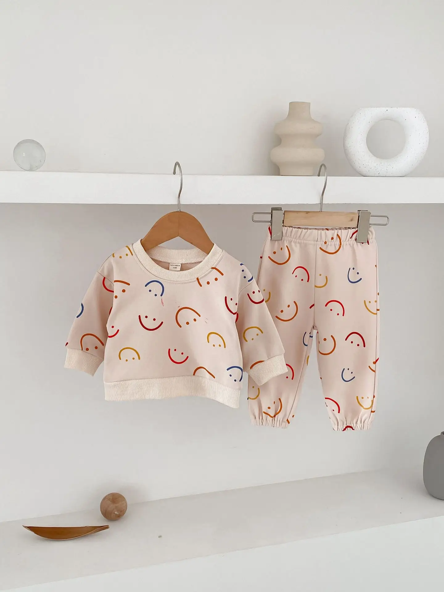 Conjunto de 2 piezas para bebé y niño, sudadera y pantalón con estampado de sonrisas coloridas