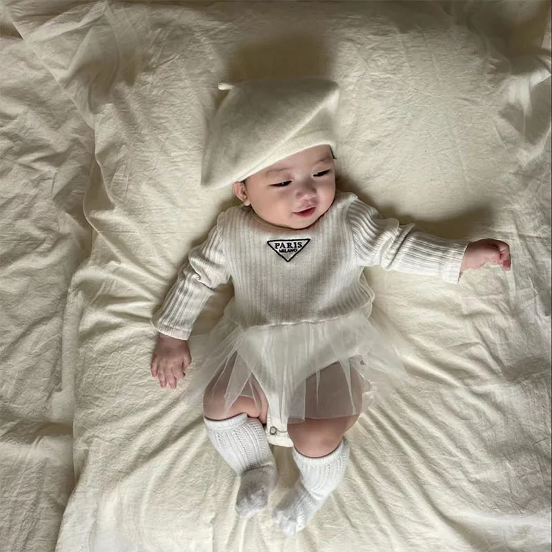 (Debido a que las regulaciones de productos infantiles de China no permiten que se coloquen etiquetas en partes que entran en contacto con la piel, las etiquetas de tamaño en casi todos los productos están en el exterior de la ropa, pero esto no es un defecto).