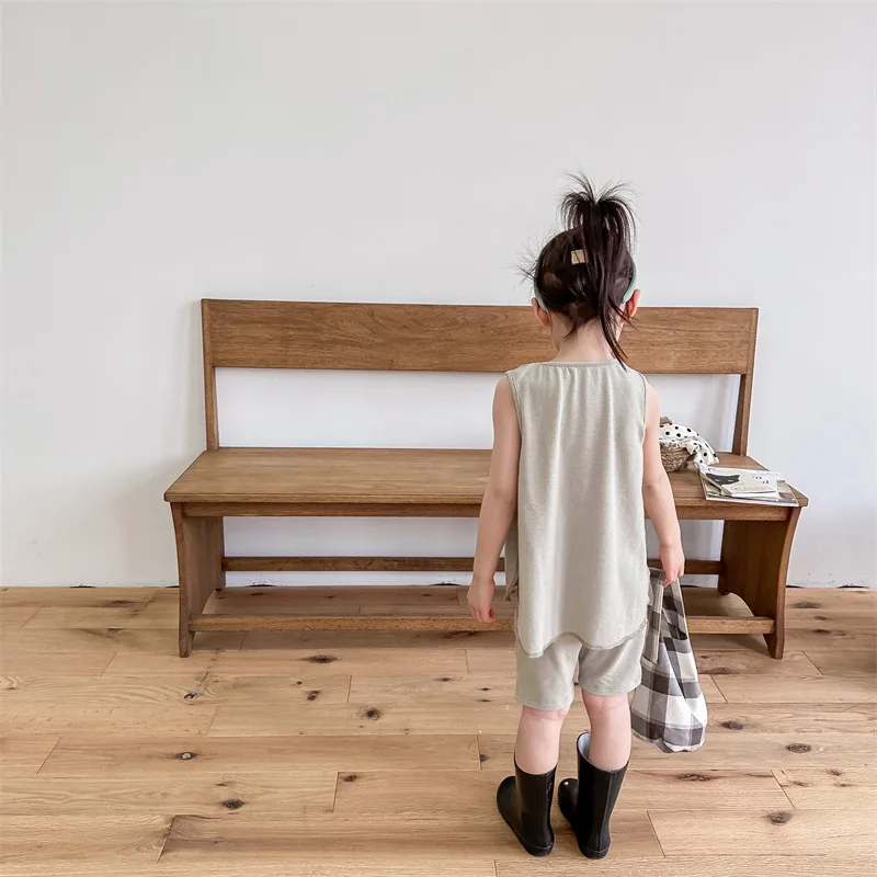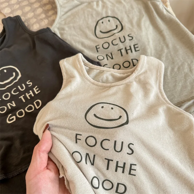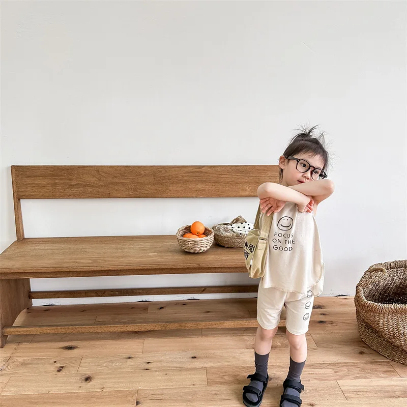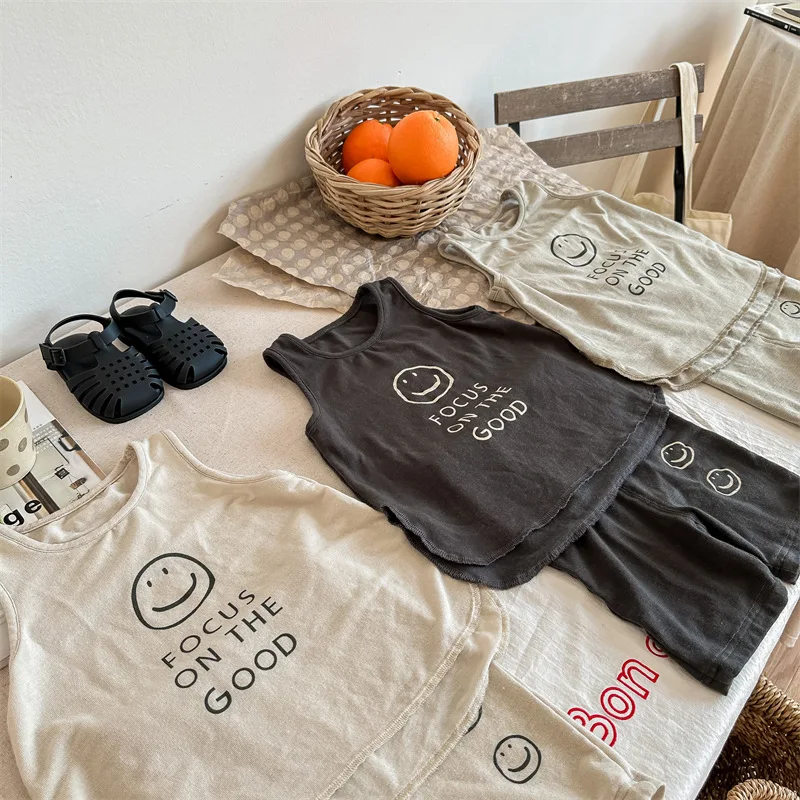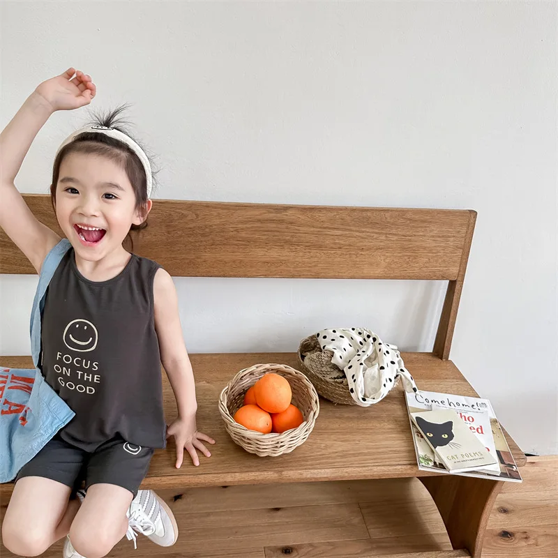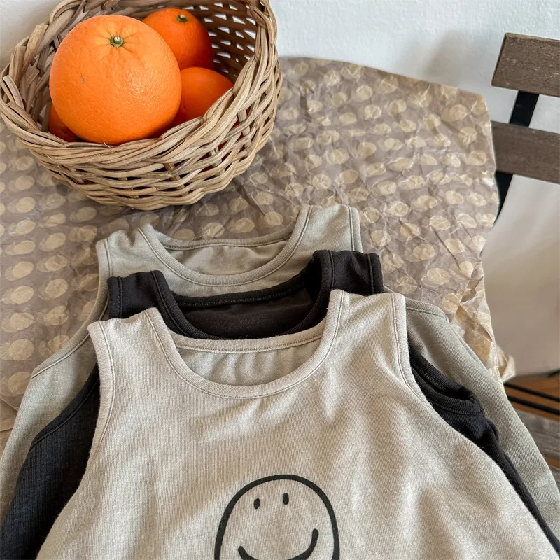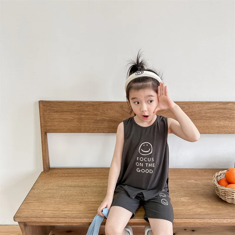 Camiseta sin mangas con leggings cortos y pantalones con diseño de sonrisas para niños [mh0001805]