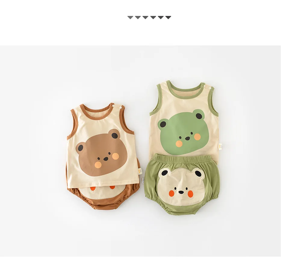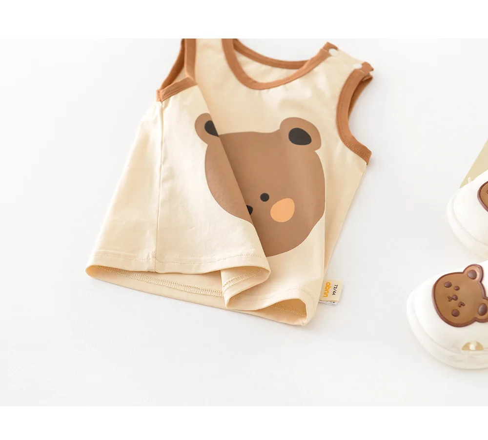 Conjunto de camiseta y pantalones bombachos con diseño de oso para bebé y niño, color café, marrón y verde [mh0002241]