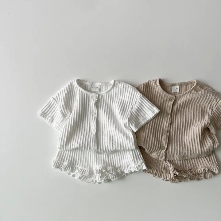 Camiseta de manga corta con volantes acanalados para niñas [mh0002593]