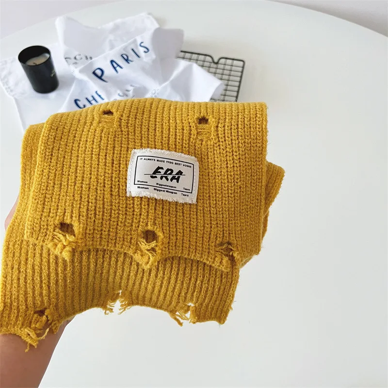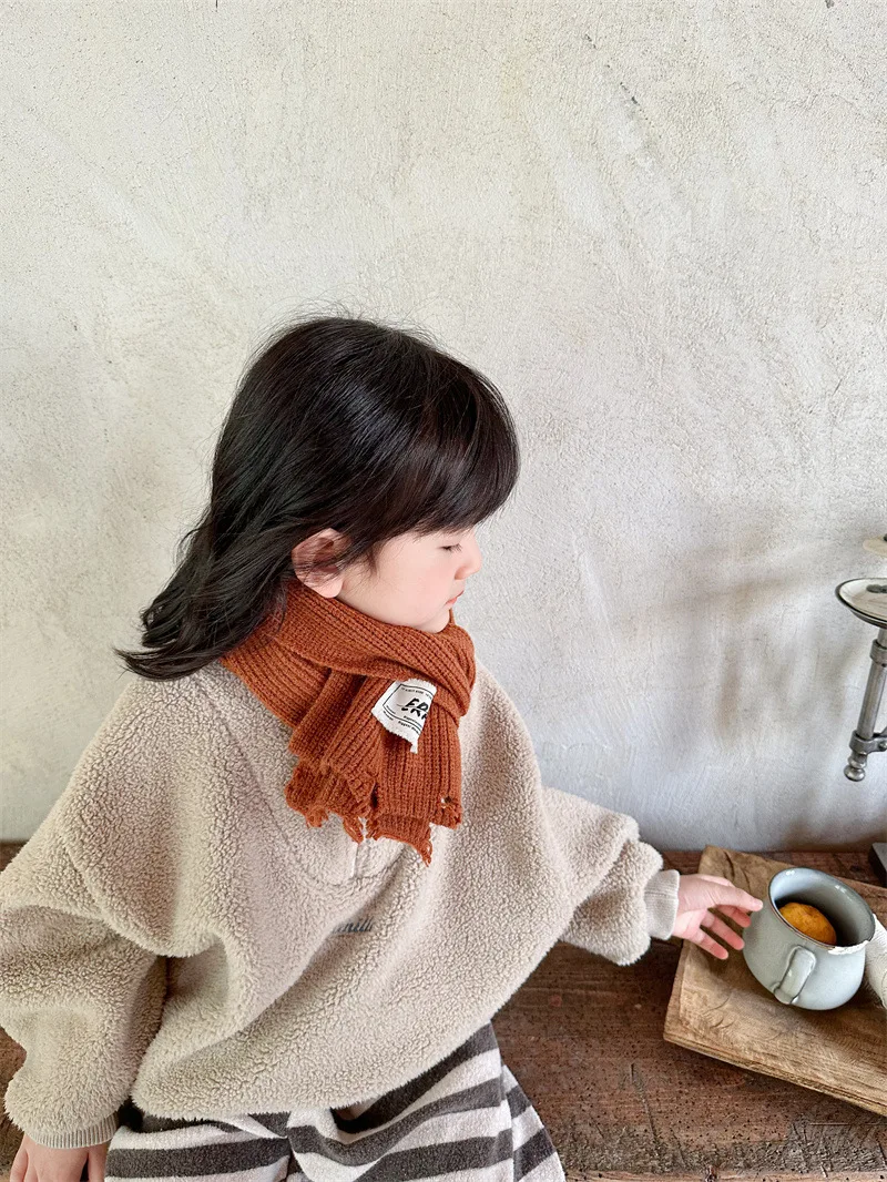 Bufanda para niños, calentador de cuello, bufanda de punto, lisa, desgastada