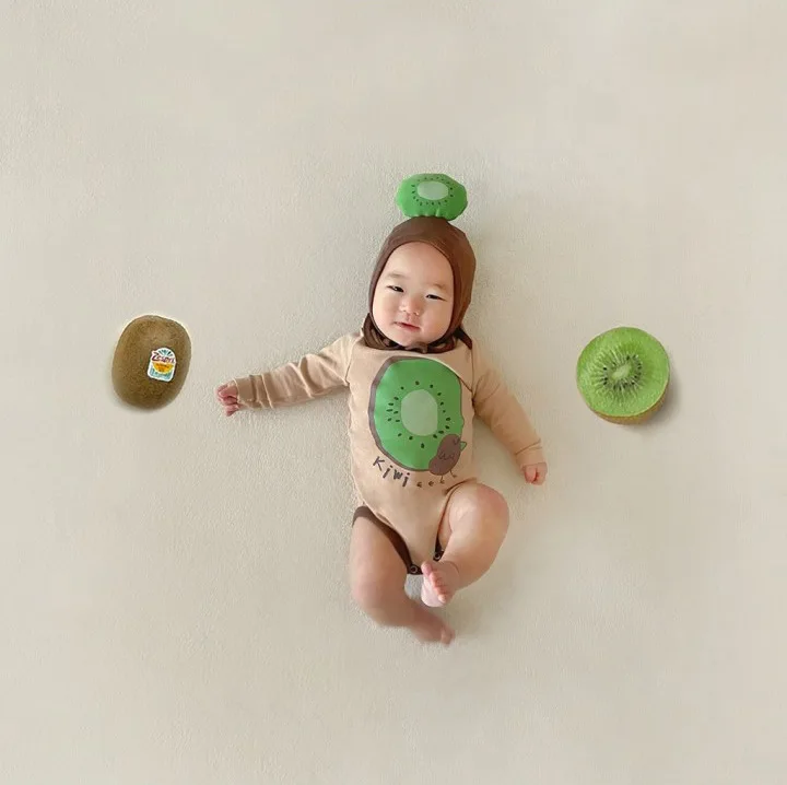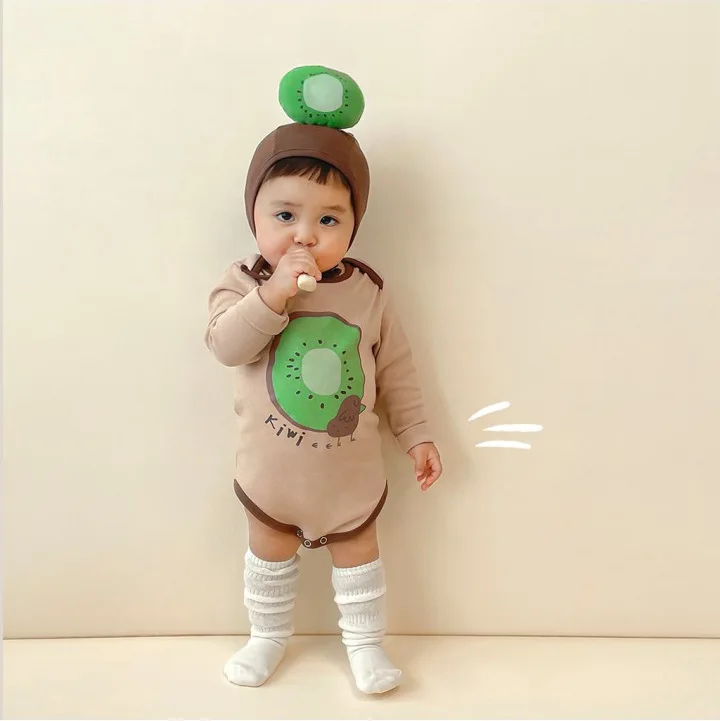 #Mono con estampado de kiwi #Moda para bebé #Disfraz bonito #Ropa para recién nacido #Mono para bebé #Conjunto de gorro para bebé