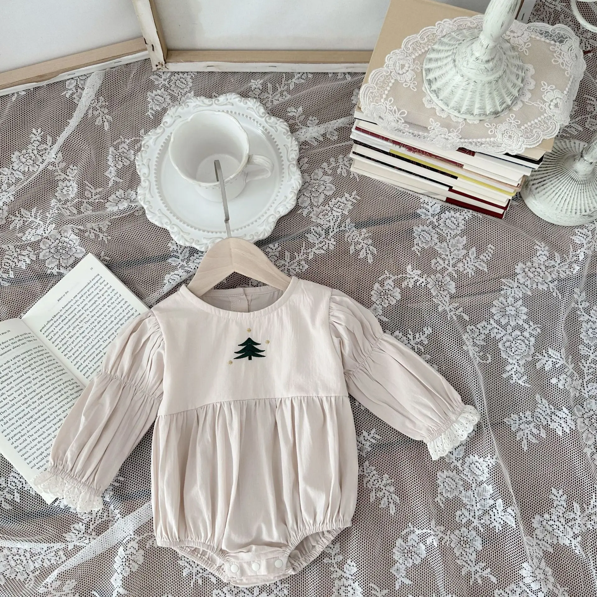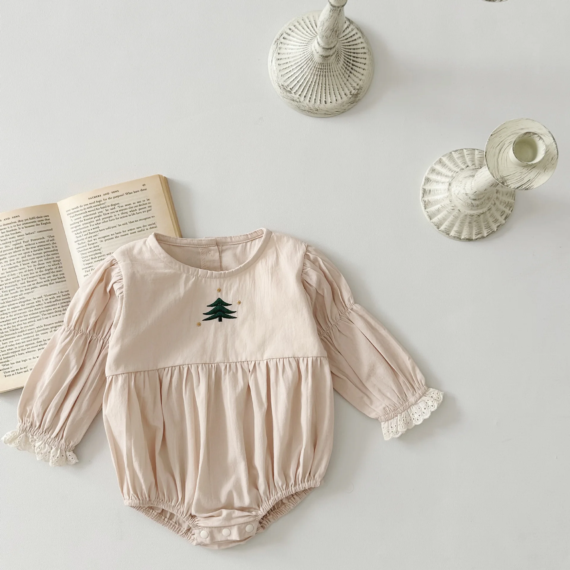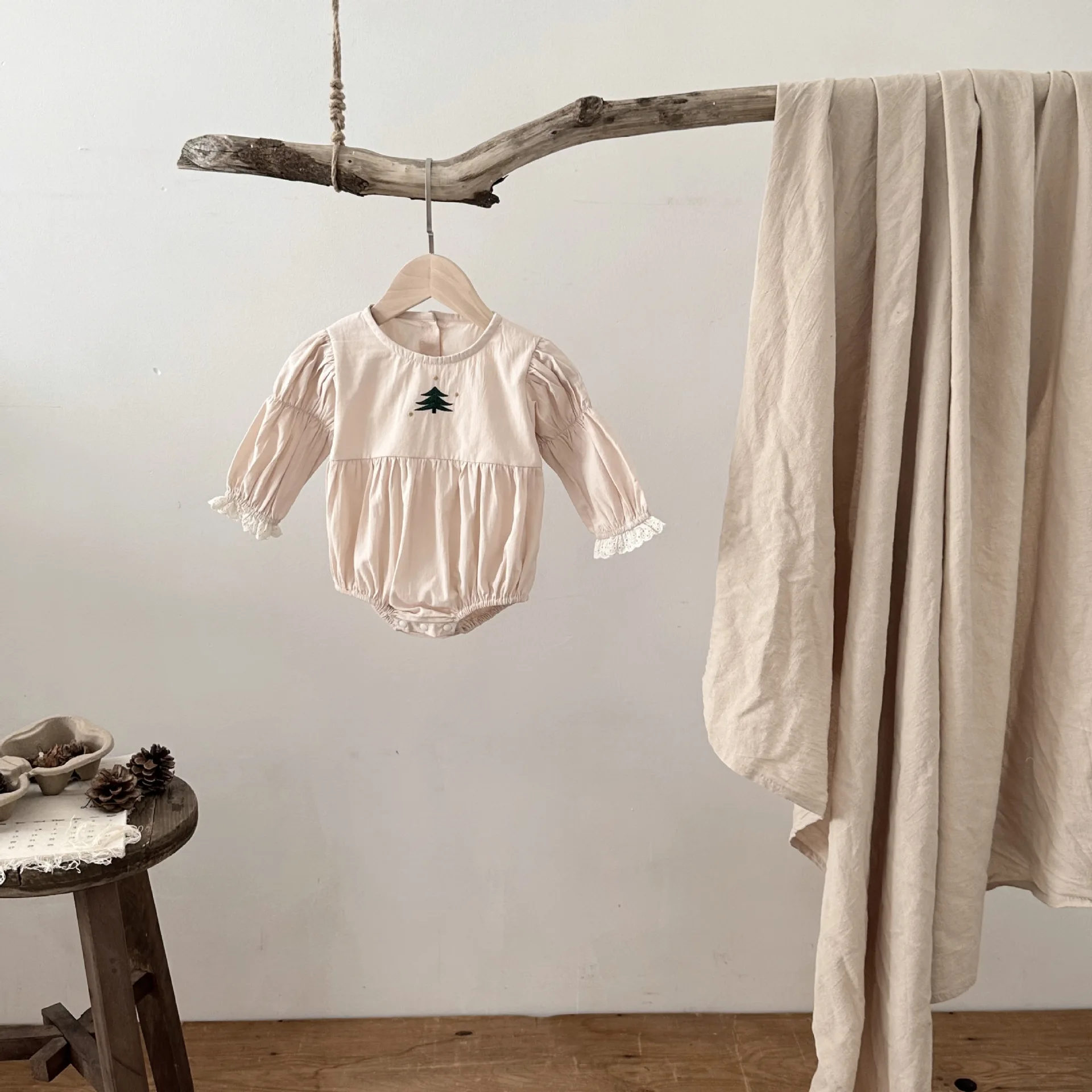 Pelele de bebé, body de manga larga acampanada con árbol bordado [mh0004665]