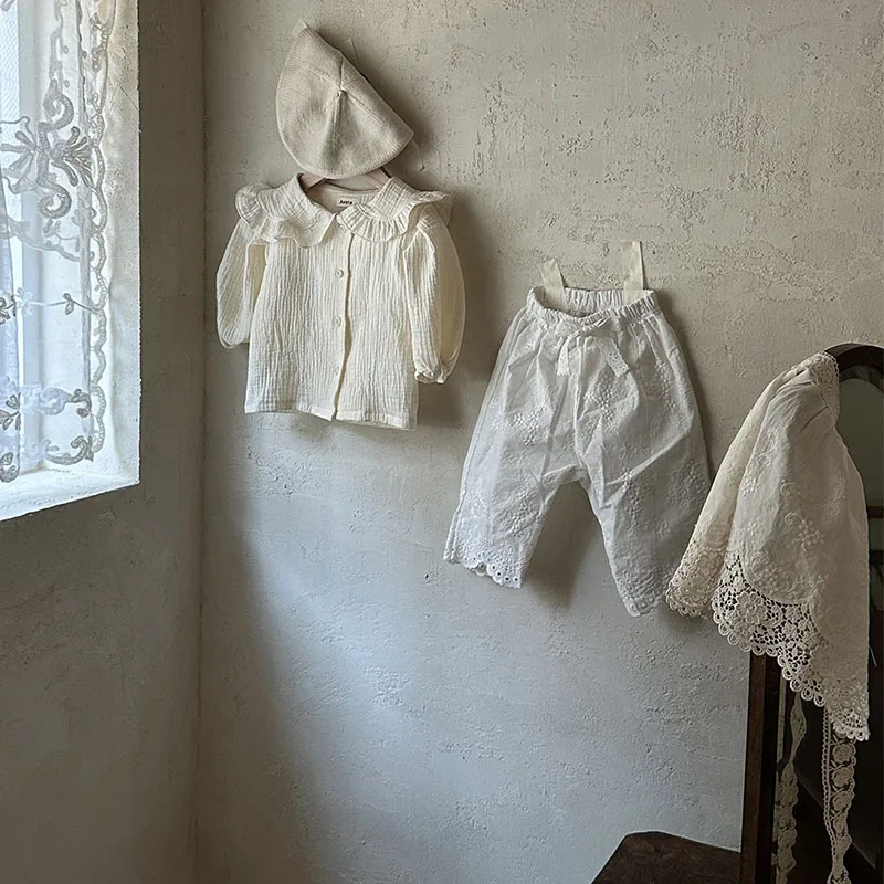 #Pantalones de bebé #Moda de verano #Bordado de encaje #Decoración de cinta #Pantalones largos #Patrón lindo #Moda para niña