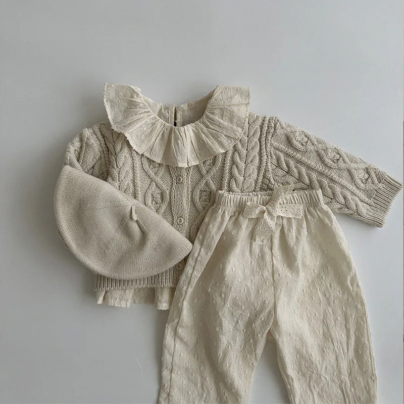 Presentamos pantalones largos para bebé que te harán sentir la brisa del verano. Su delicado bordado de encaje y sus adorables lazos crean un ambiente elegante. Su suave tela es agradable al tacto, ideal para el día a día o para salir. El estampado floral realza la elegancia y hace que tu pequeña luzca adorable. Su diseño sencillo facilita la combinación con diversas blusas, convirtiéndolo en el conjunto perfecto para una niña con estilo.