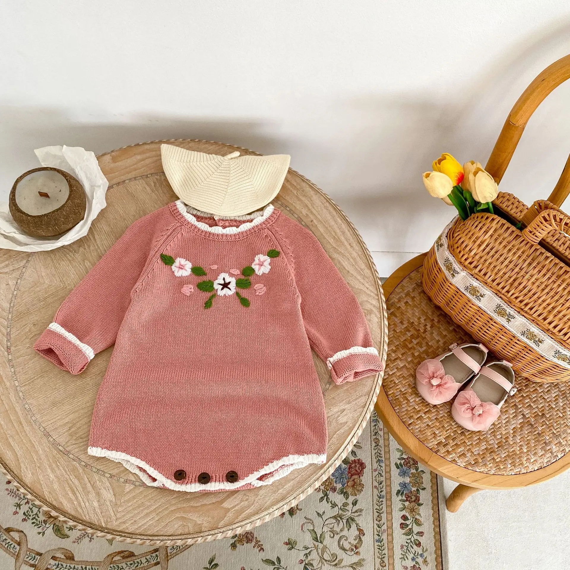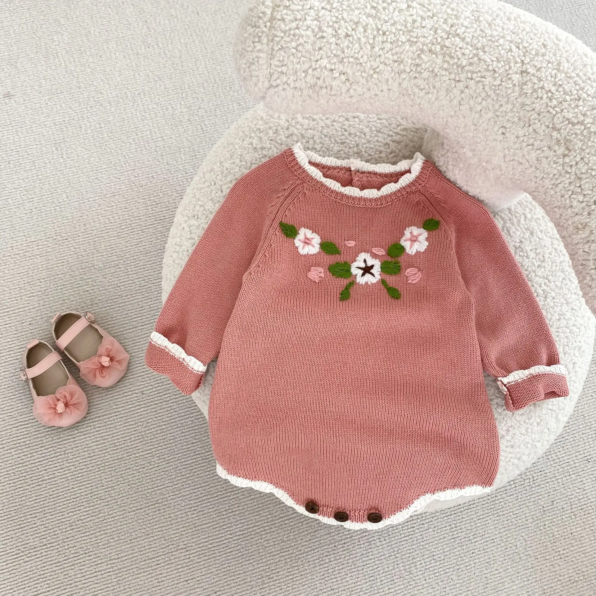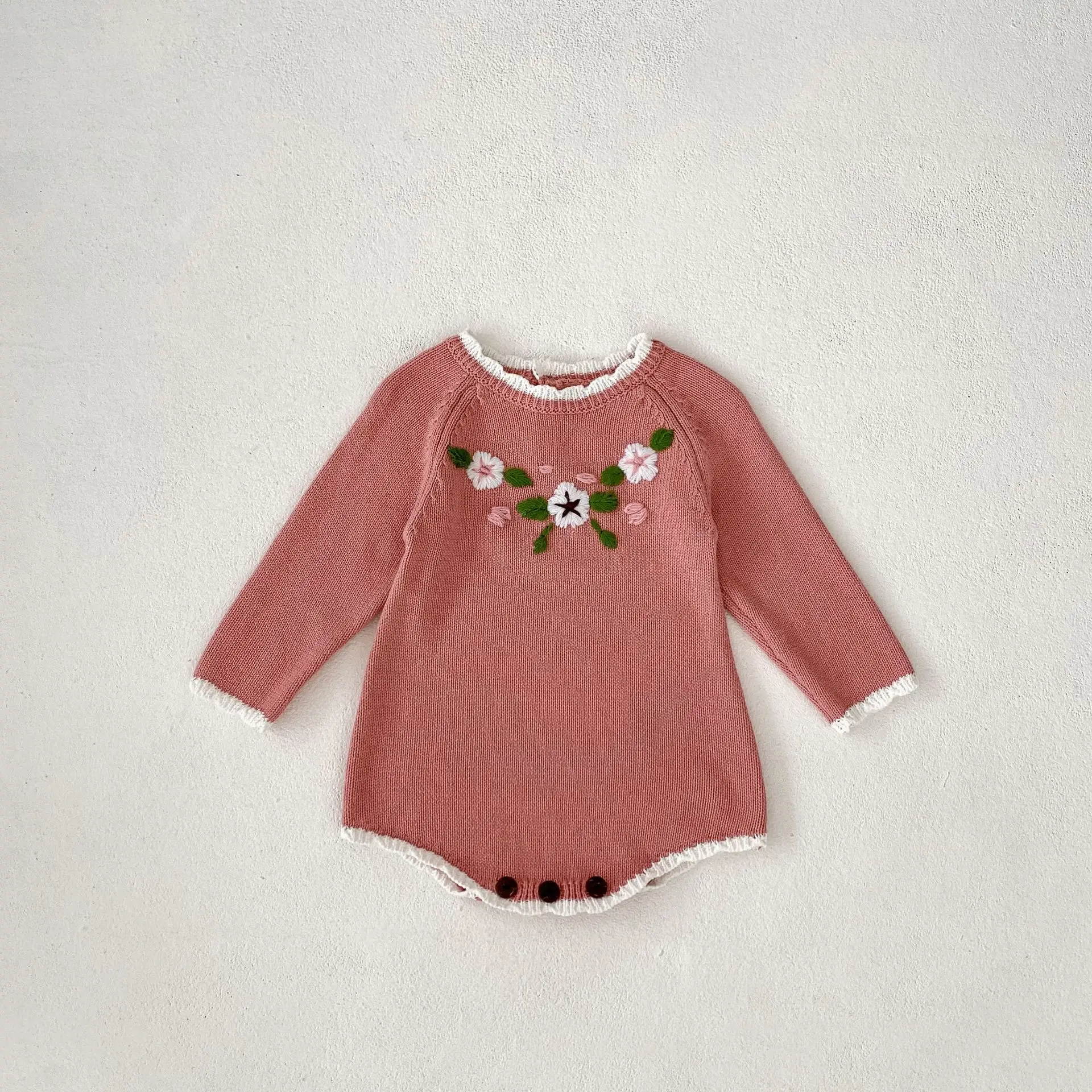 #ropa de bebé #peleles #body de punto #bordado floral #rosa #moda de otoño #ropa casual para bebé