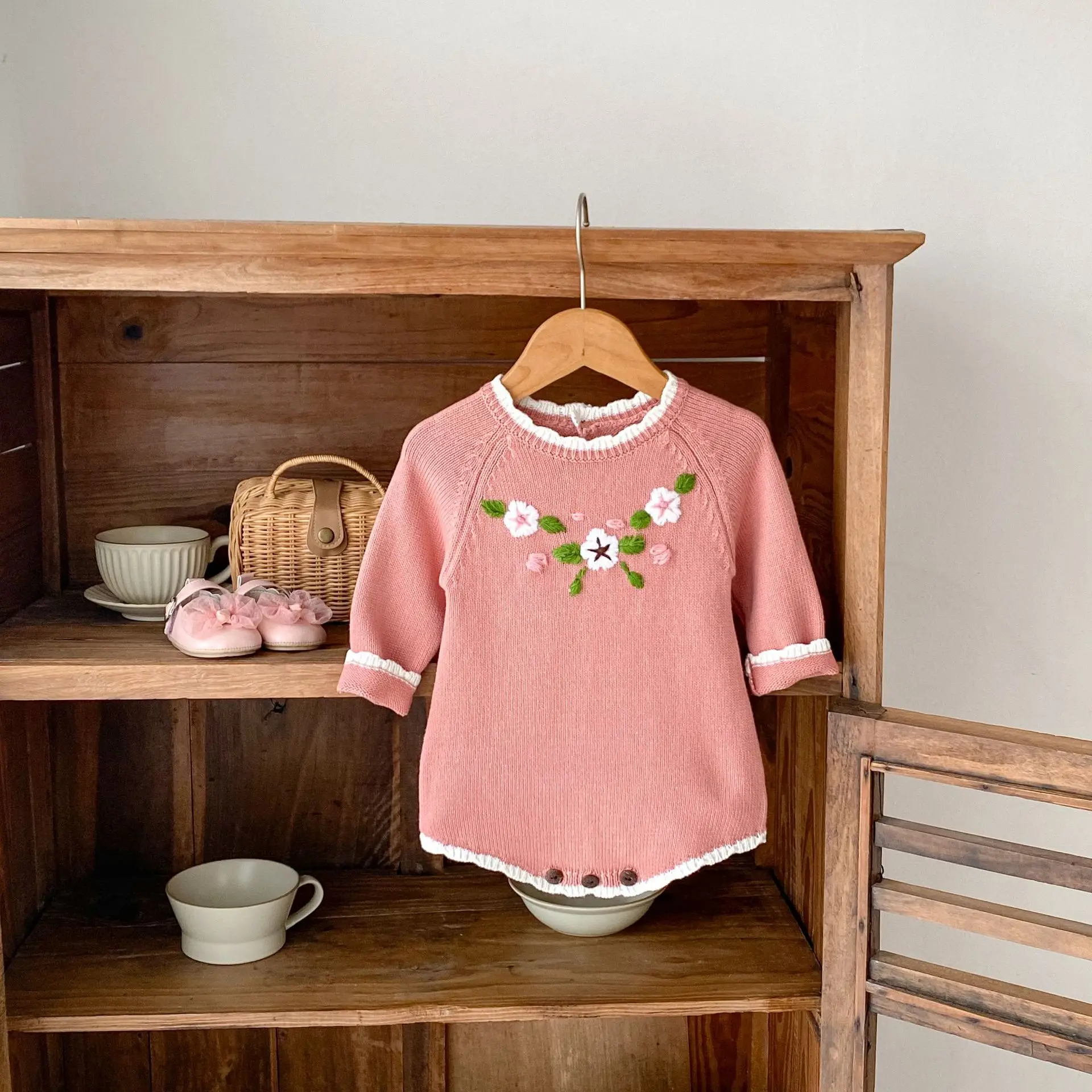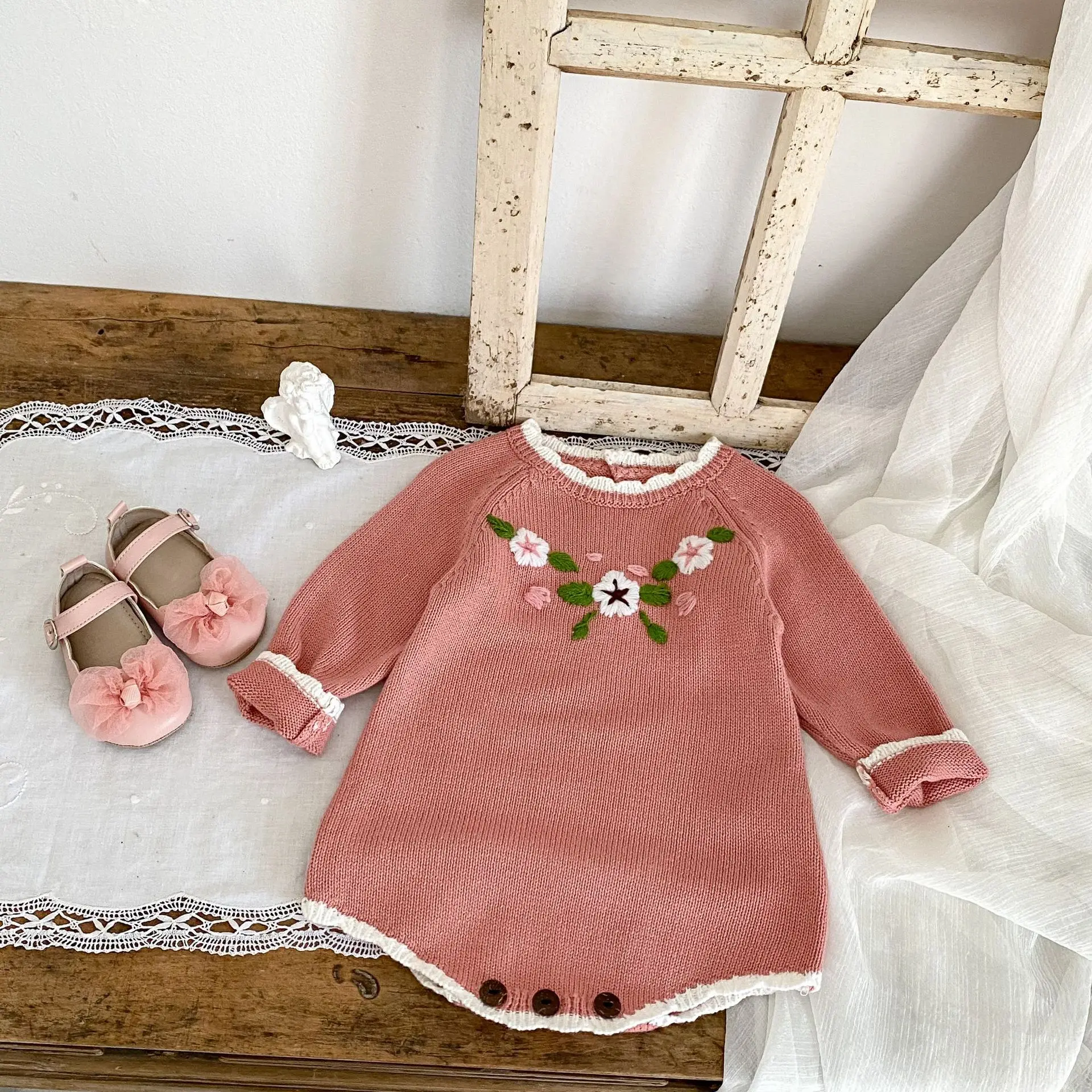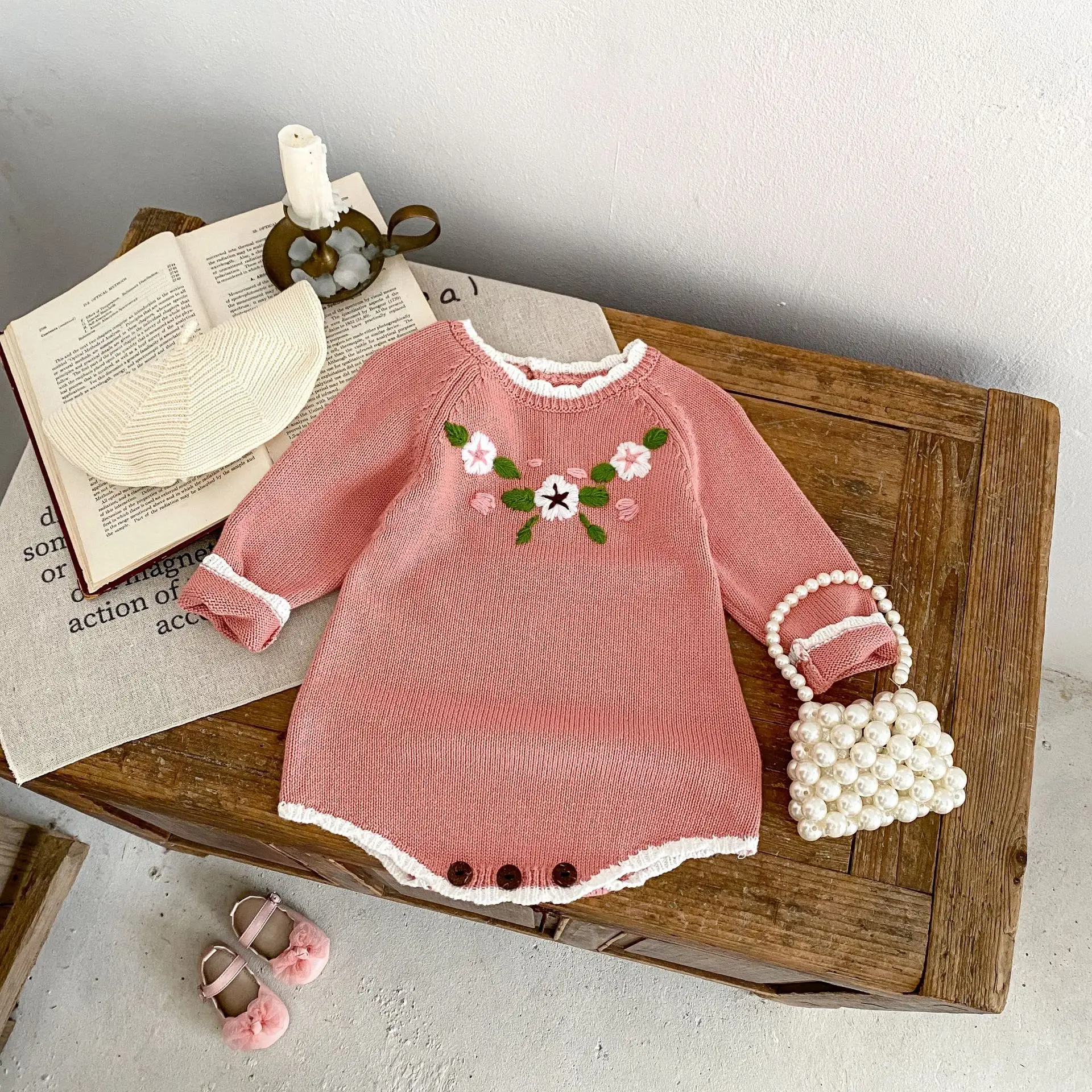 #ropa de bebé #peleles #body de punto #bordado floral #rosa #moda de otoño #ropa casual para bebé