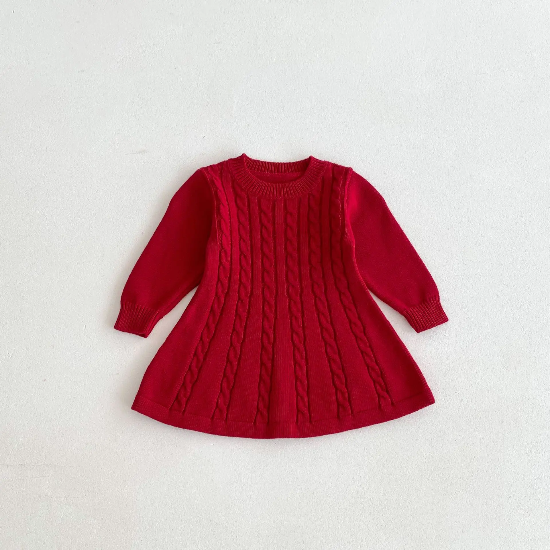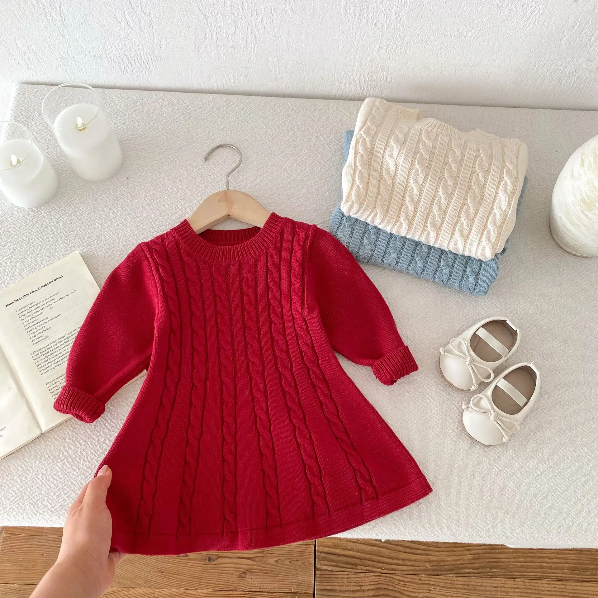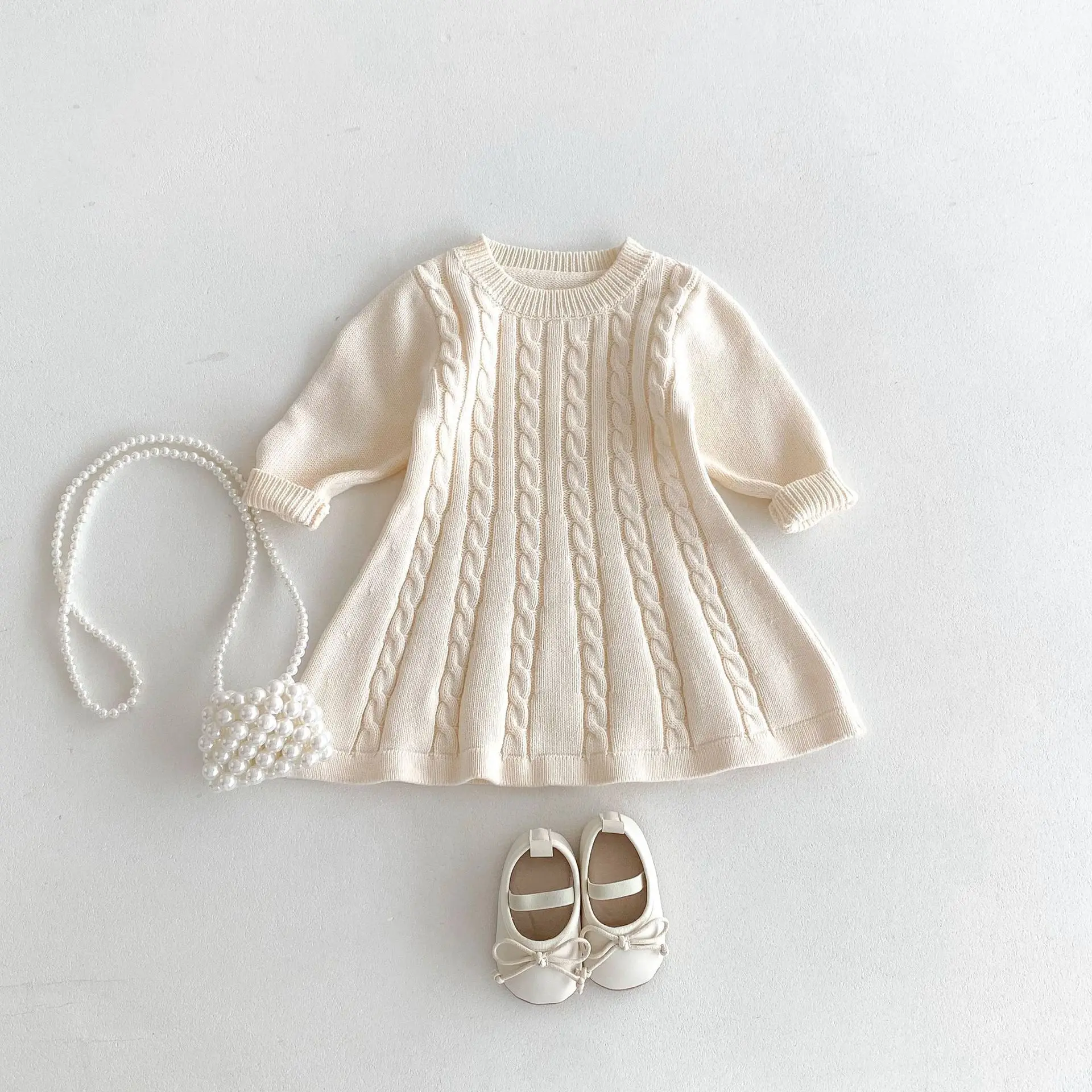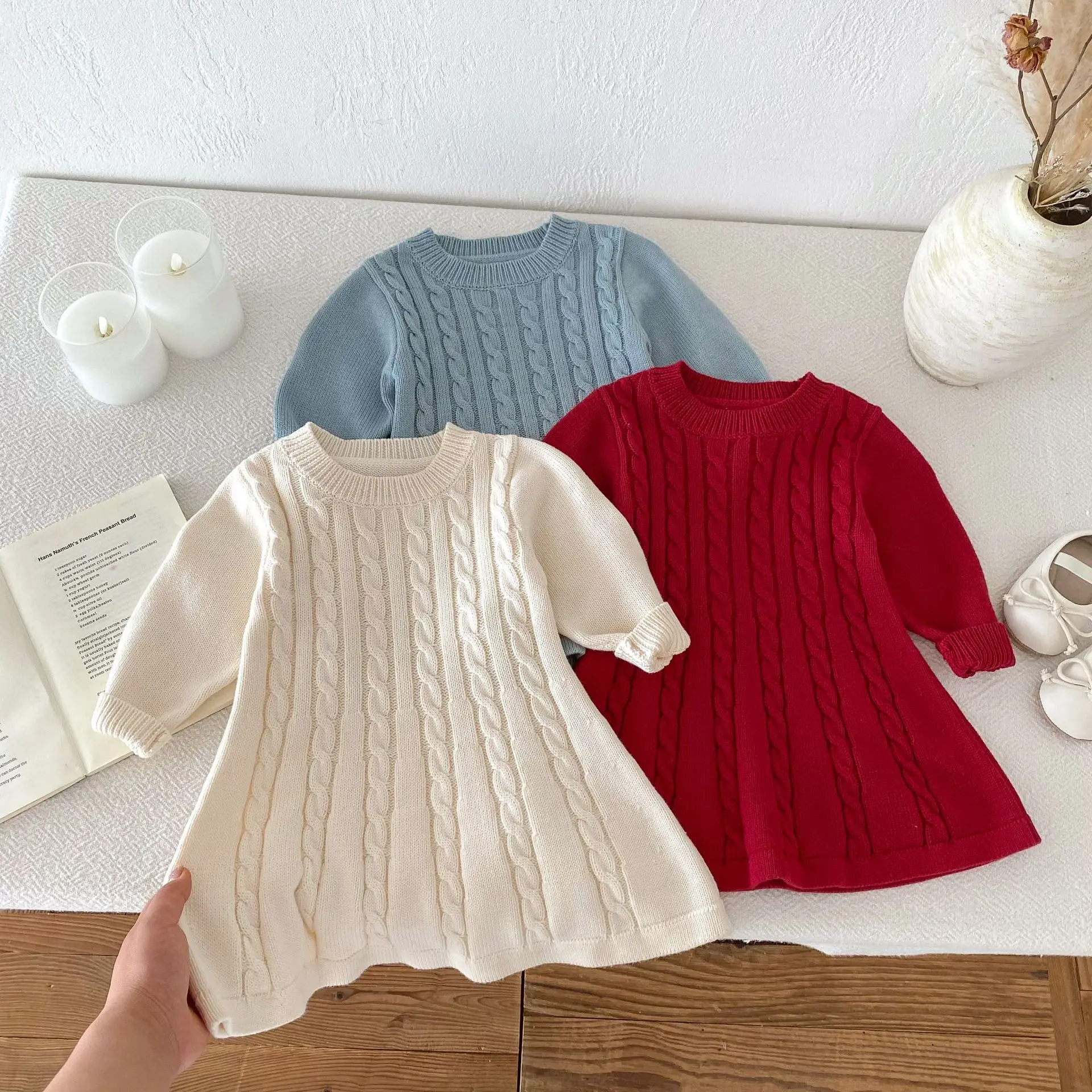 Vestido enterizo infantil de punto Aran, corte A, manga larga, 3 colores [mh0006827]