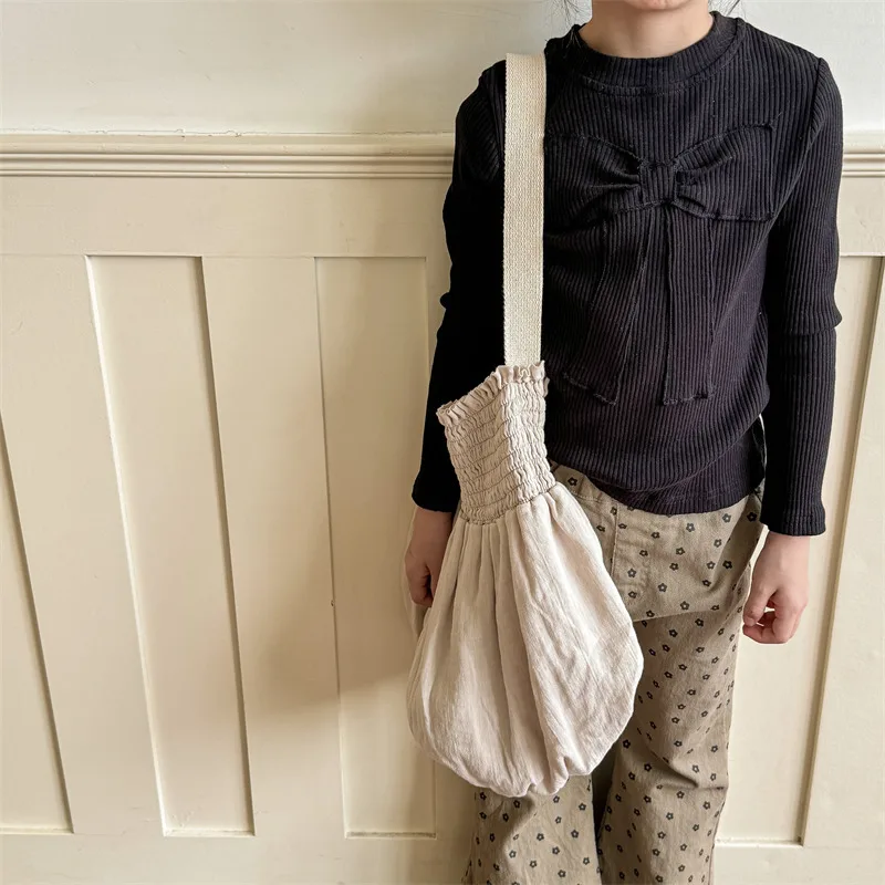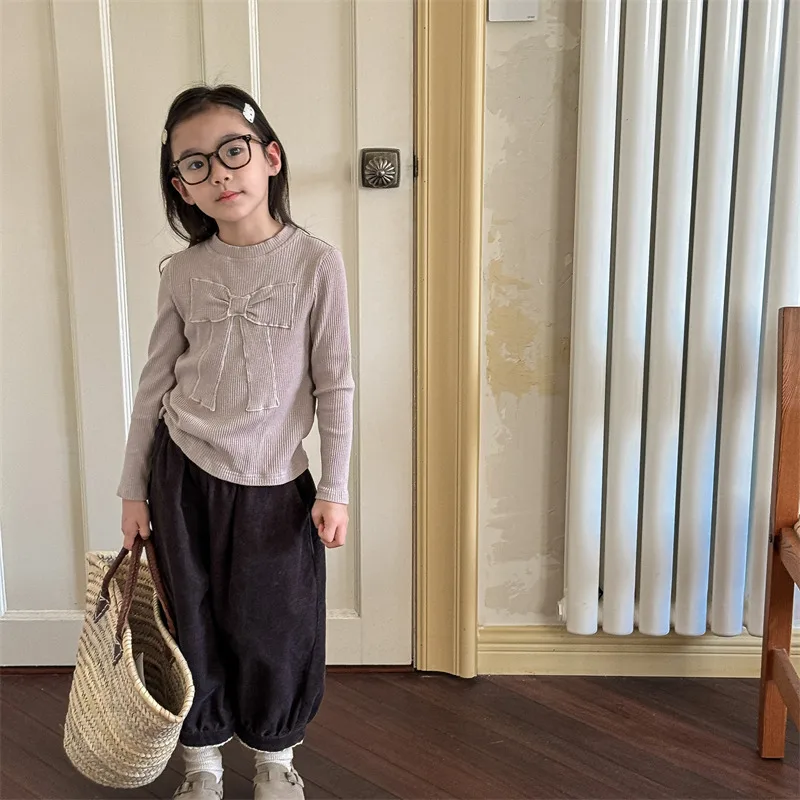 Una camiseta infantil de manga larga, confeccionada y con un bordado de cinta. Disponible en tres colores, su diseño sencillo pero elegante resulta muy atractivo. Esta camiseta, que incorpora las tendencias coreanas, combina con cualquier prenda inferior y es perfecta para el día a día del otoño. Su material suave y elástico proporciona un ajuste cómodo. Los detalles bordados son un sutil detalle que realzará aún más el estilo de tu hijo.