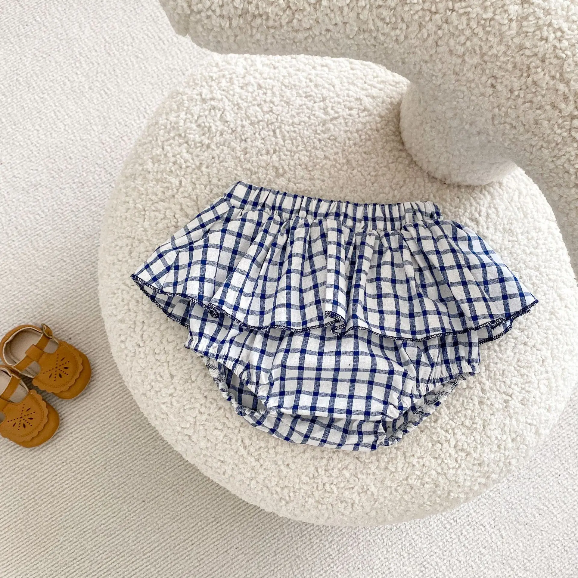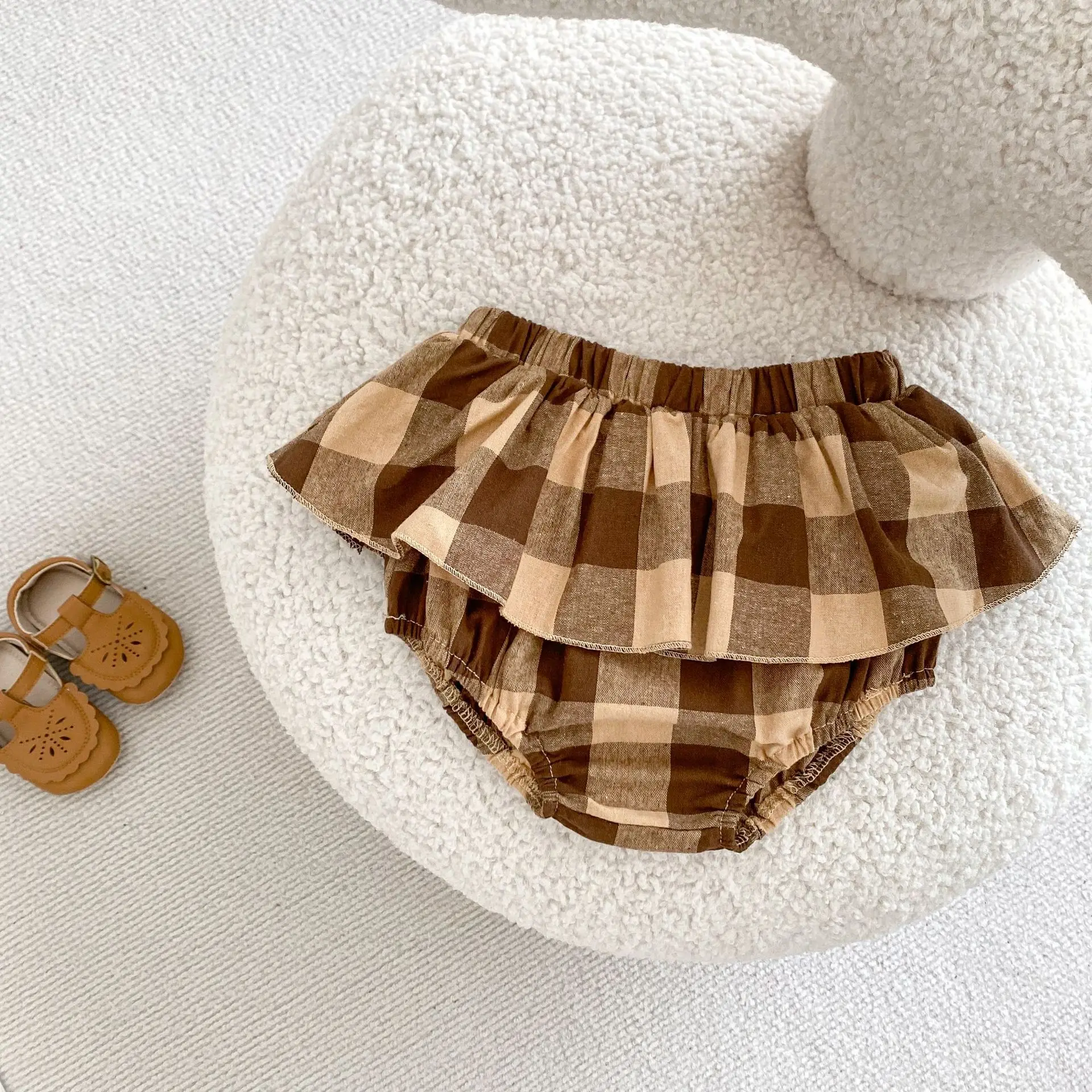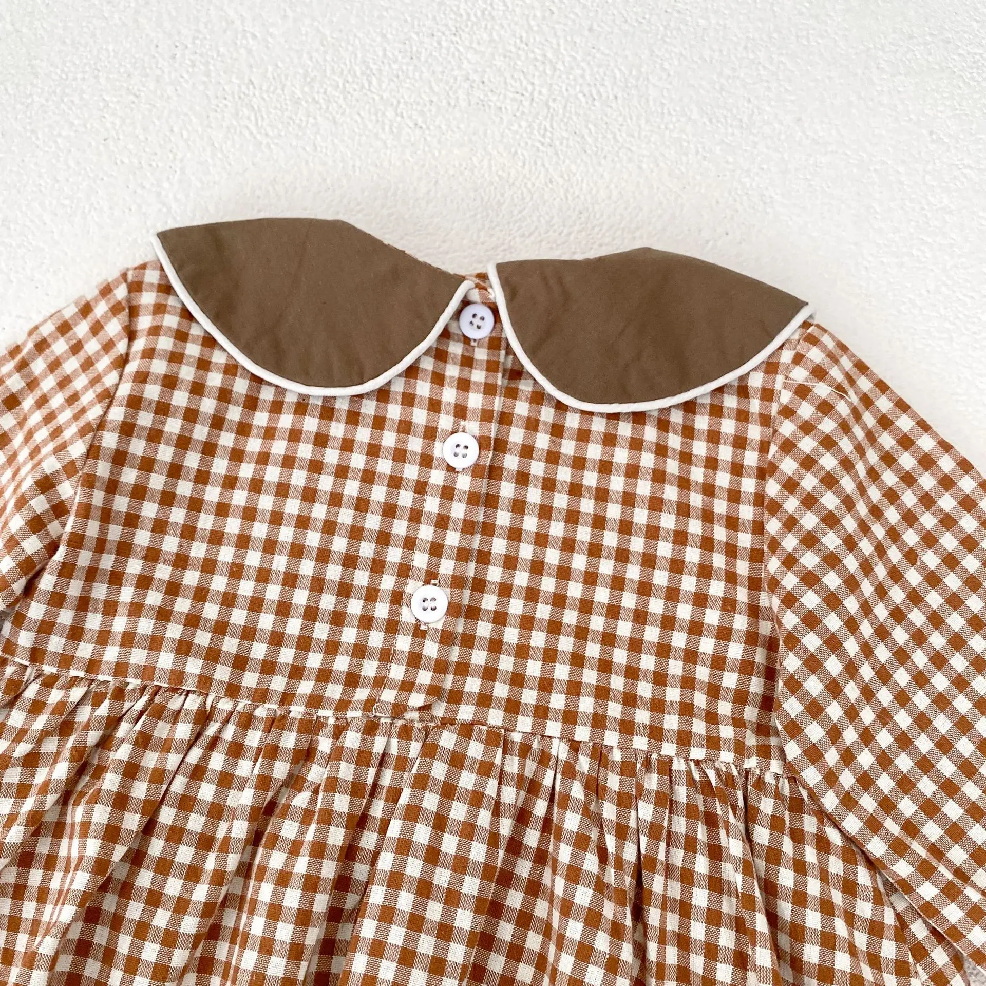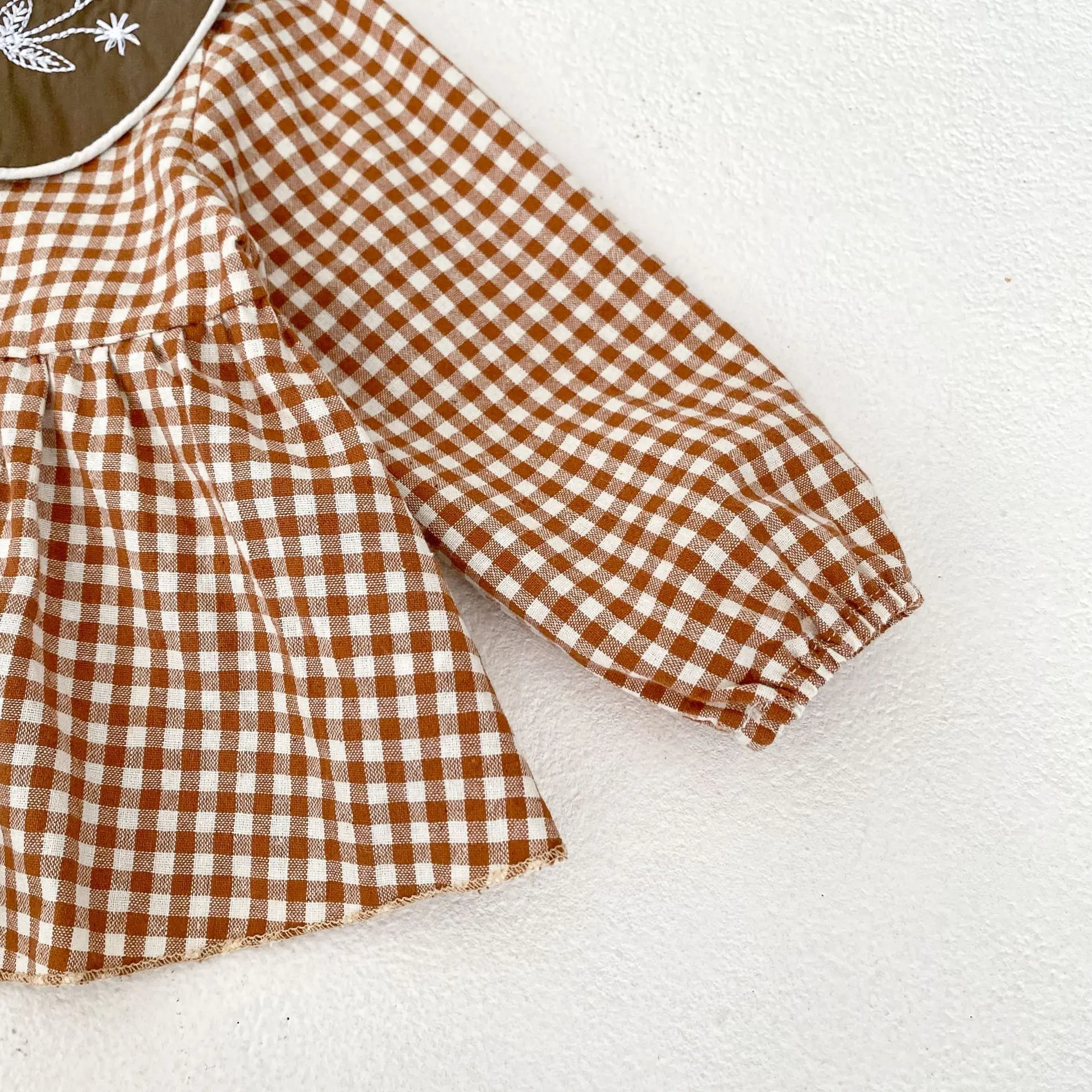 Conjunto de 2 piezas para bebé y niño, cuello bordado con flores, blusa tipo túnica de manga larga y falda con volantes, pantalones bombachos a cuadros en 4 colores