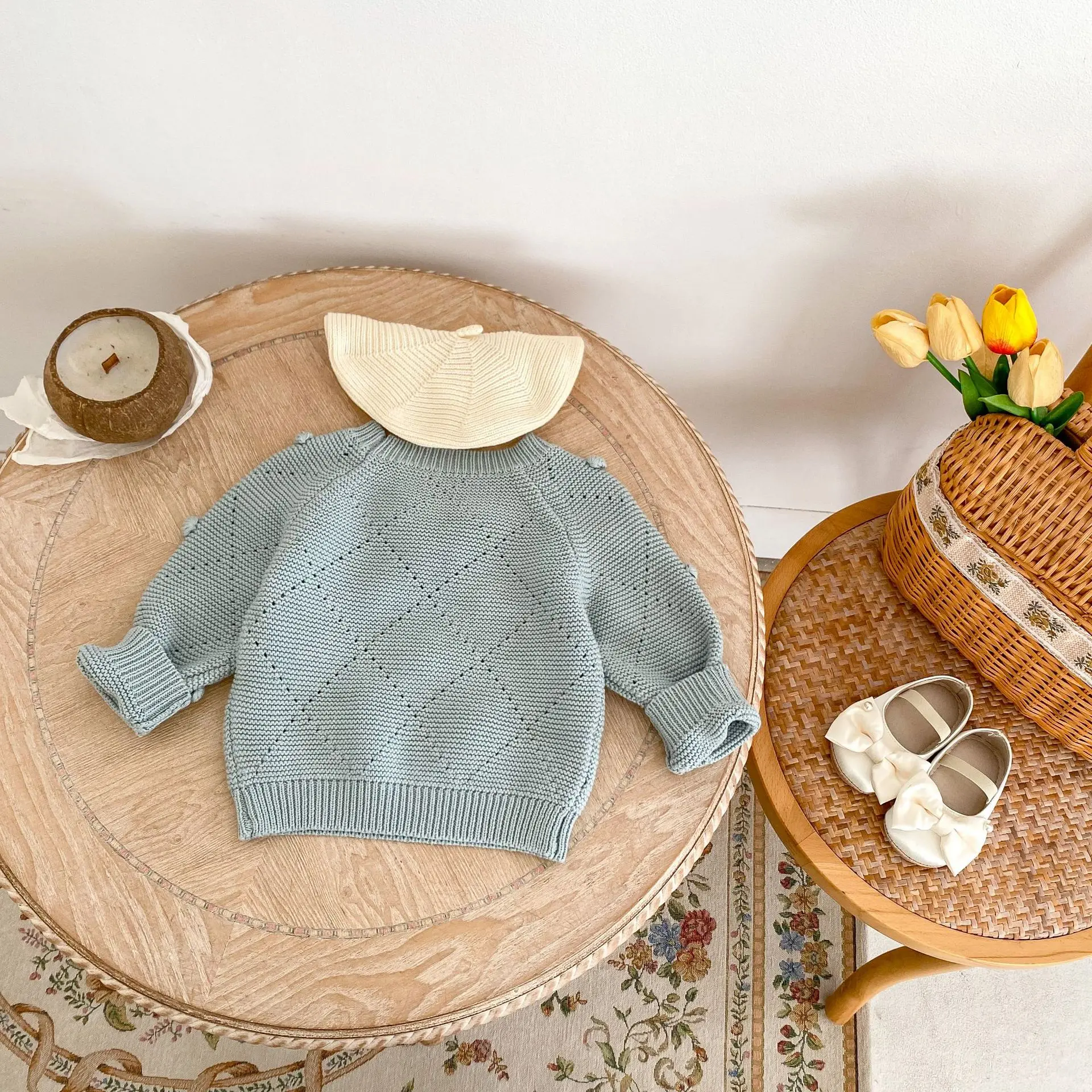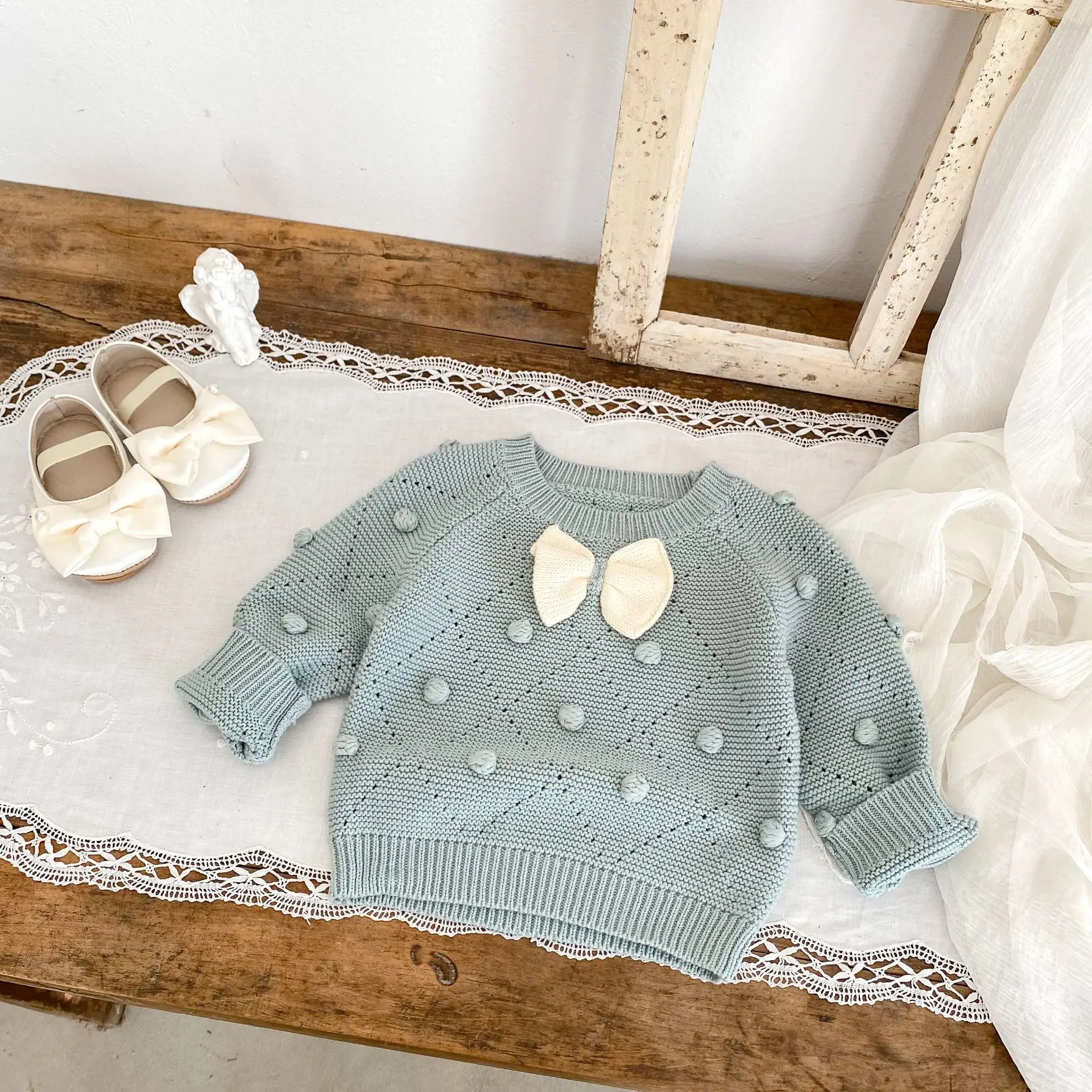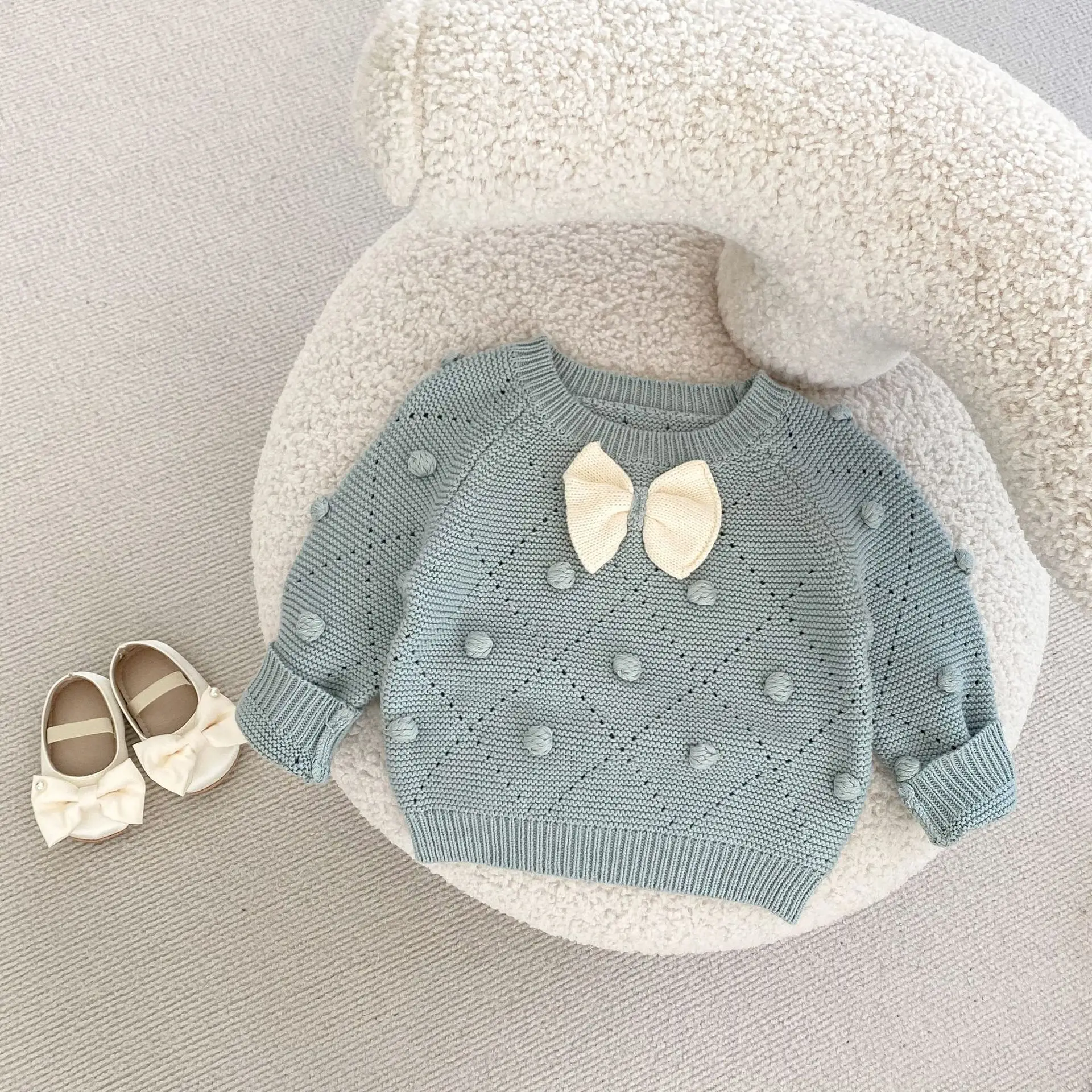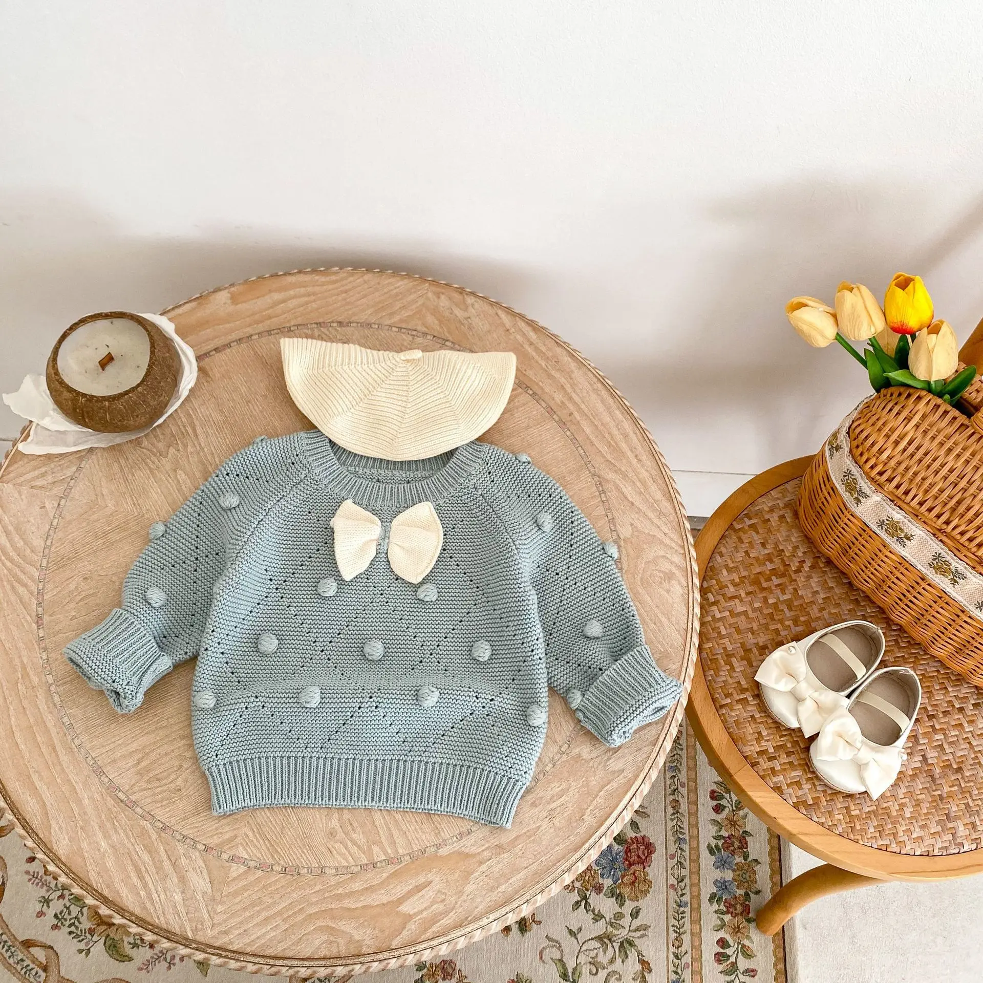 #ropa de bebé #suéter de punto #cinta #pompones #ropa infantil coreana #atuendo de otoño #estilo lindo #ropa de bebé