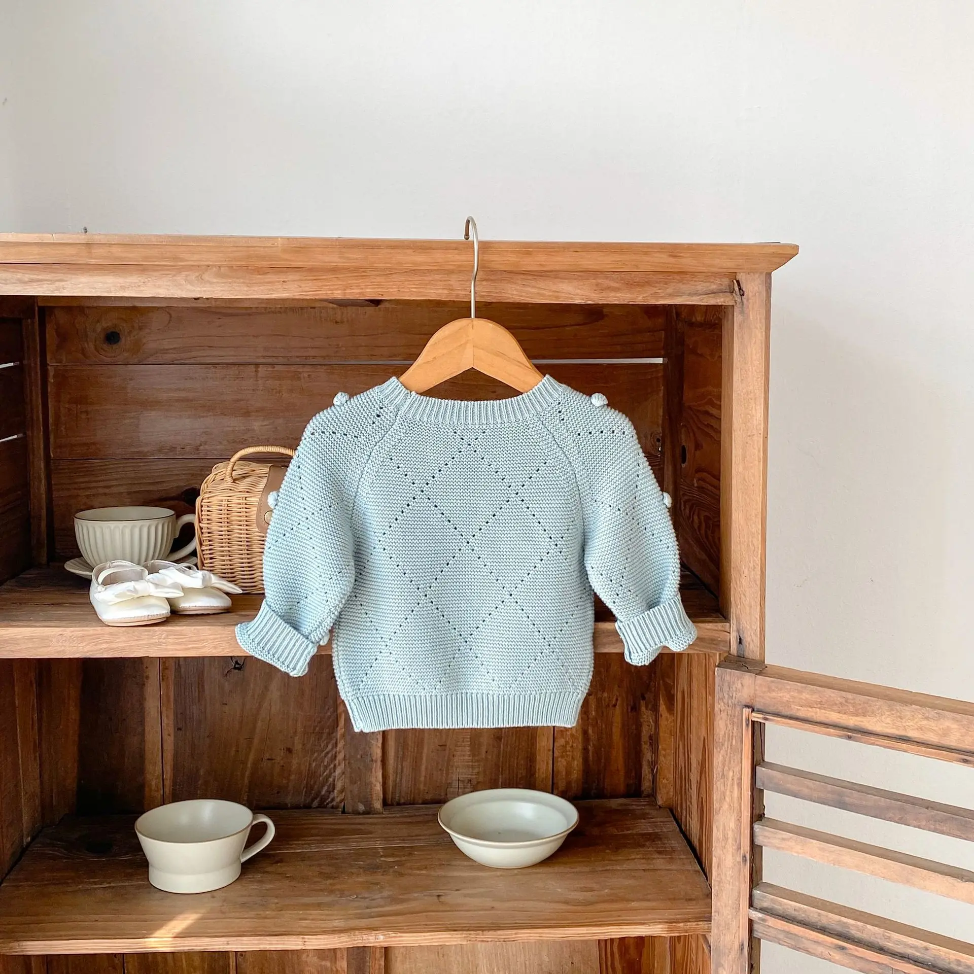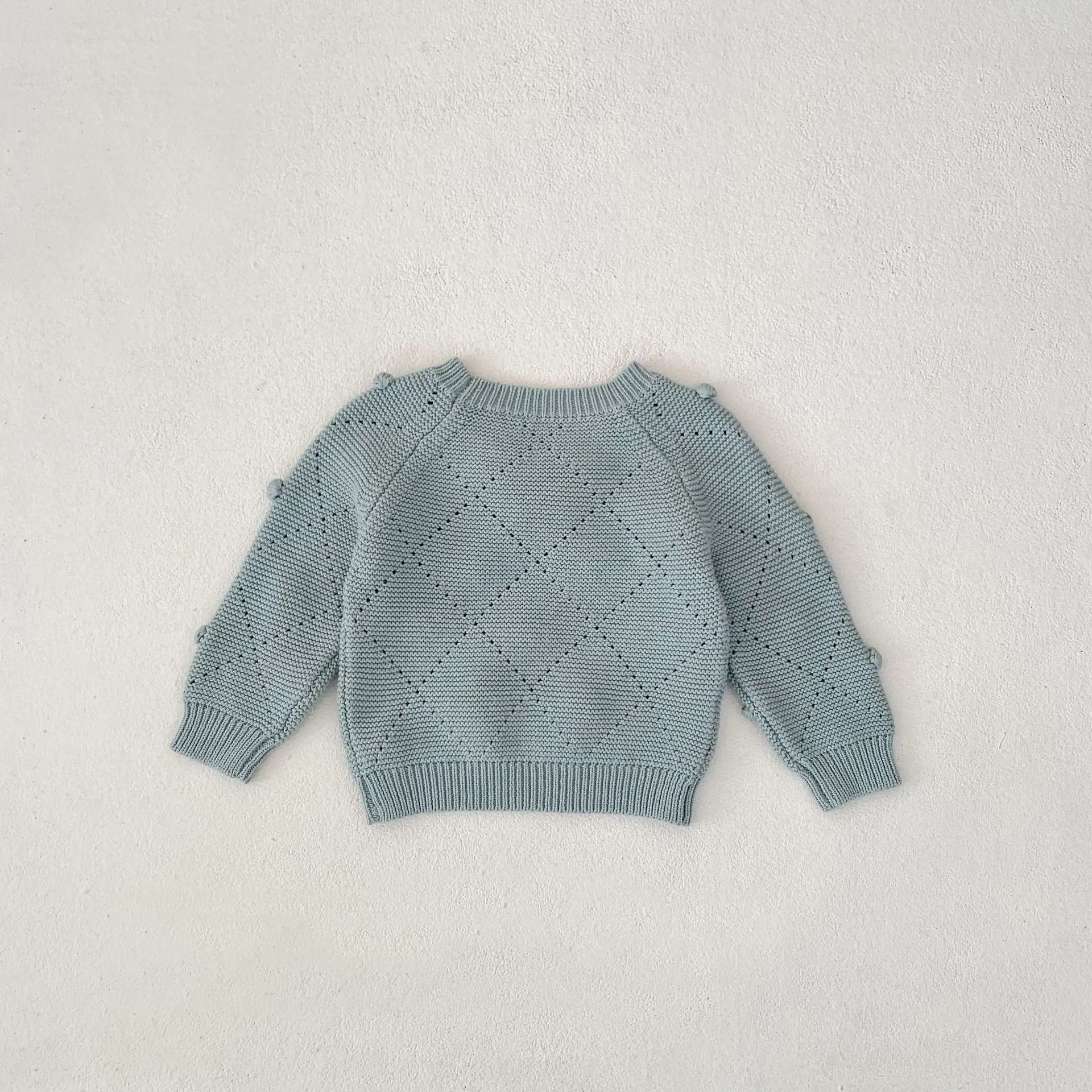 Suéter de punto con pompón y cinta para bebé y niño, color azul