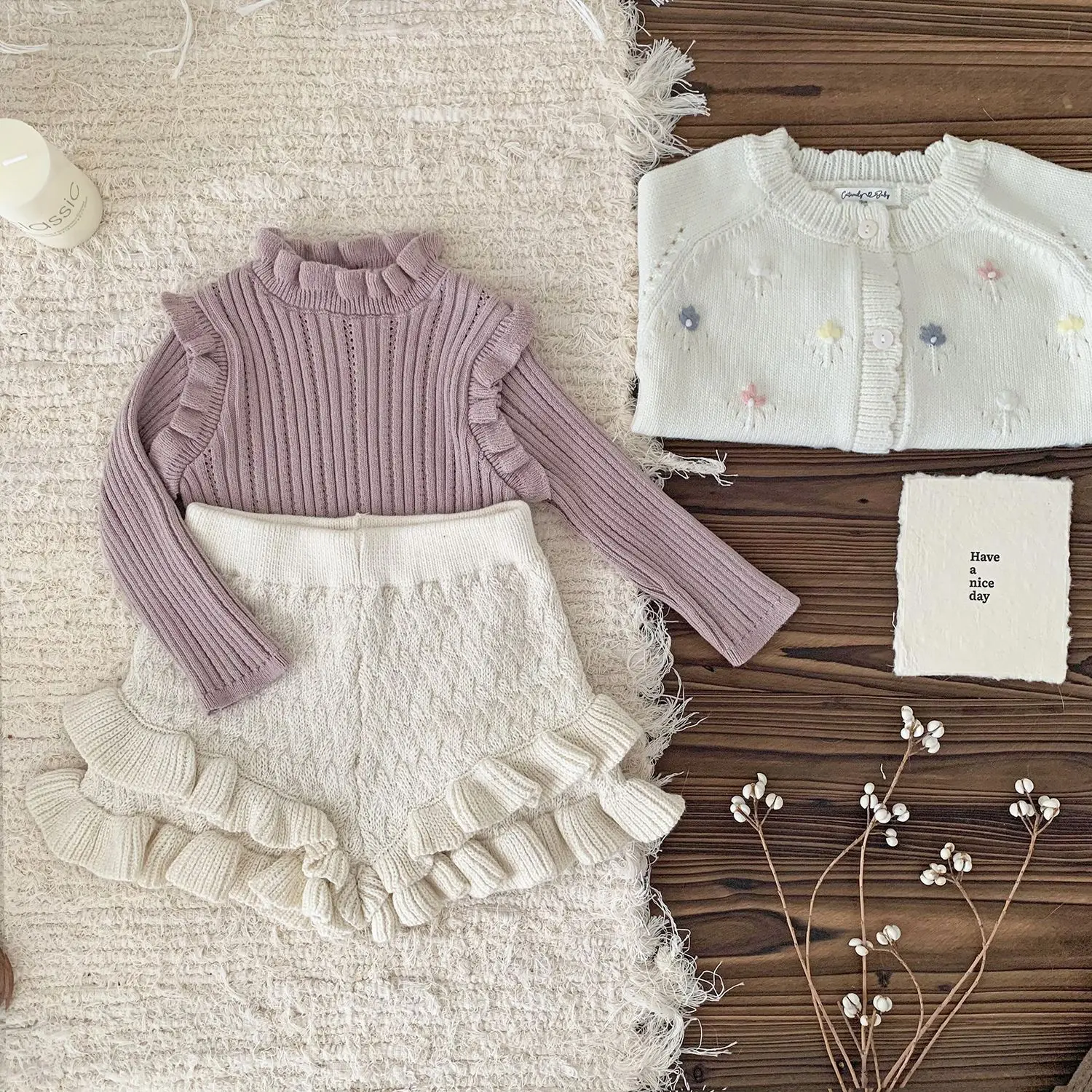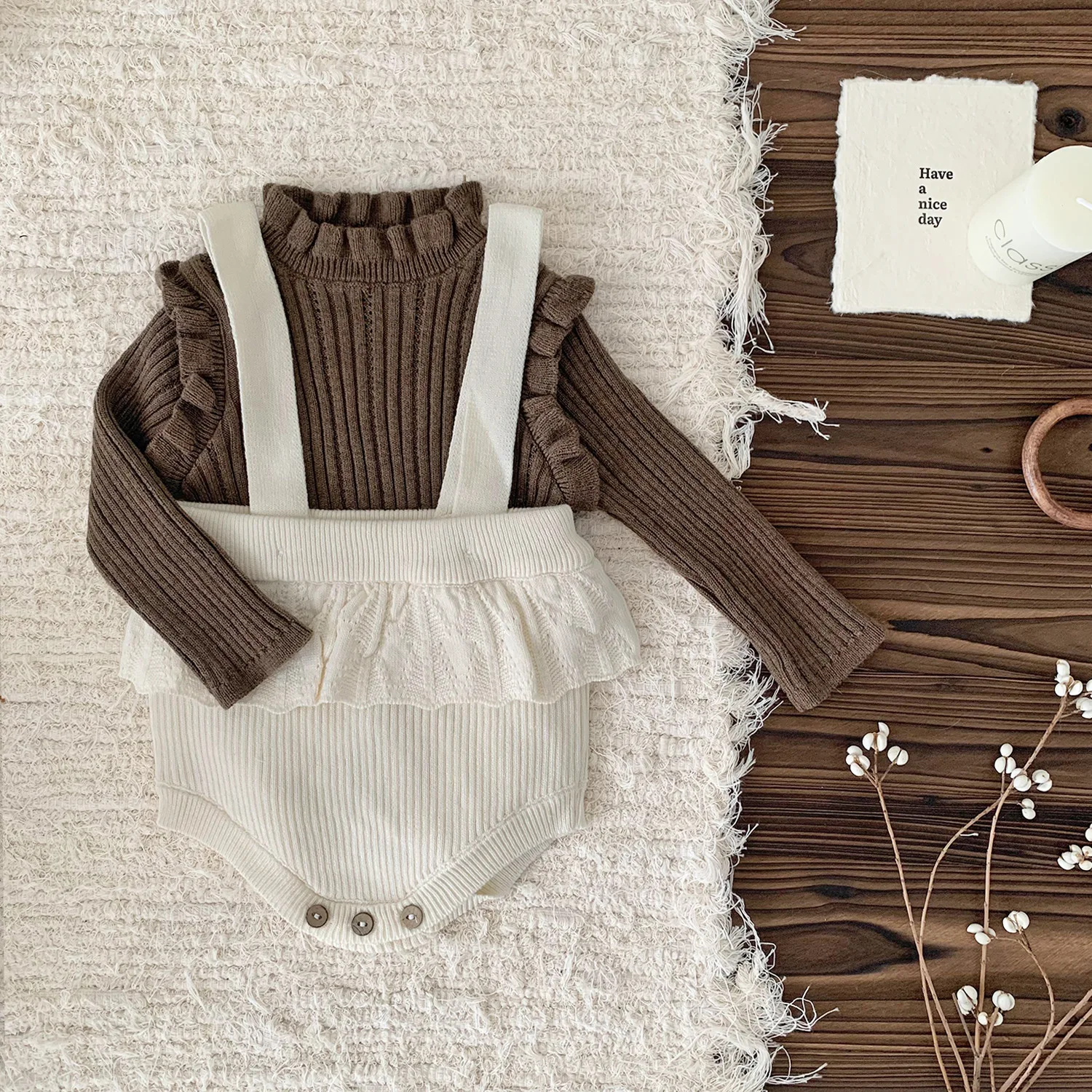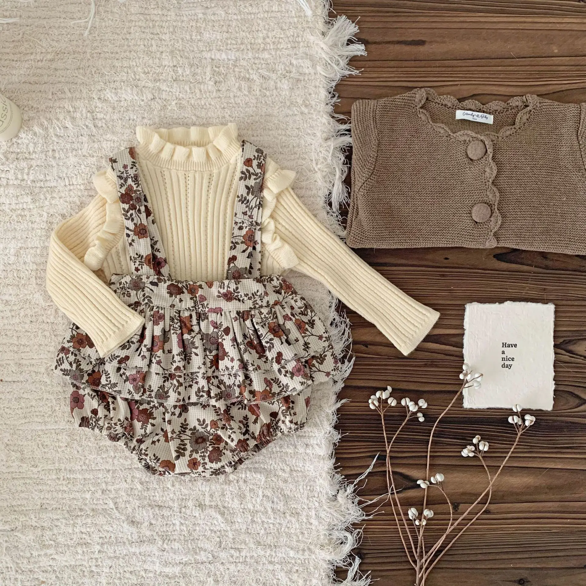 #Tops de bebé #Hombros con volantes #Top con cuello alto #Tejido, corte y costura #Ropa para niños #Moda coreana #De moda
