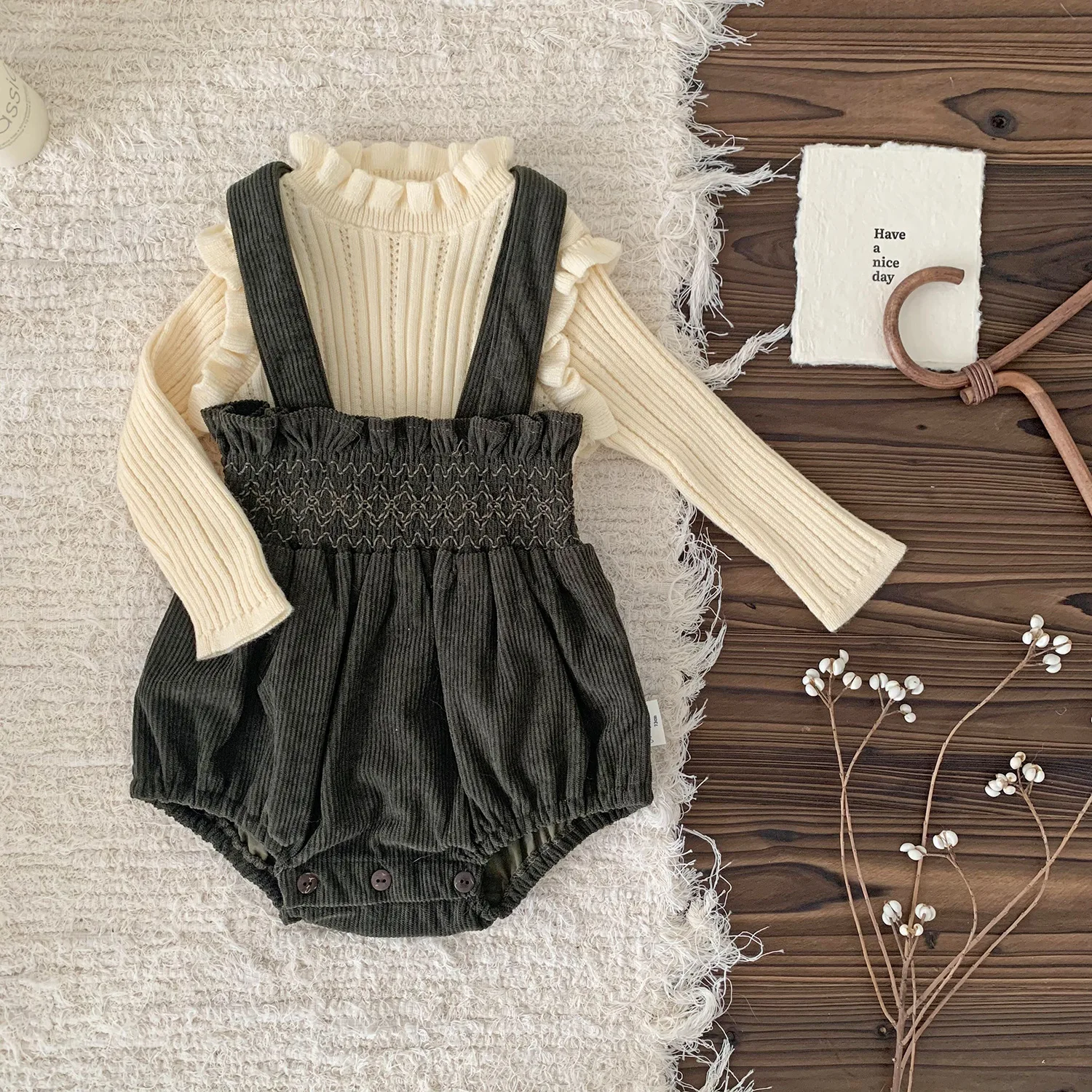 Con hombros fruncidos y cuello alto, esta blusa para bebé y niño es sencilla pero con detalles. El tejido de punto suave es delicado con la piel de tu hijo y cómodo de llevar. Los volantes en los hombros le dan un toque encantador, mientras que el cuello alto le da un aspecto elegante. Es elástica, permite un movimiento cómodo y tiene un ajuste perfecto. Disponible en tres colores, cada uno con un atractivo y elegante diseño coreano. Esta versátil blusa se puede usar en diversas situaciones, desde el día a día hasta salidas informales.