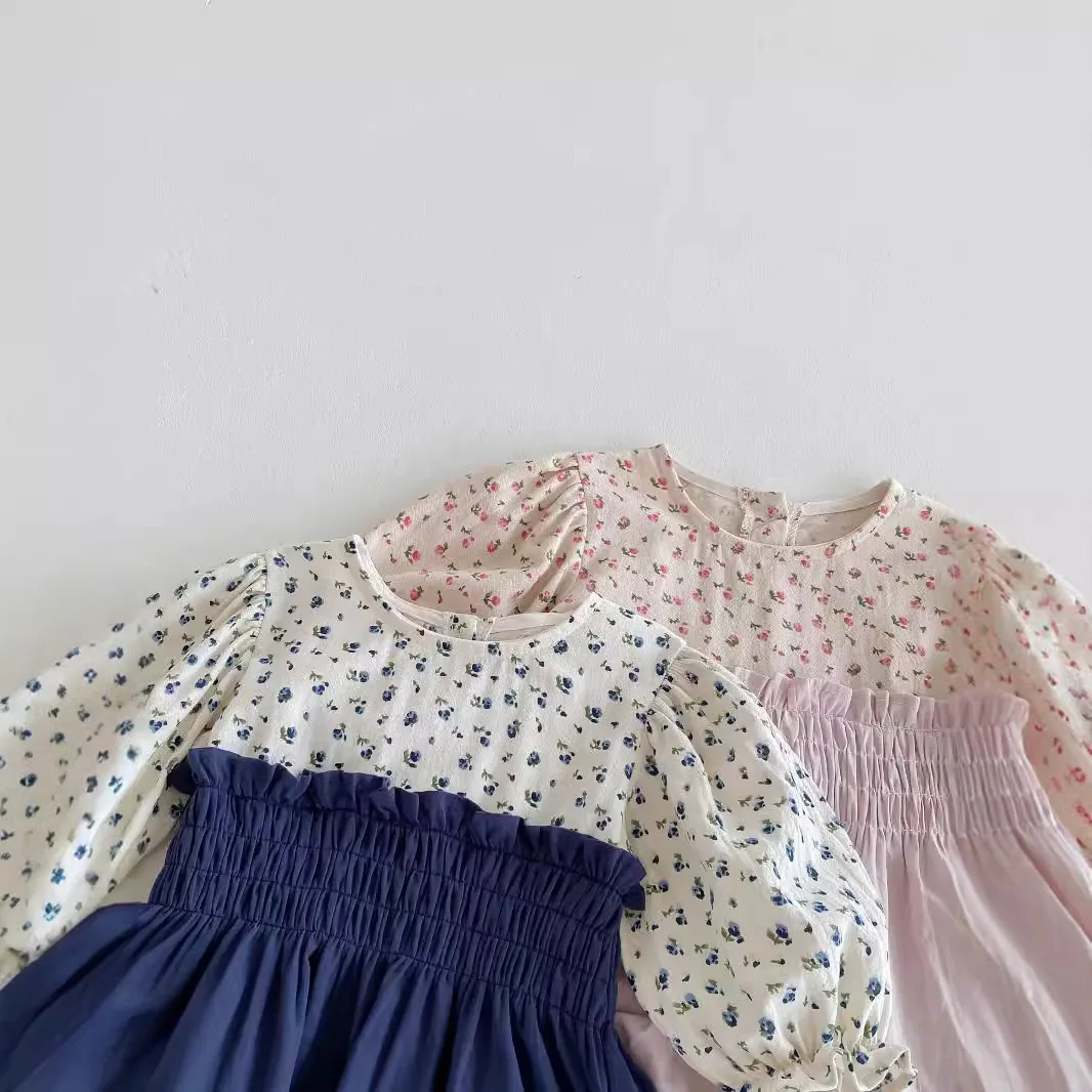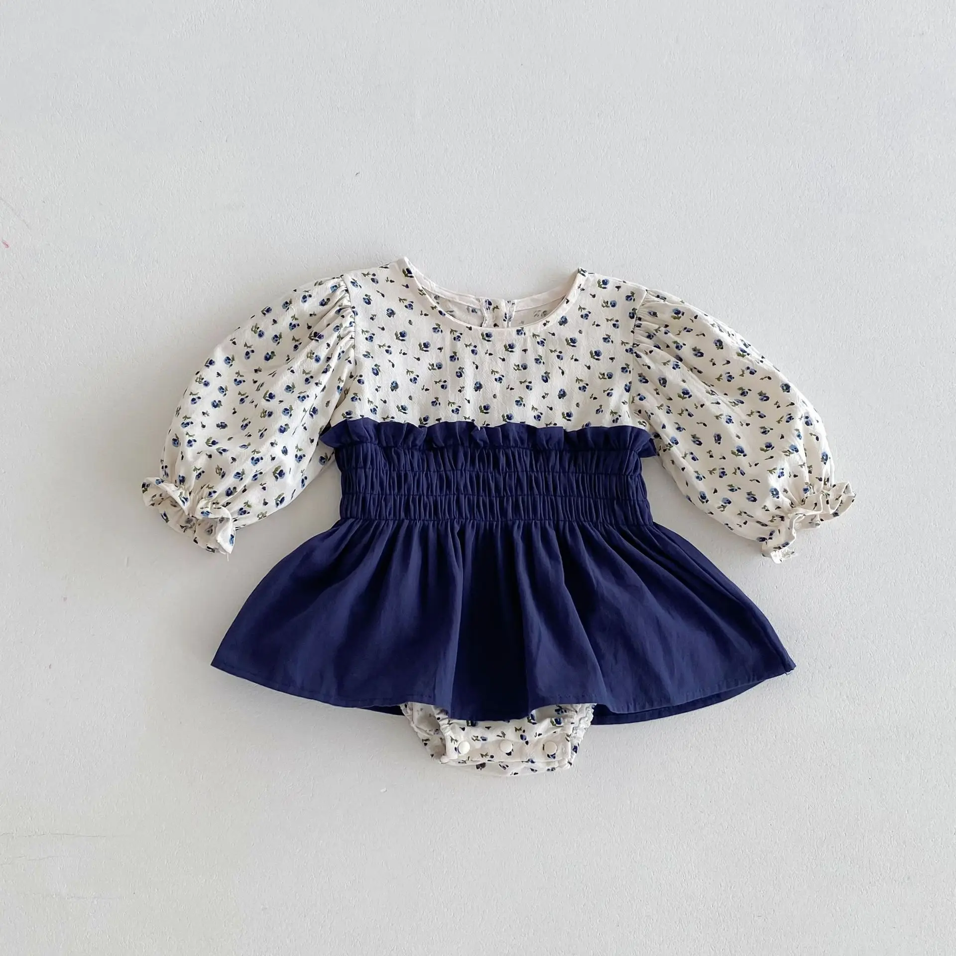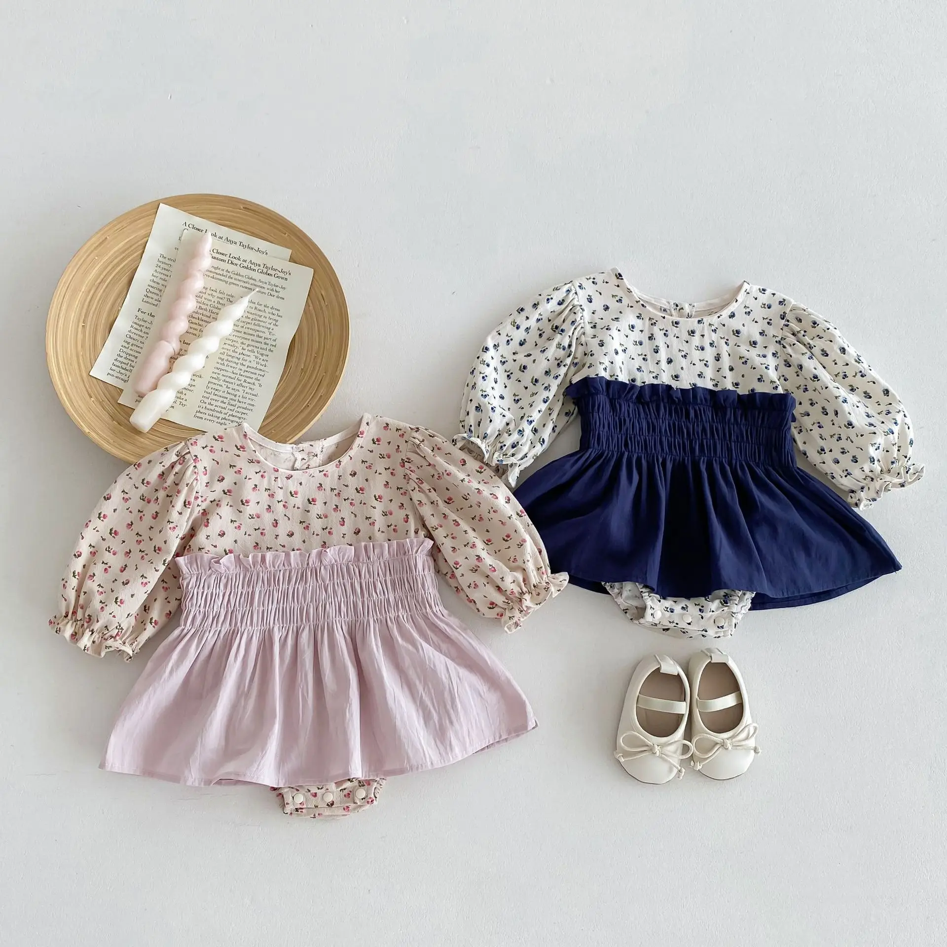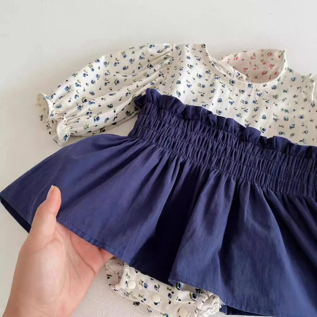 Mono de bebé con estampado floral, falda fruncida y manga larga, 2 colores [mh0007322]