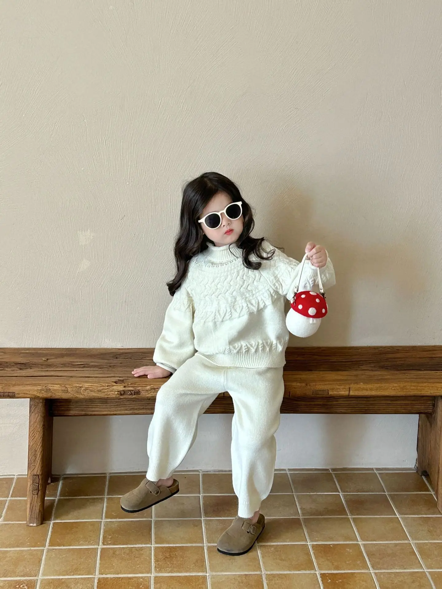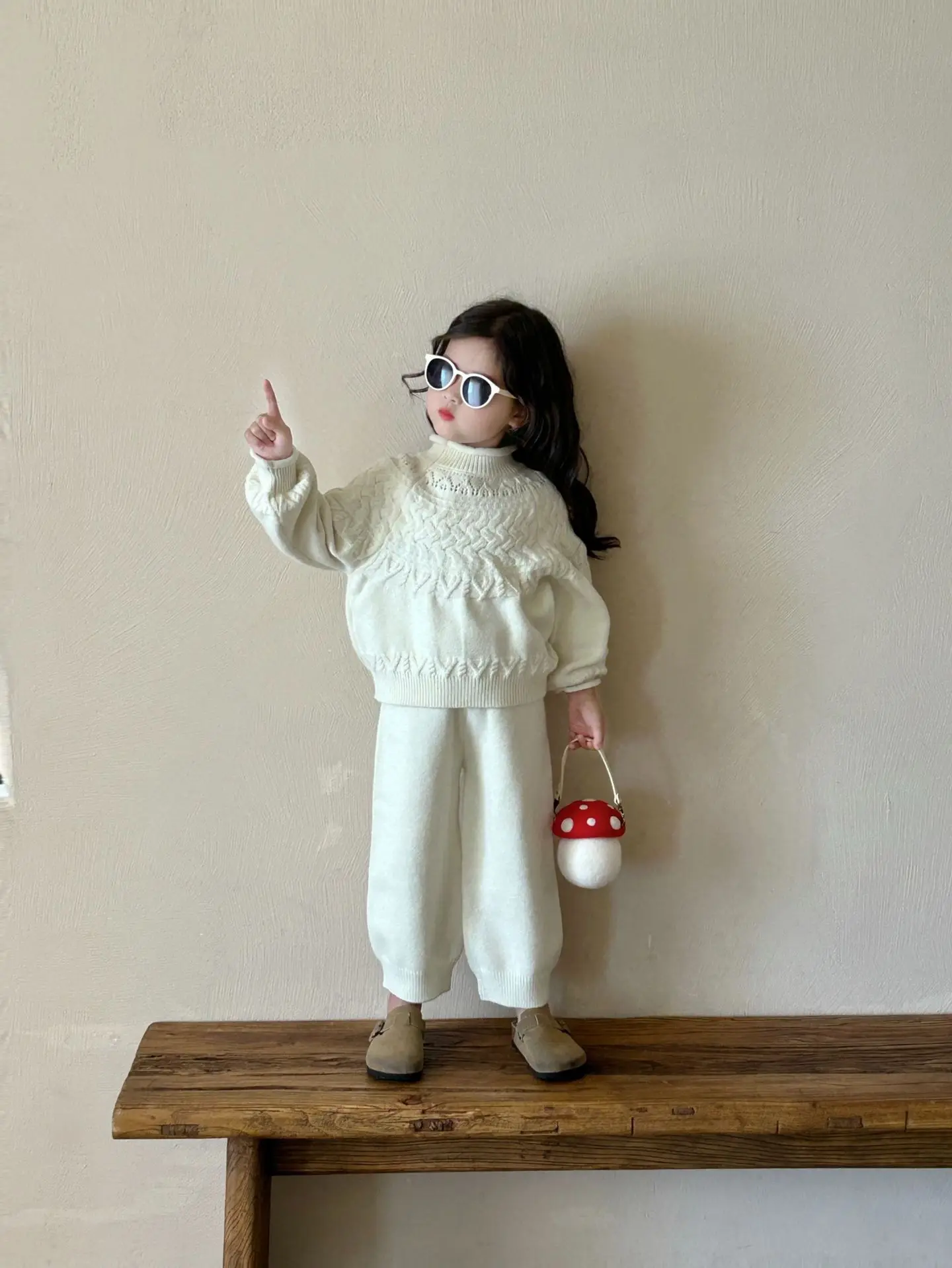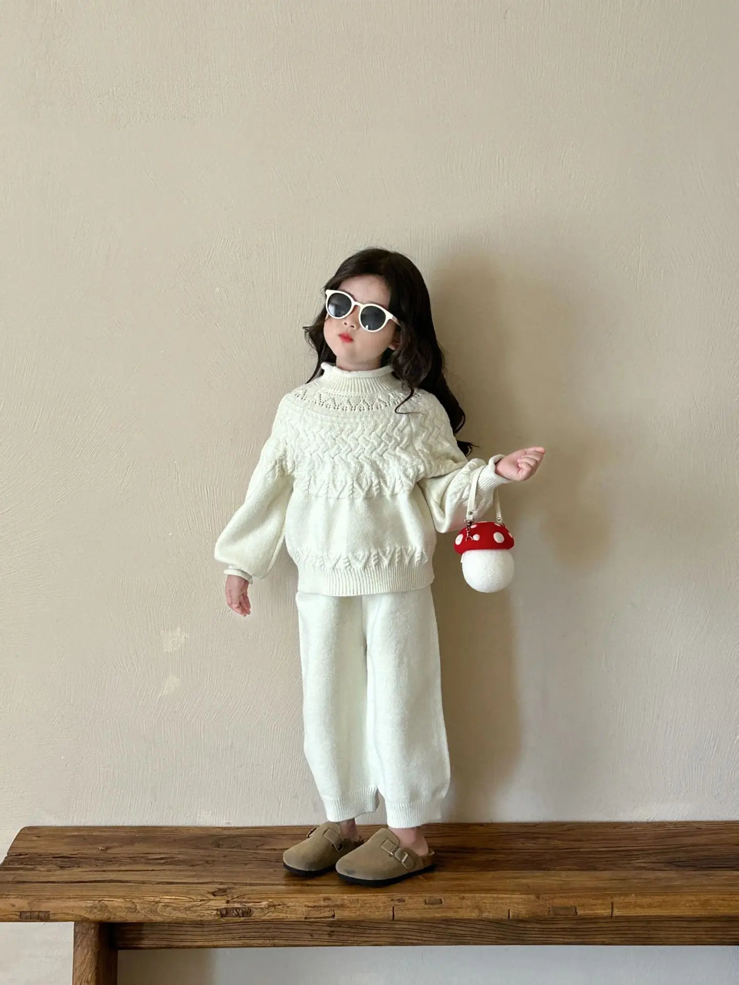 Conjunto infantil de 2 piezas: jersey de punto con cuello de botella y pantalón largo de punto, beige [mh0007339]