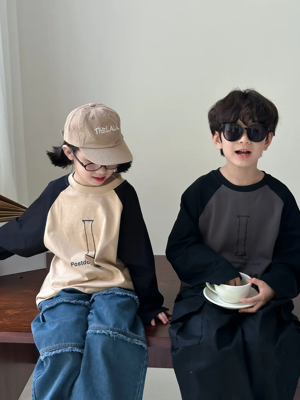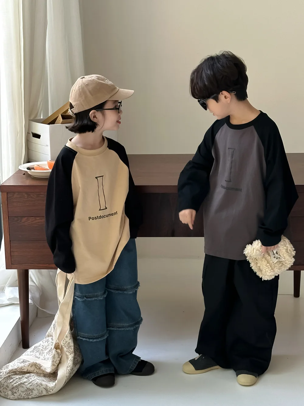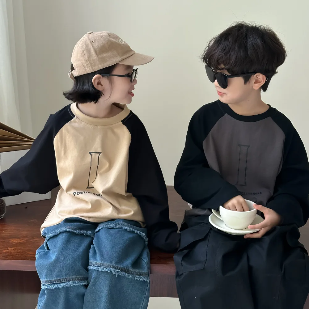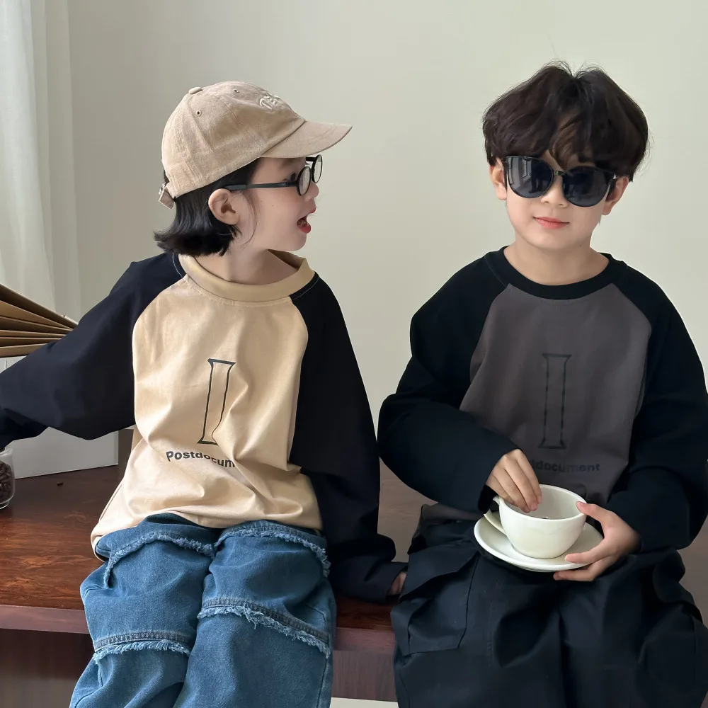 #Tops para niños #Mangas raglán #Patchwork #Estilo casual #Moda de otoño #Ropa coreana para niños
