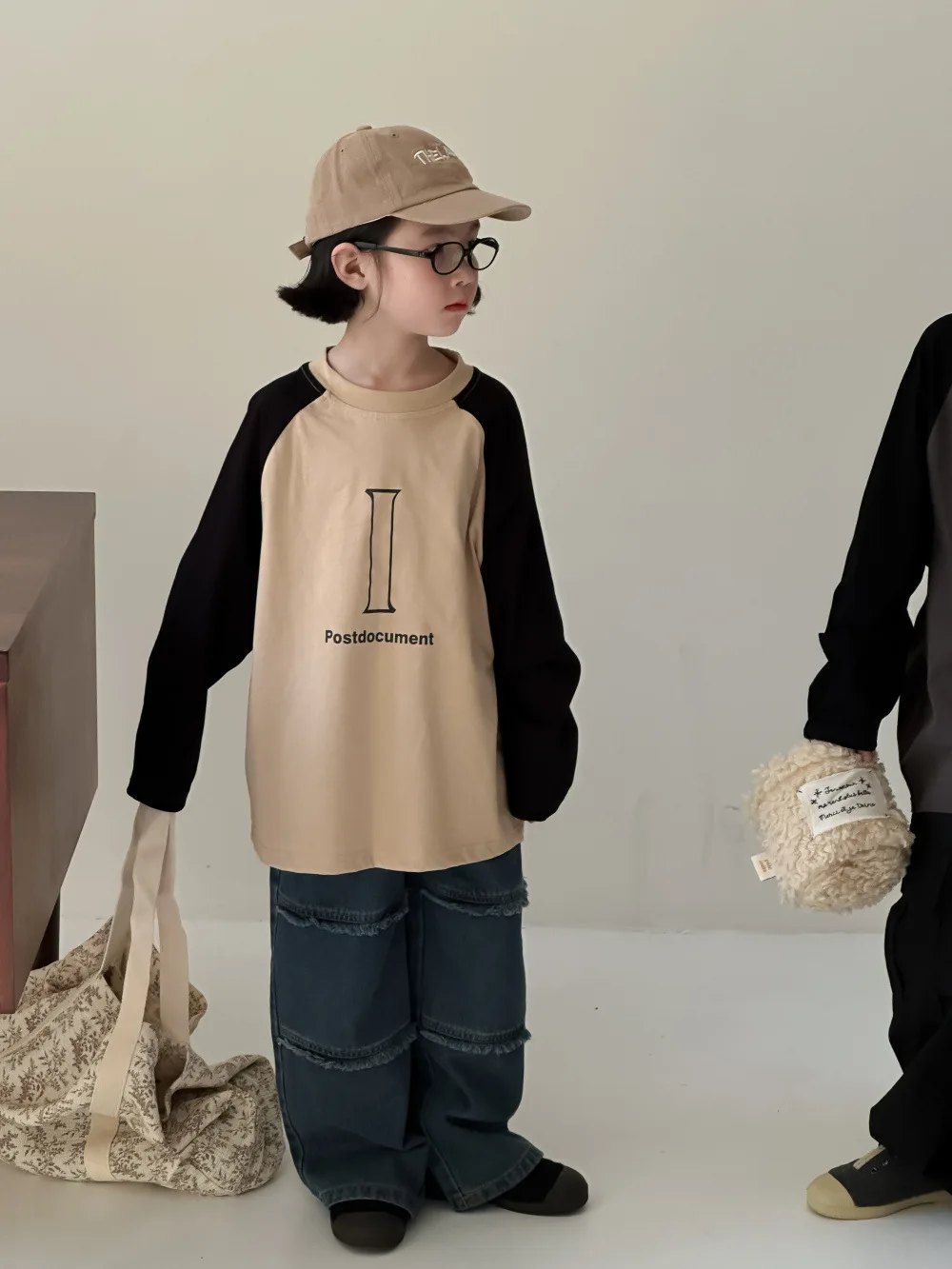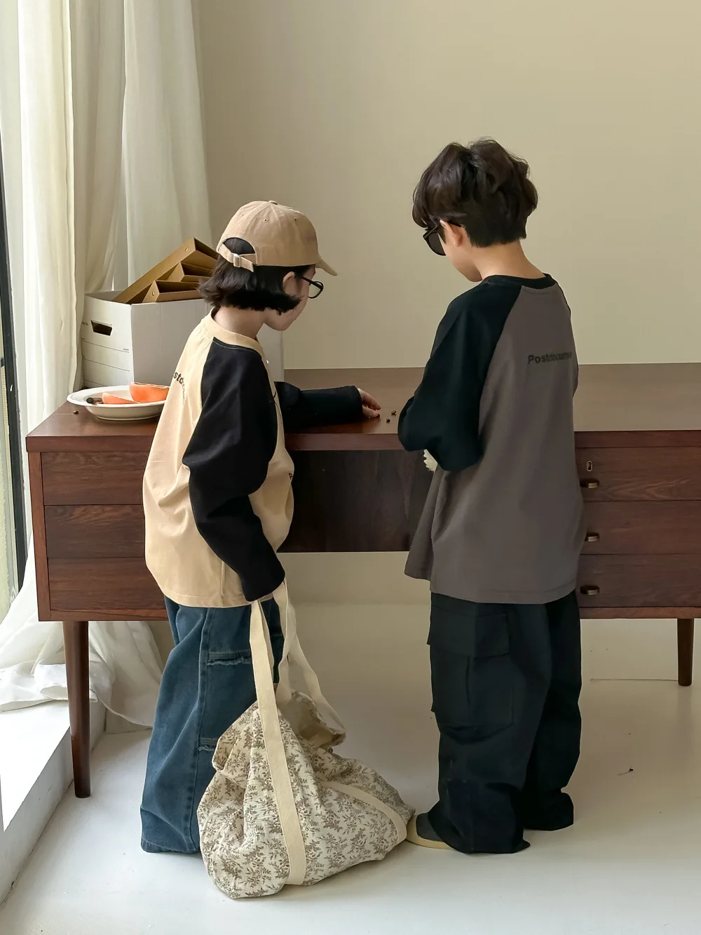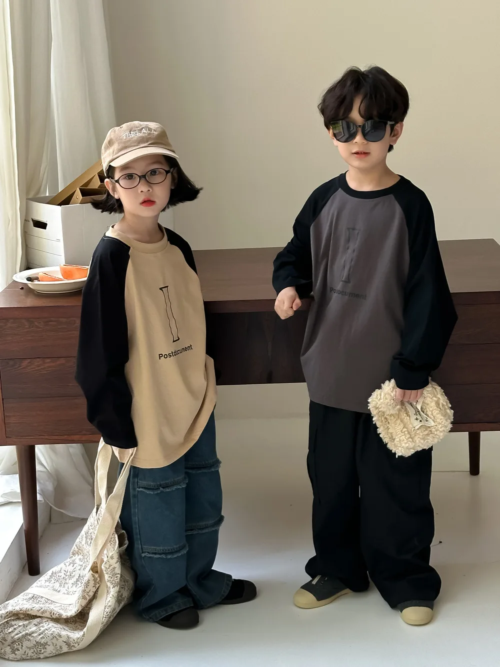 #Tops para niños #Mangas raglán #Patchwork #Estilo casual #Moda de otoño #Ropa coreana para niños