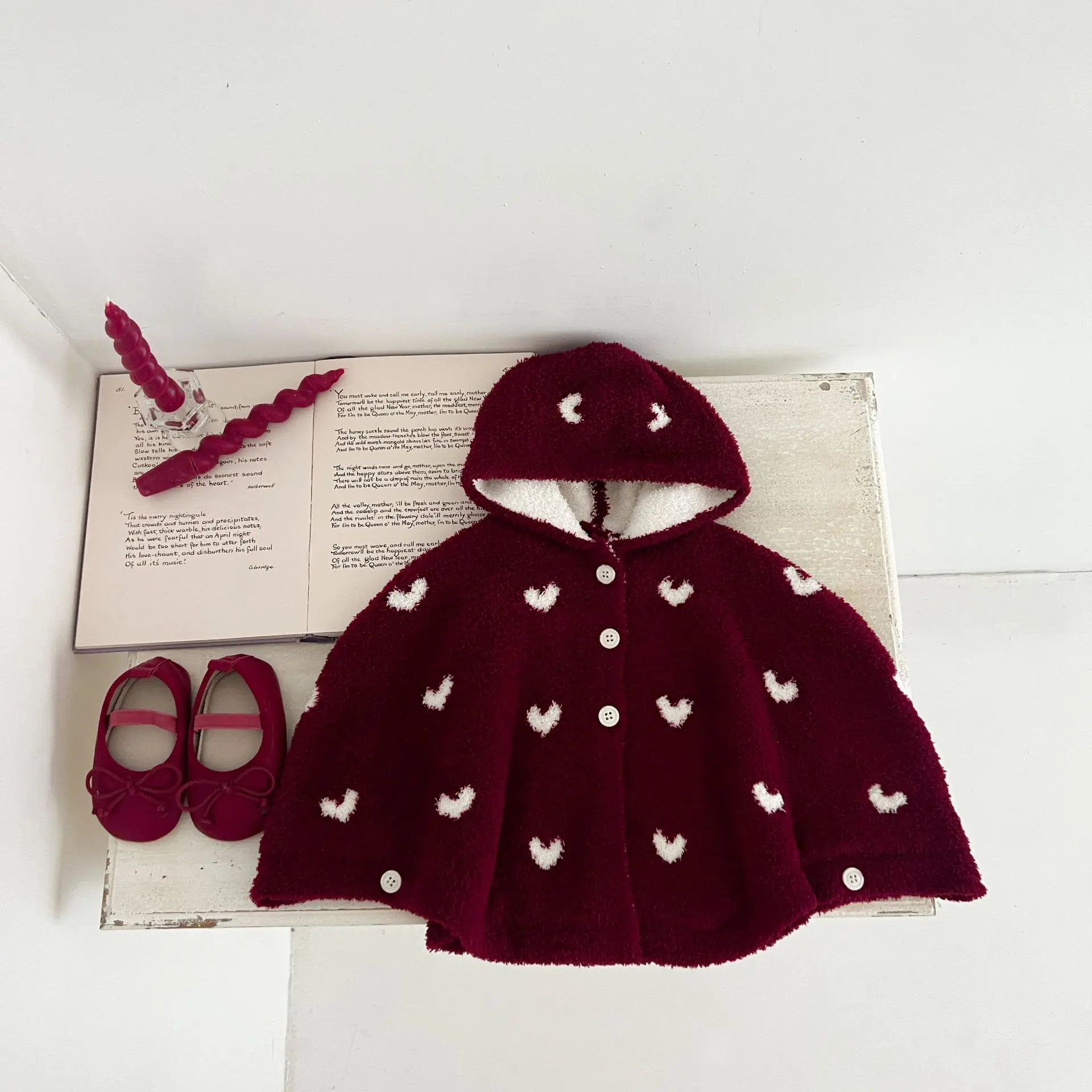 #Ropa de abrigo para bebé #Capa con estampado de corazones #Poncho con capucha #Capa de punto #Ropa de bebé #De moda #Artículos de abrigo
