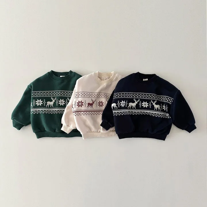 Sudadera infantil de manga larga con forro polar y estampado de reno, ciervo y alce en 3 colores