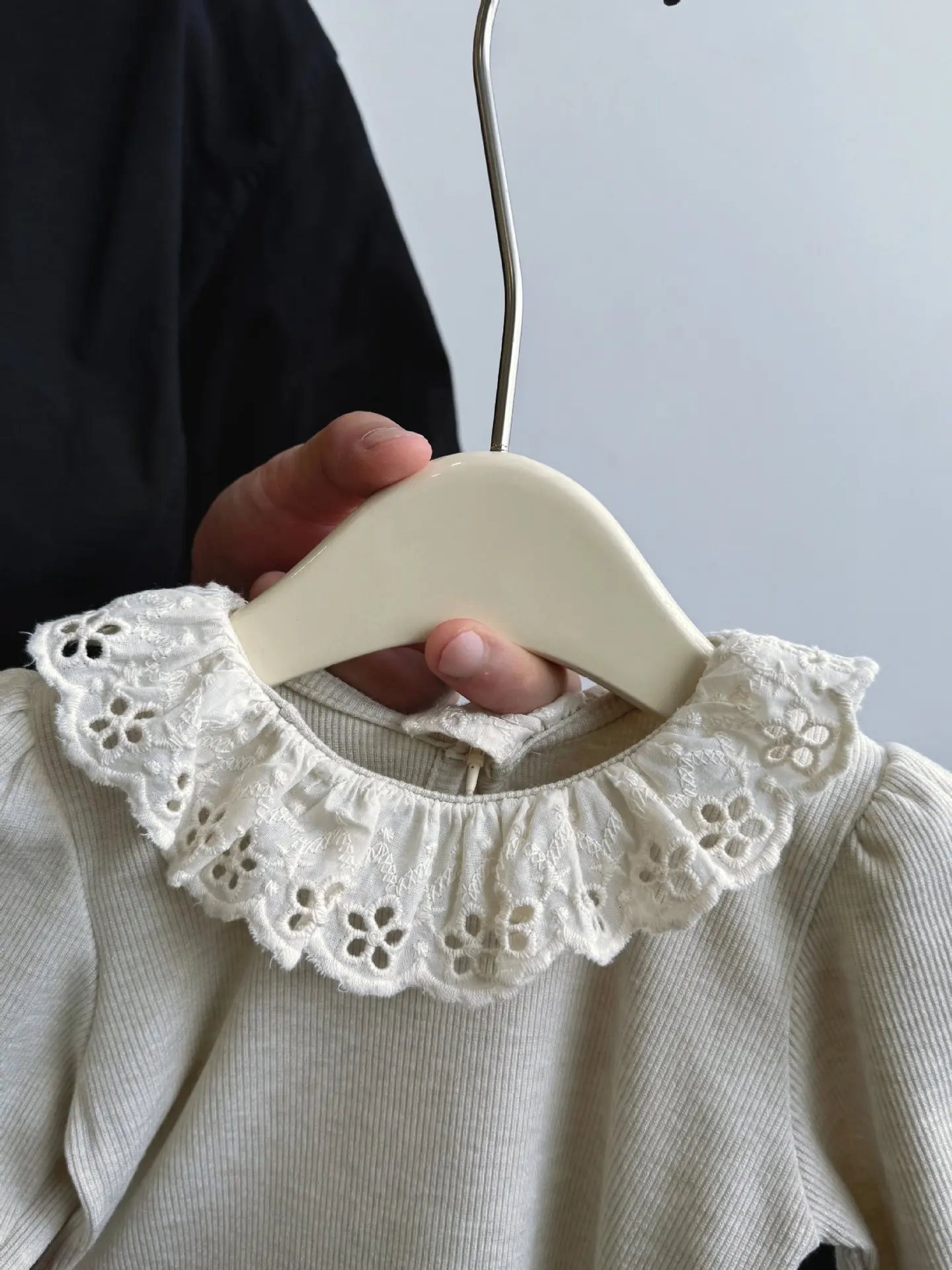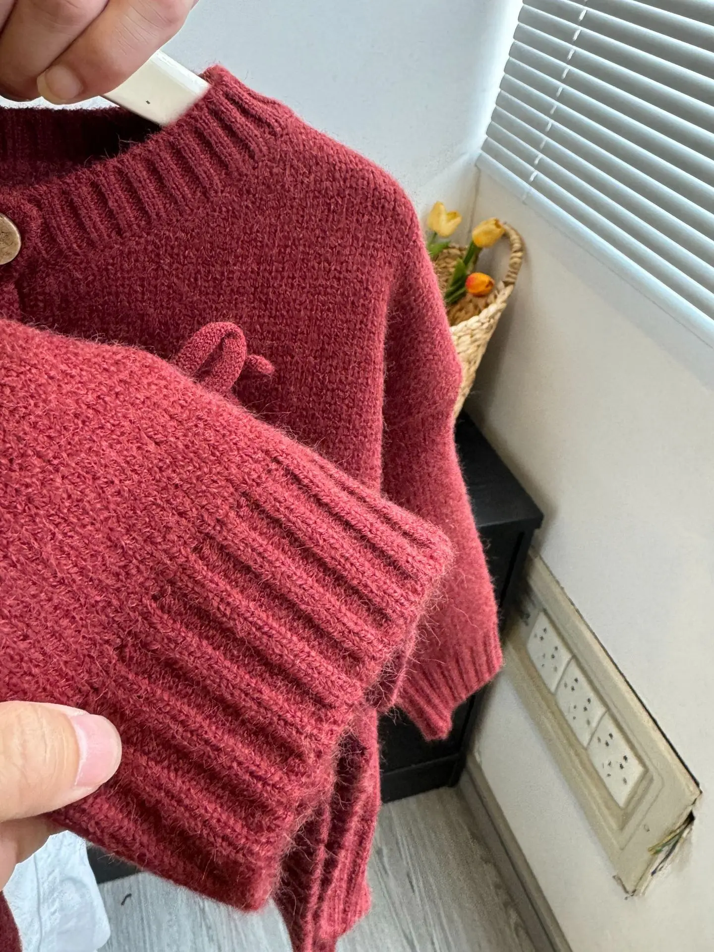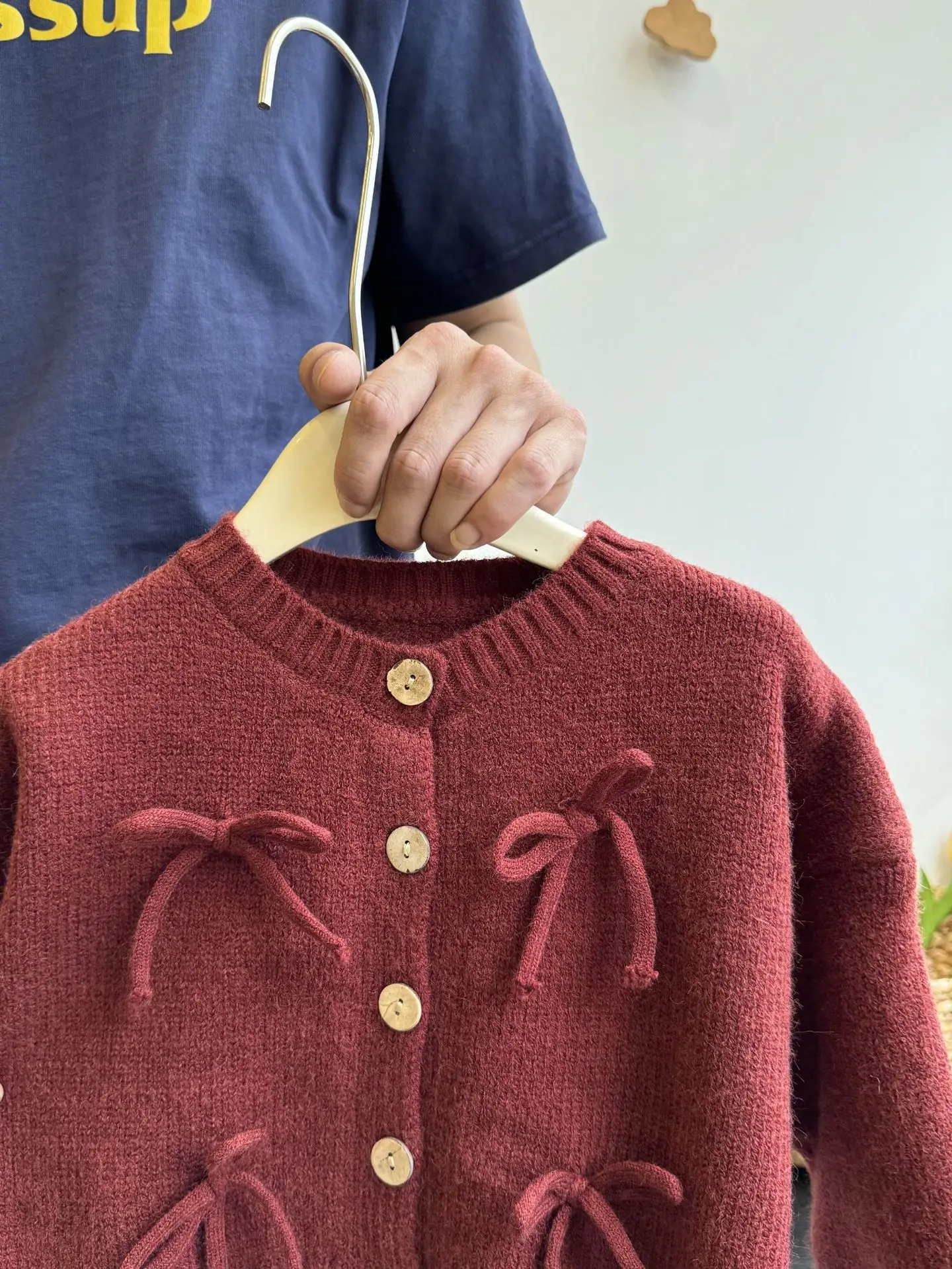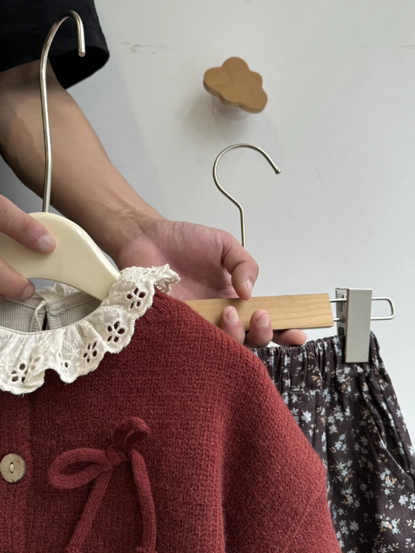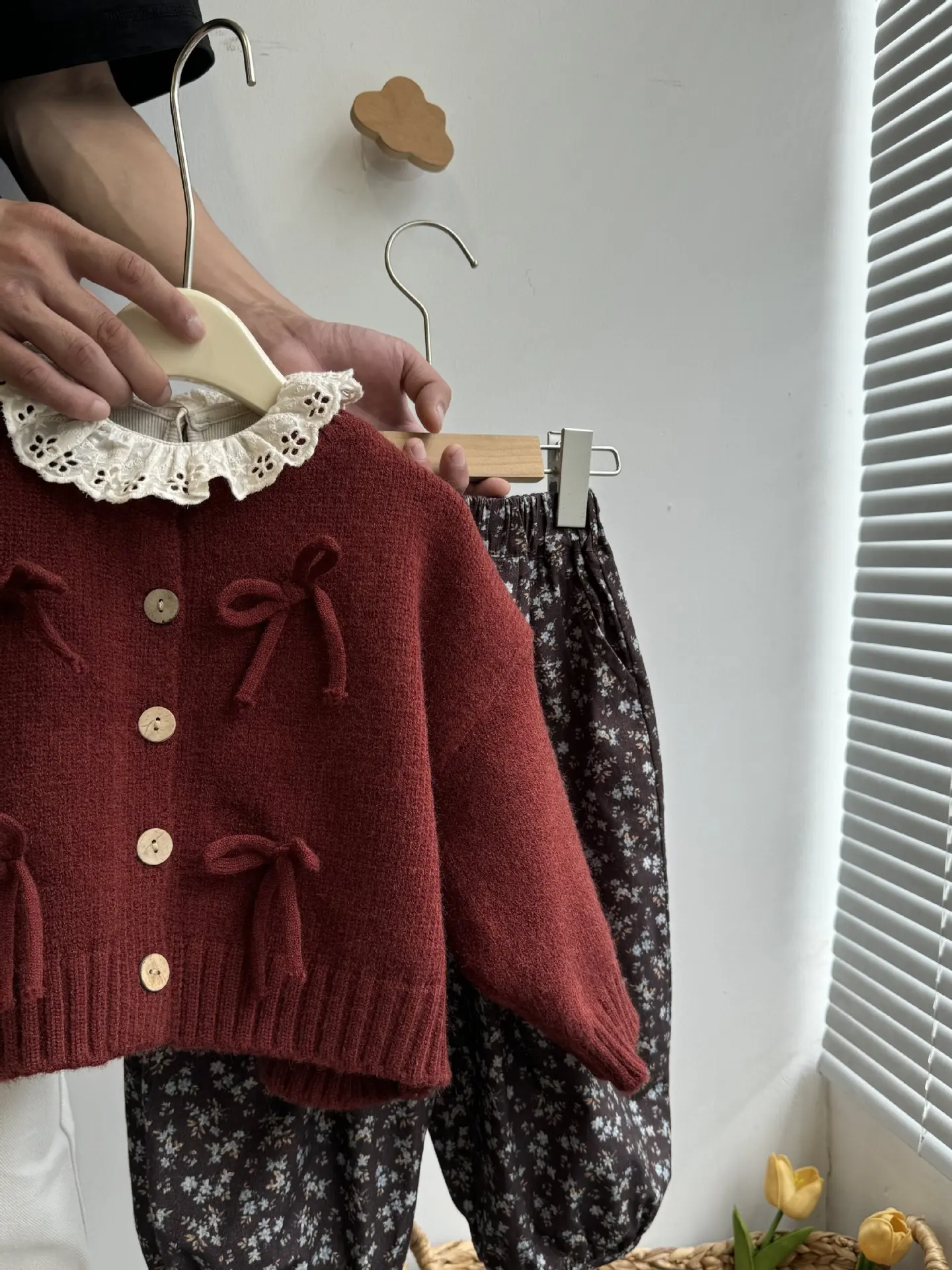 Este conjunto es perfecto para la moda de otoño, con una chaqueta de punto de manga larga con lazo, una camiseta de manga larga abullonada con cuello con volantes y un pantalón largo con estampado de flores. La chaqueta de punto está hecha de un material suave que envuelve a tu bebé cómodamente y le proporciona calor. El diseño del lazo realza su ternura y crea un look especial. La camiseta tiene un cuello con volantes que es elegante y a la vez permite libertad de movimiento. Los pantalones largos con estampado de flores son coloridos y fáciles de combinar con diversos conjuntos, lo que los hace perfectos para el día a día o para salir. Con este conjunto, podrás disfrutar de un estilo adorable.