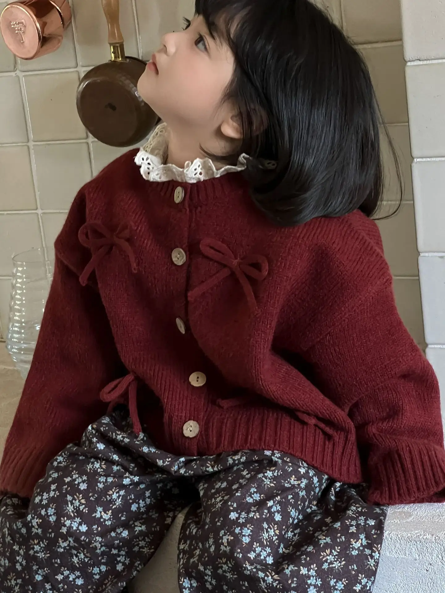 #Cárdigan para bebé #Diseño de cinta #Cuello con volantes #Estampado de flores #Moda de otoño #Bebé con estilo
