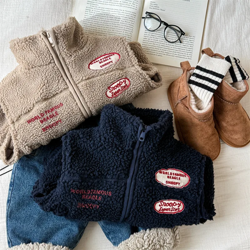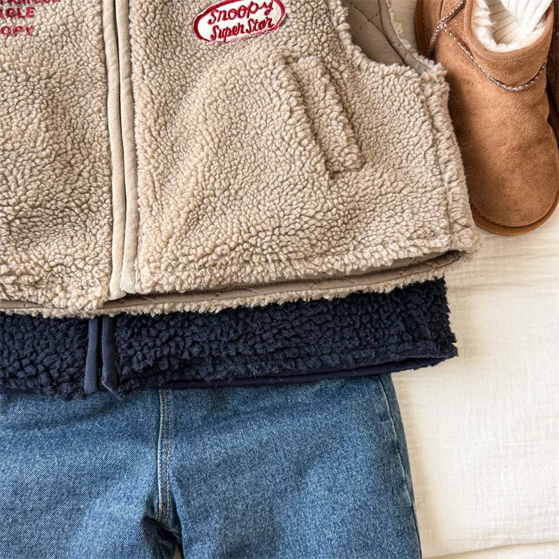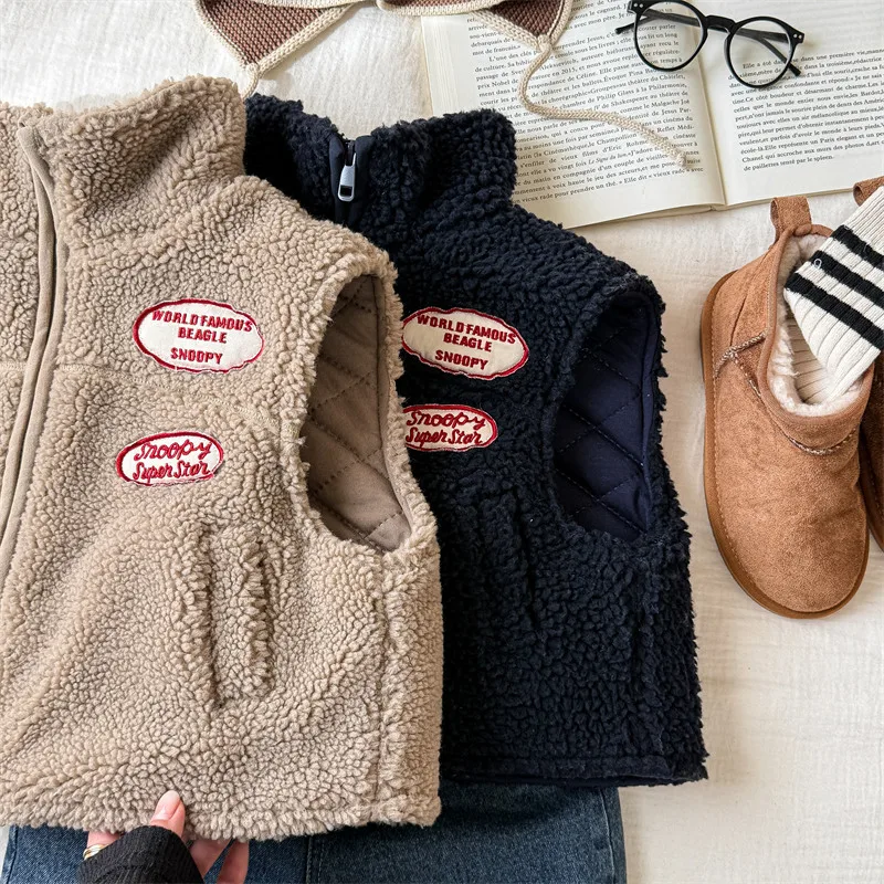 #chaleco para niños #forro polar boa #parche bordado #cremallera #atuendo de otoño/invierno #niños a la moda