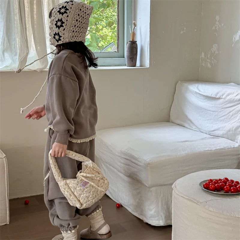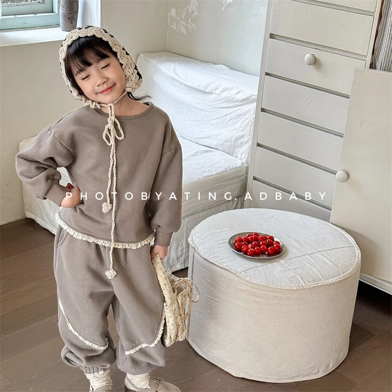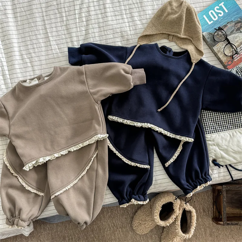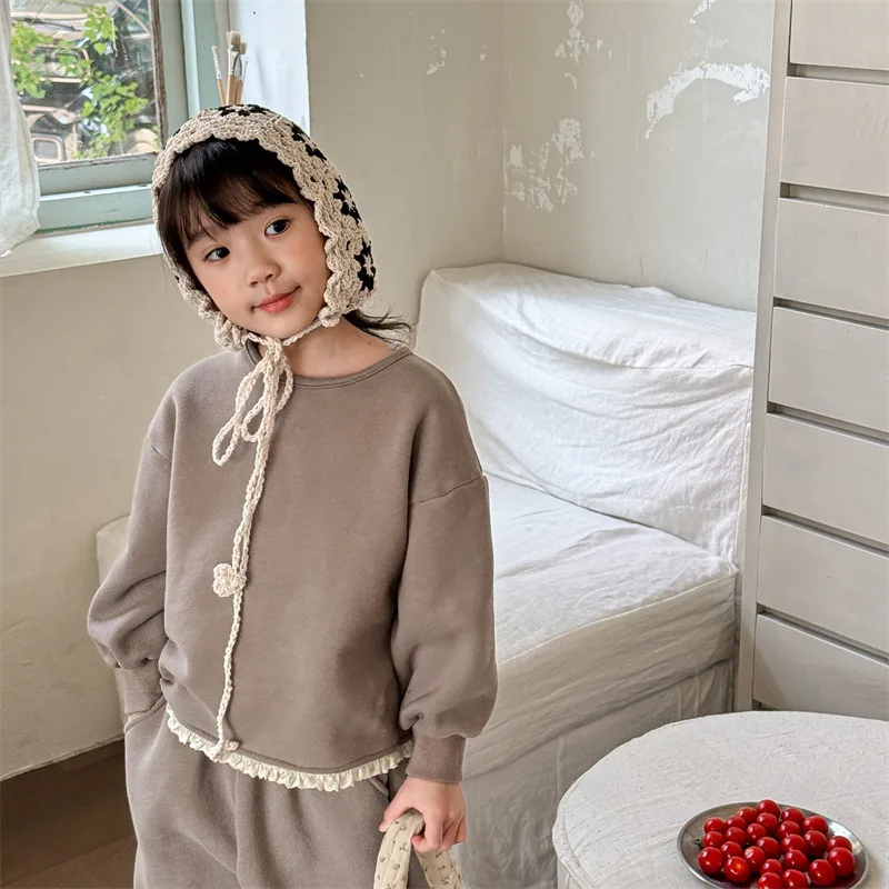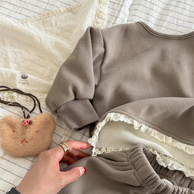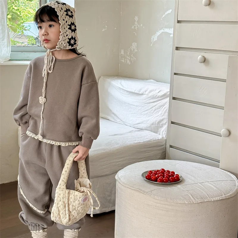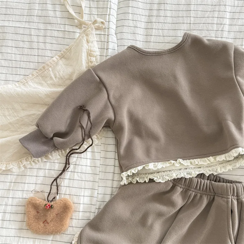 #moda infantil #ropa de bebé #sudadera con volantes #forro polar #pantalones deportivos #ropa infantil coreana #conjunto de invierno