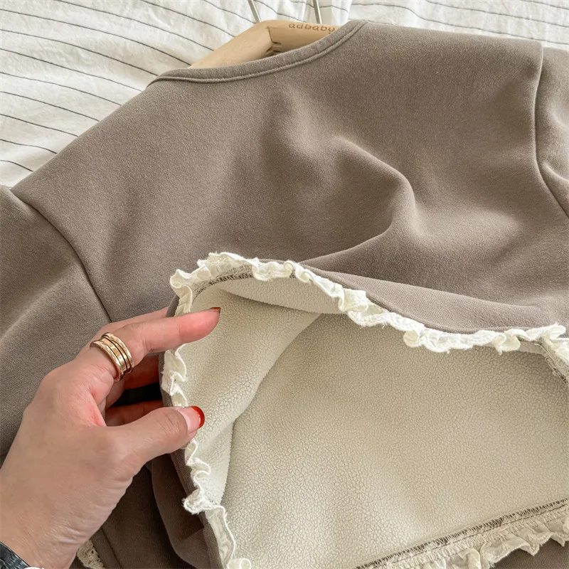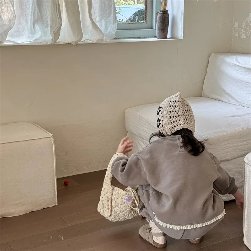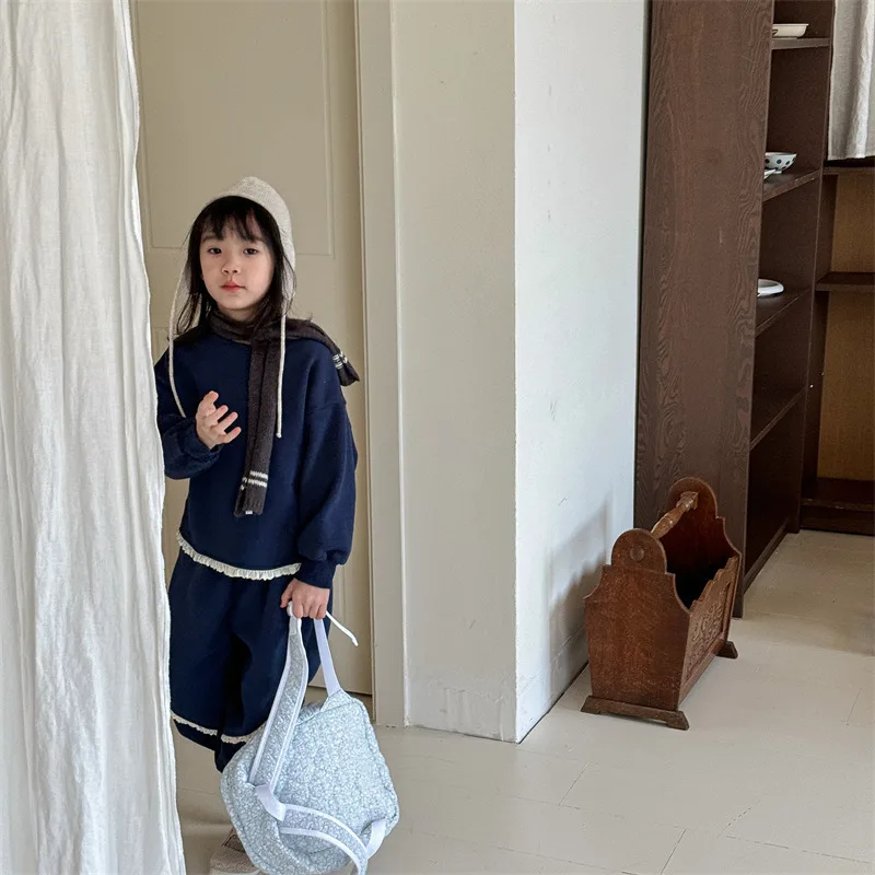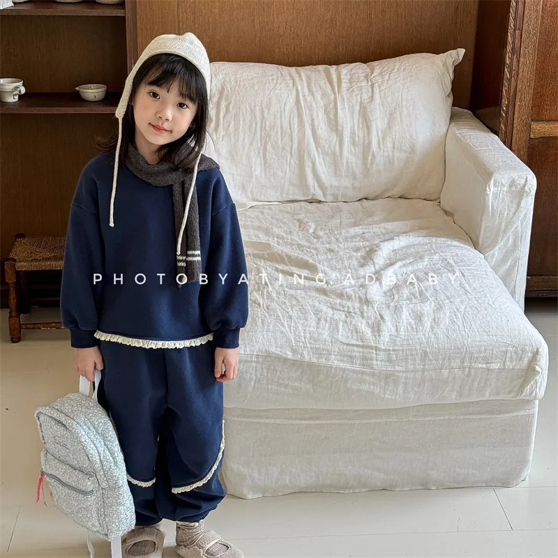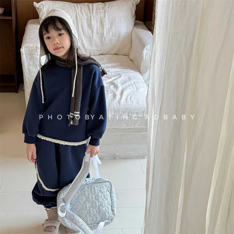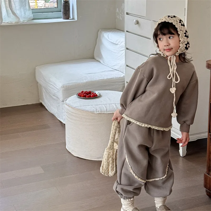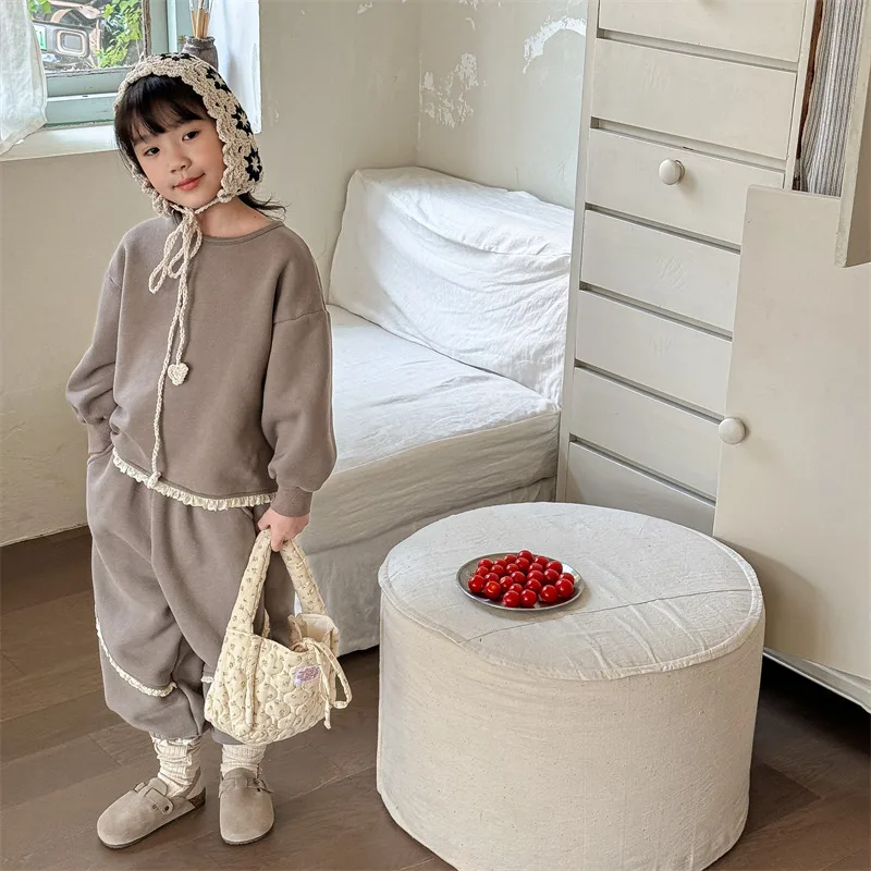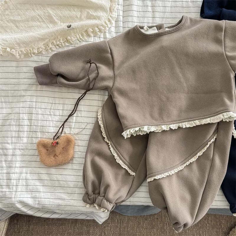 #moda infantil #ropa de bebé #sudadera con volantes #forro polar #pantalones deportivos #ropa infantil coreana #conjunto de invierno